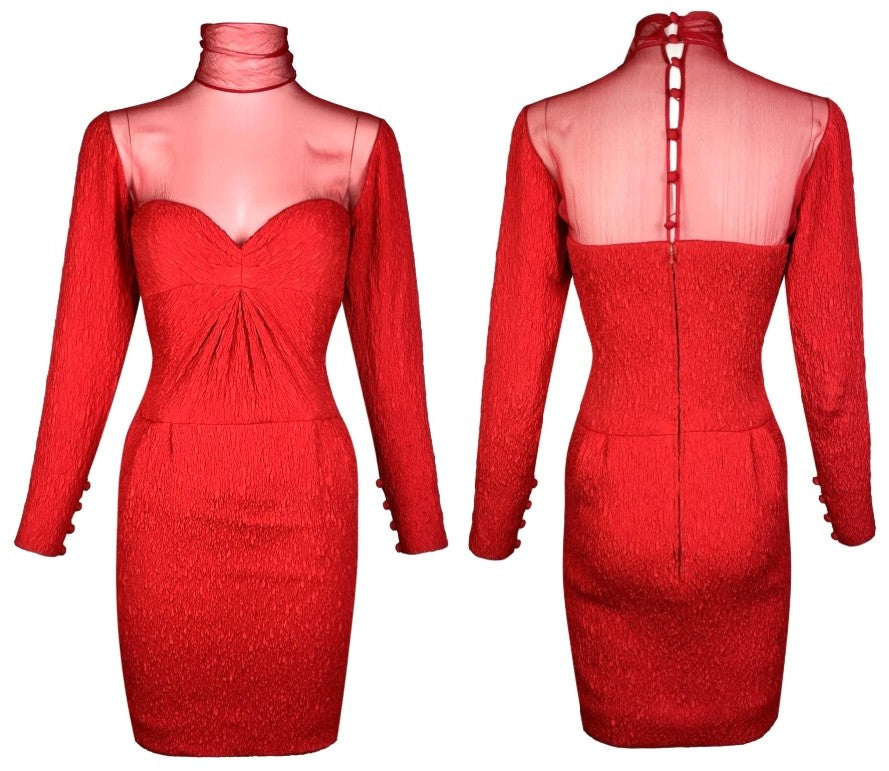 1980's Christian Dior Haute Couture Goth Queen of Hearts Sheer Red Silk Mini Dress