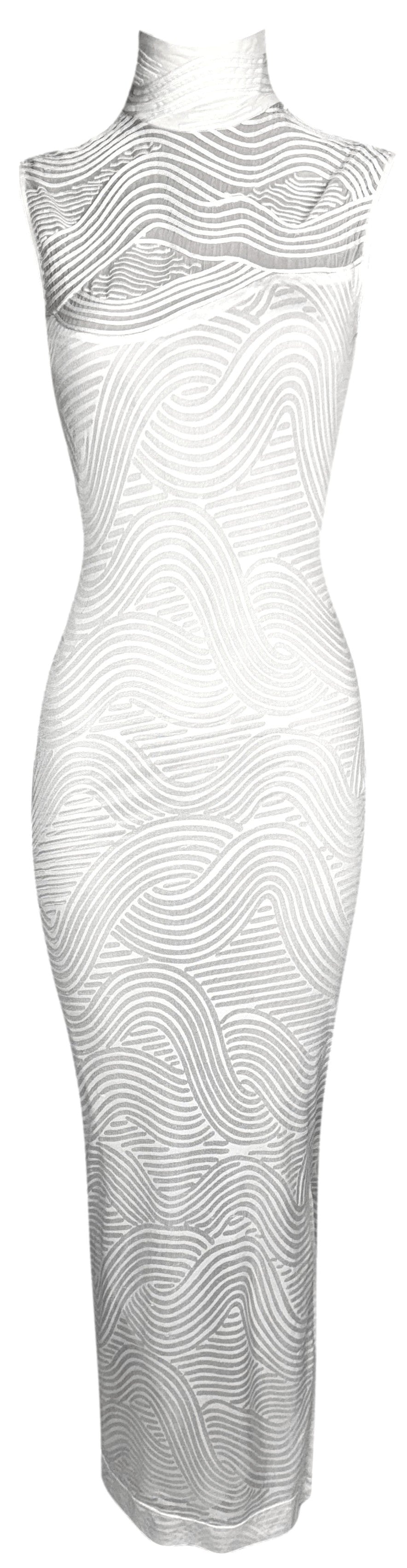 1990's Gianfranco Ferre Sheer Ivory Turtleneck Sleeveless Bodycon Cheongsam Maxi Dress