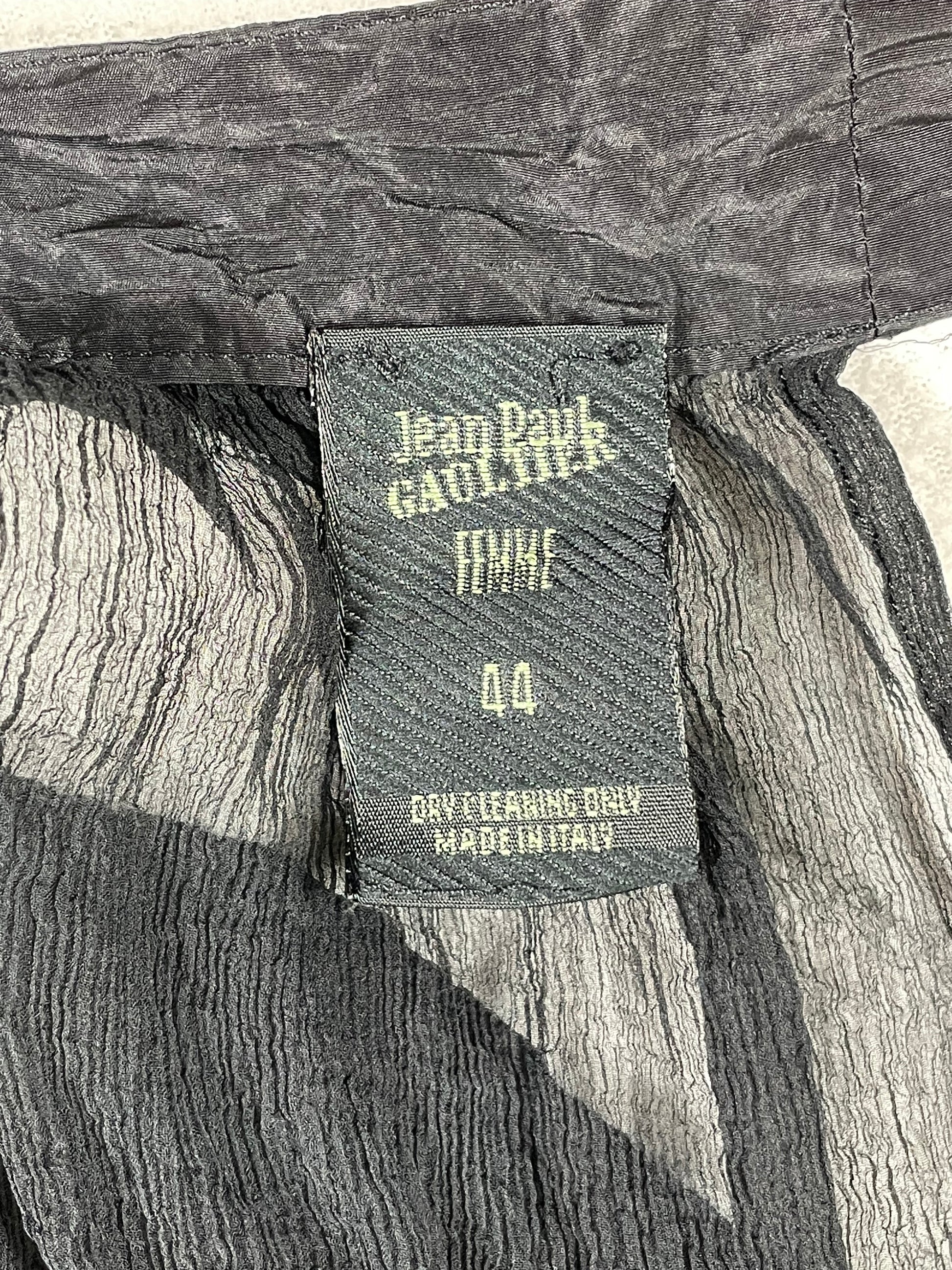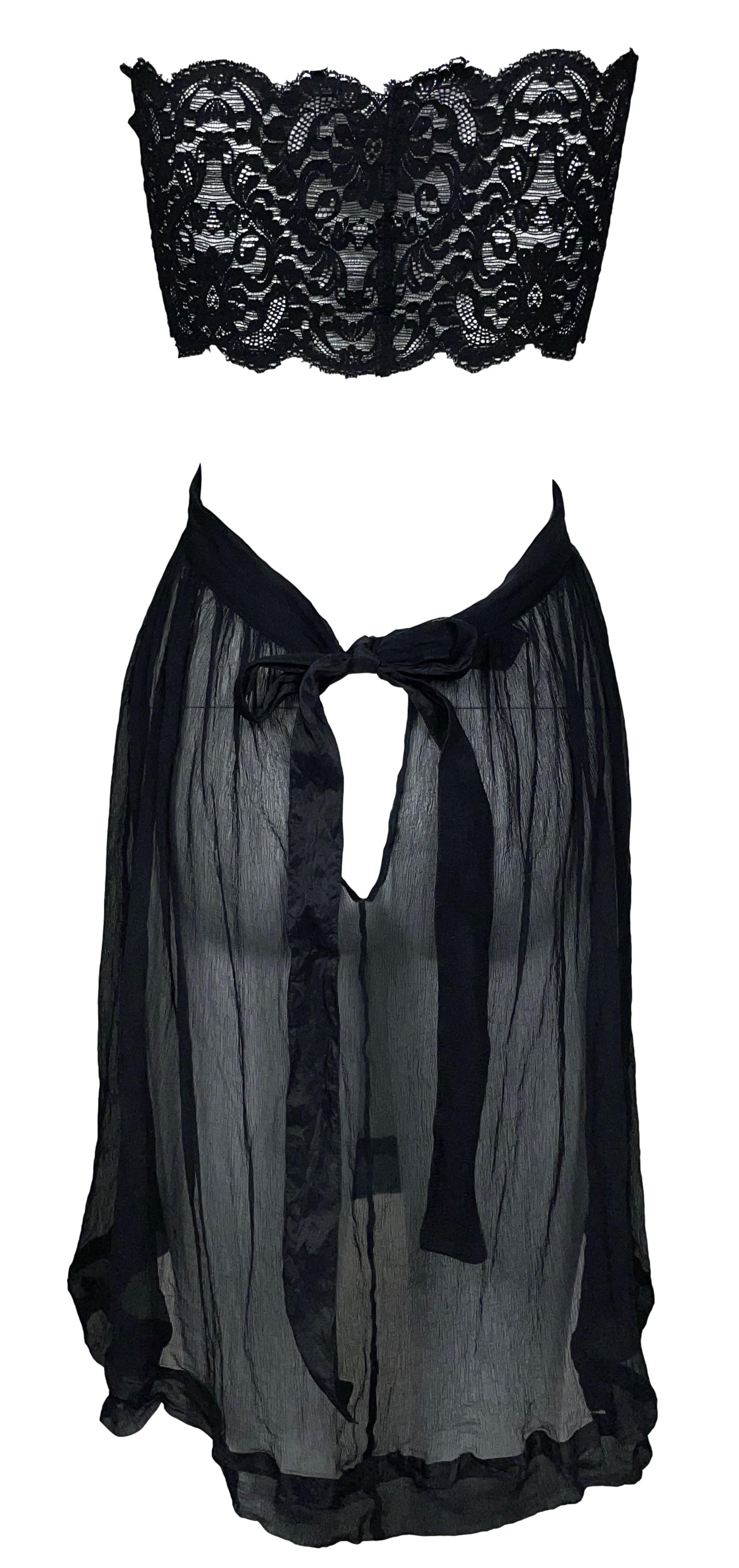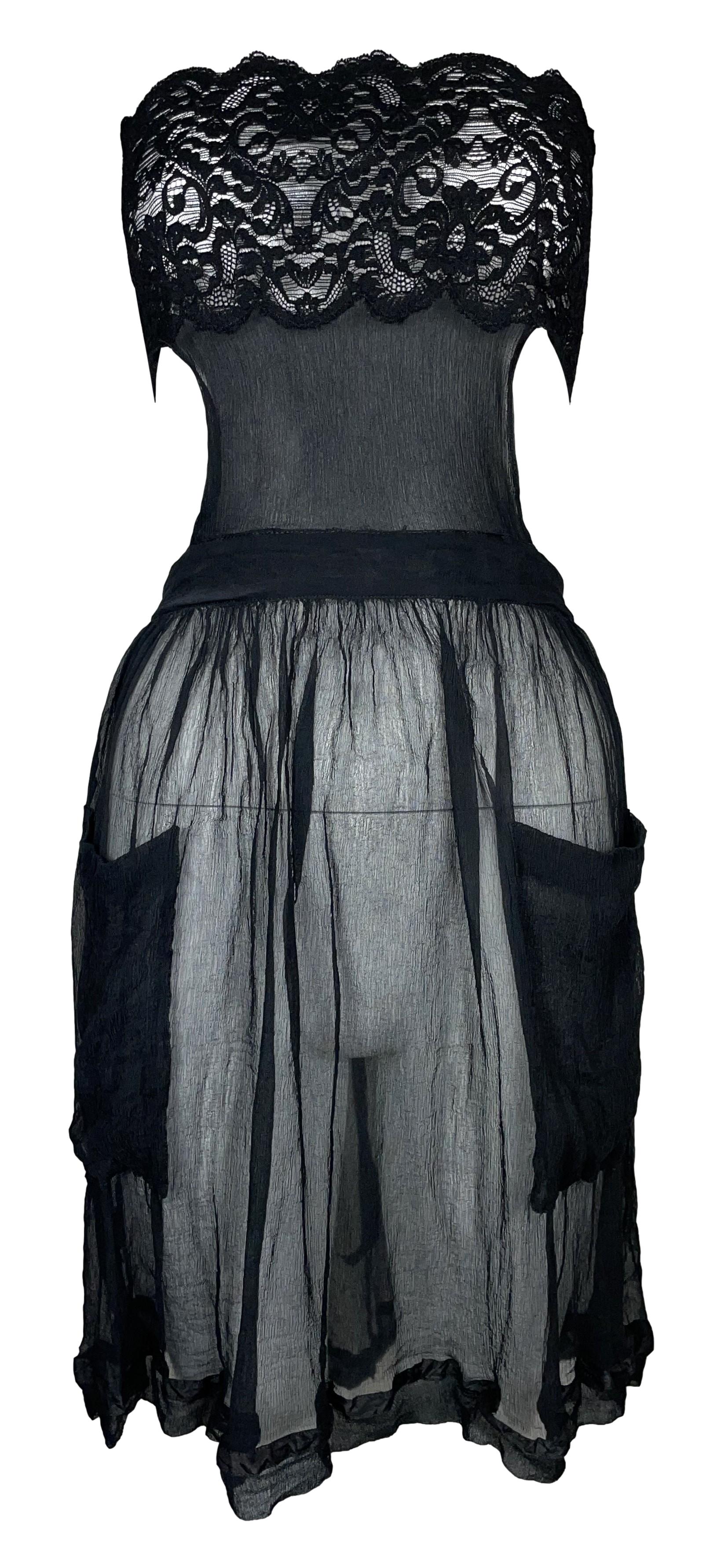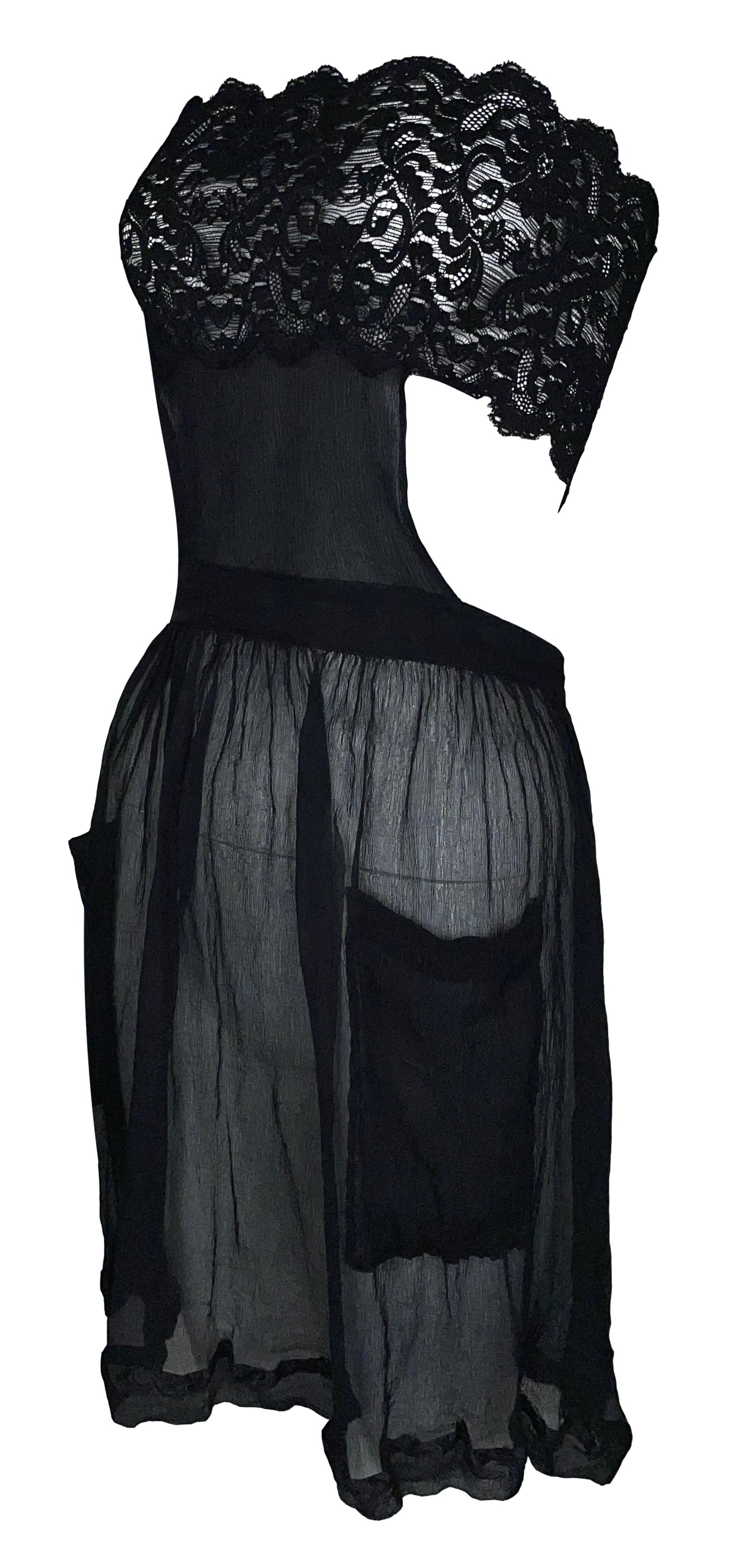 1990's Jean Paul Gaultier Sheer Black Lace & Silk Off Shoulder Apron Mini Dress