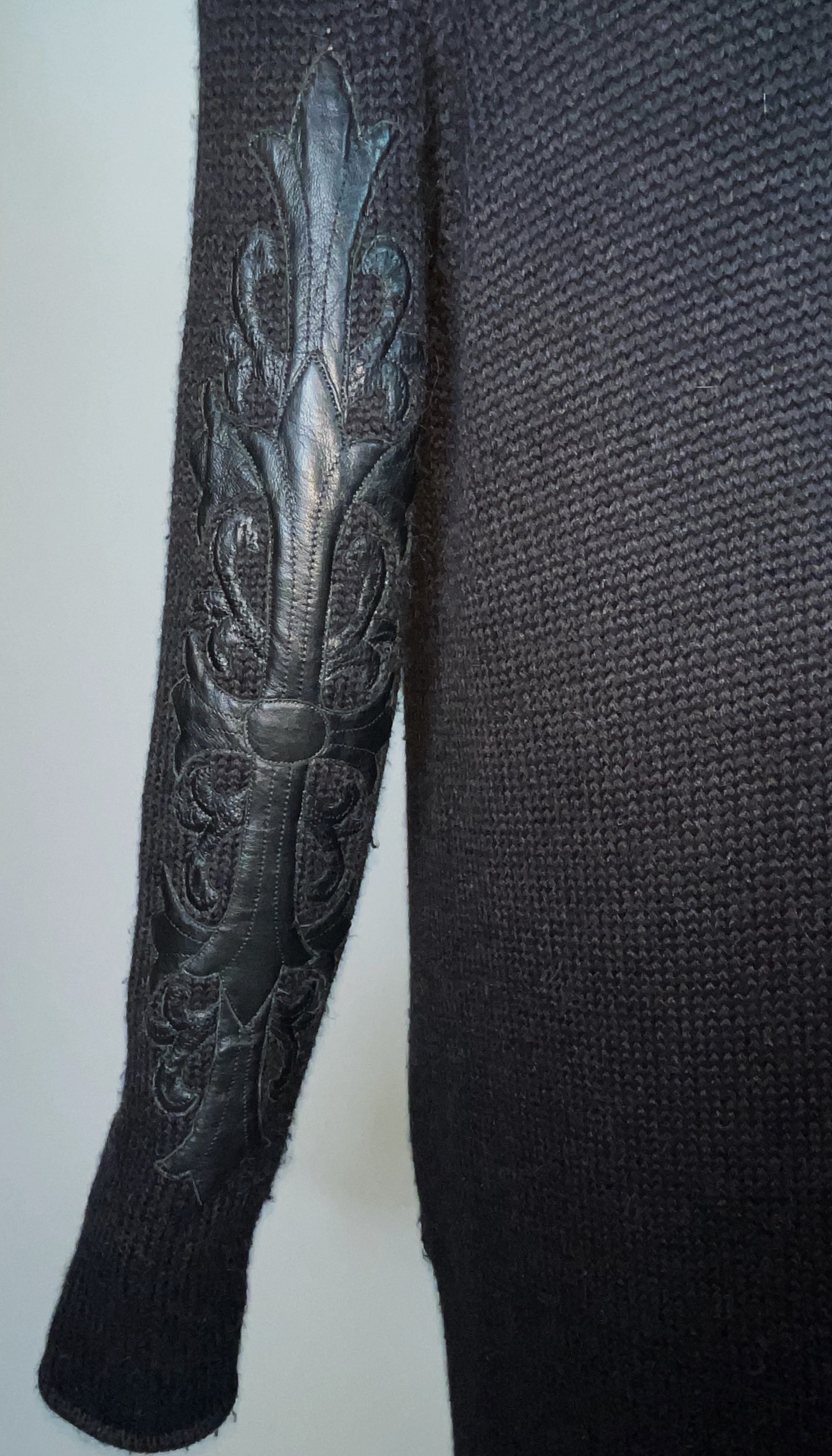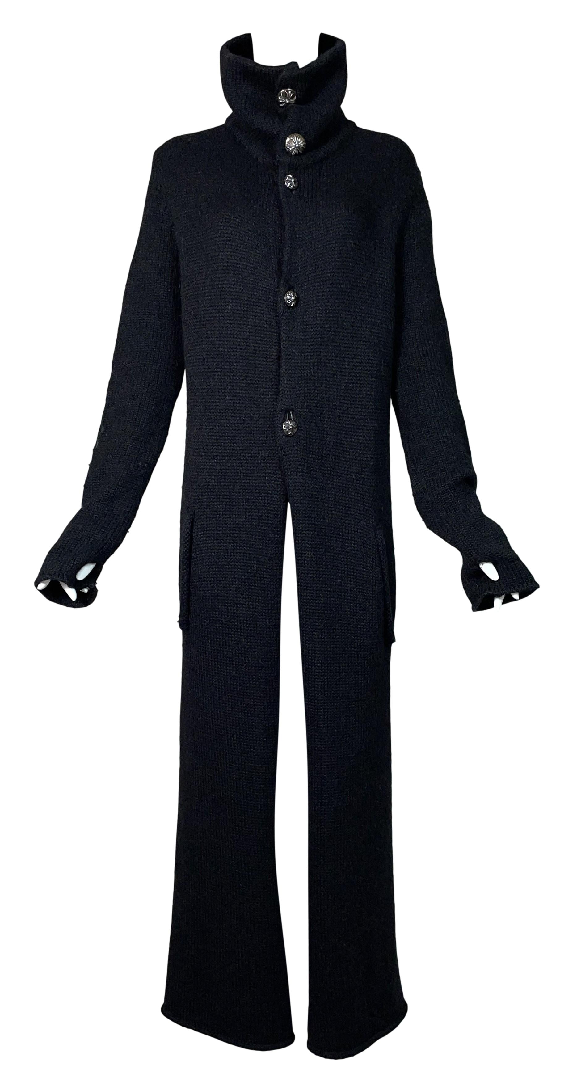 1995 Chrome Hearts Knit Sweater Coat Dress w Leather Cross Patches & Silver Buttons