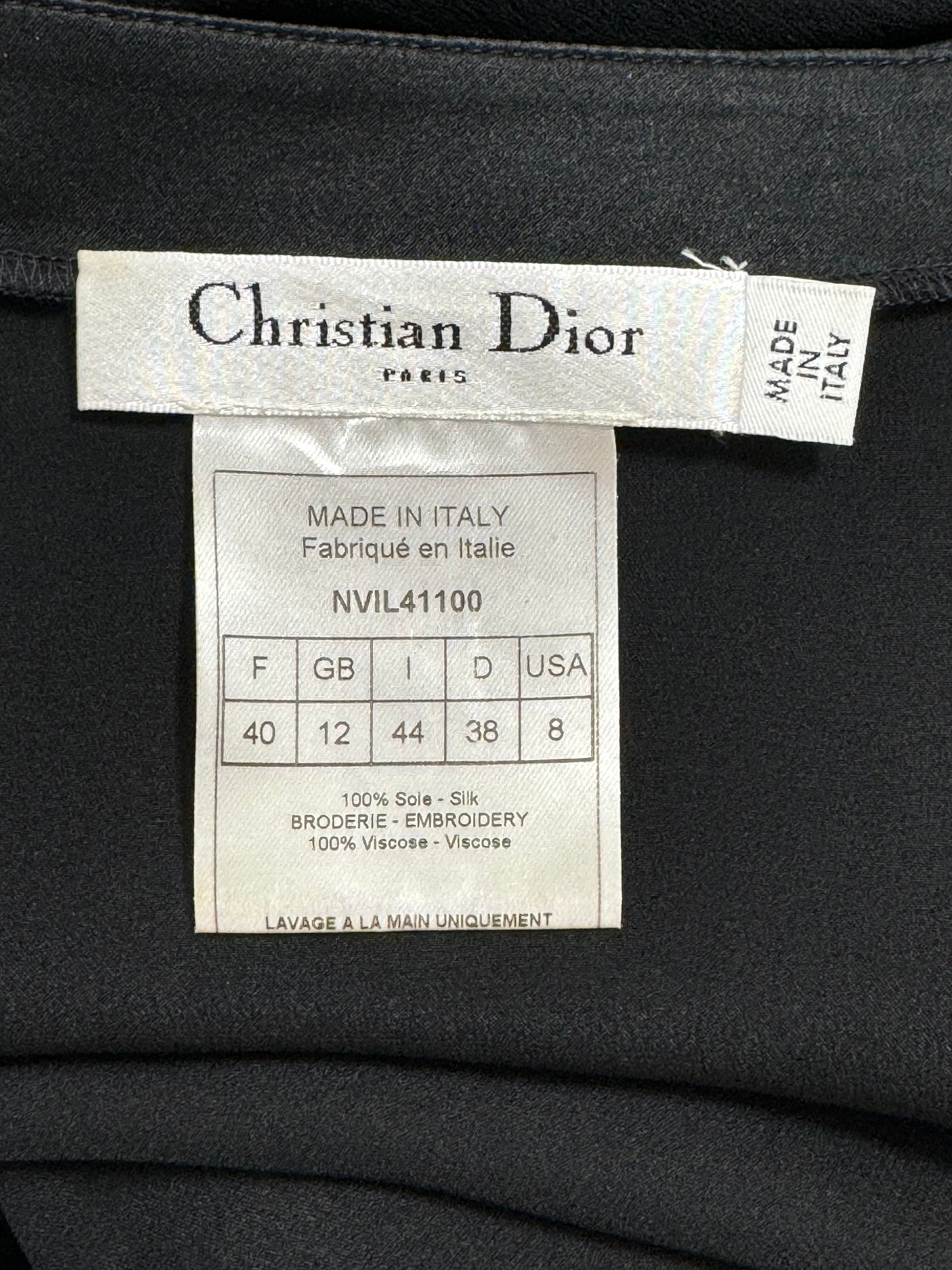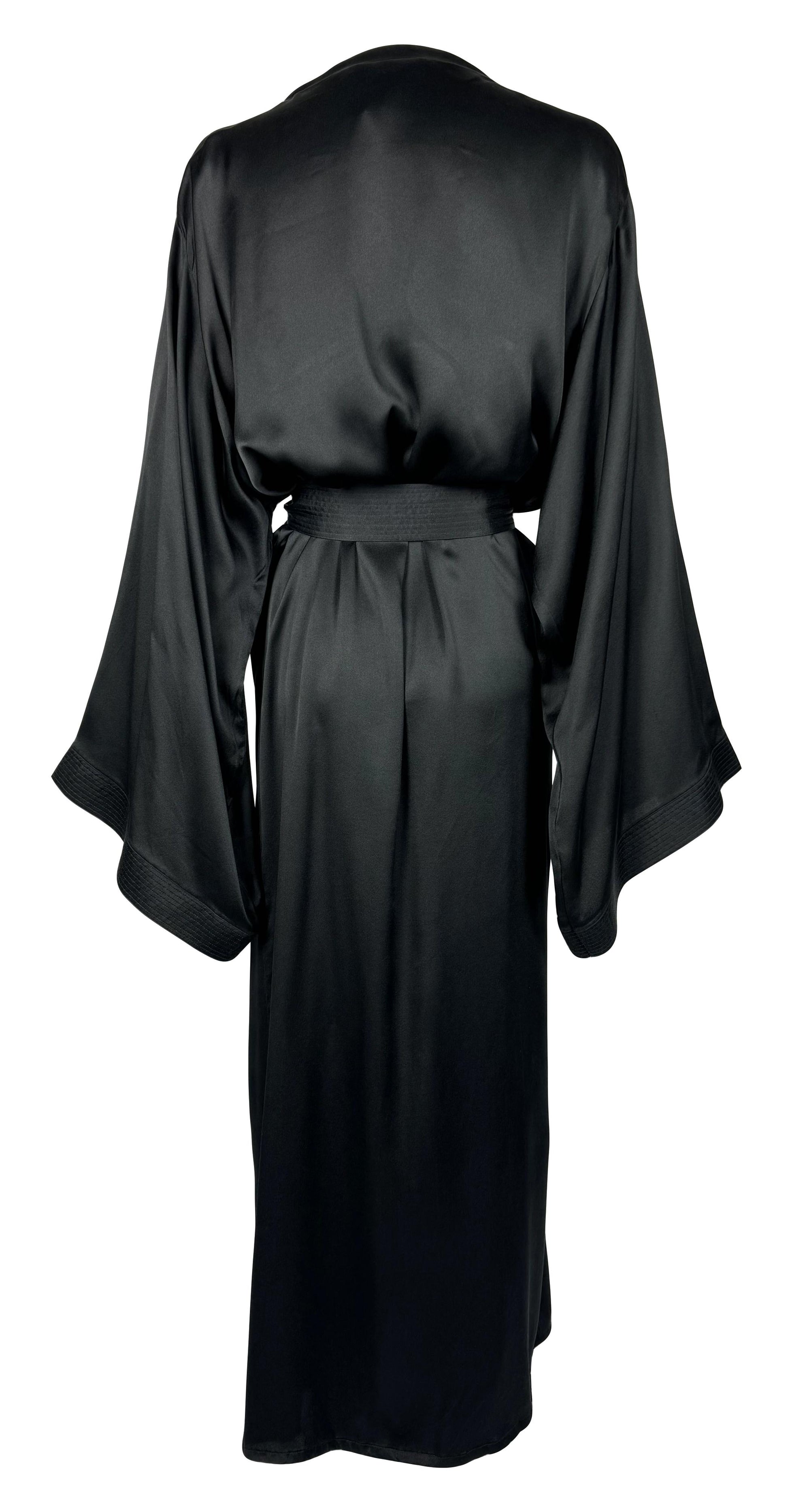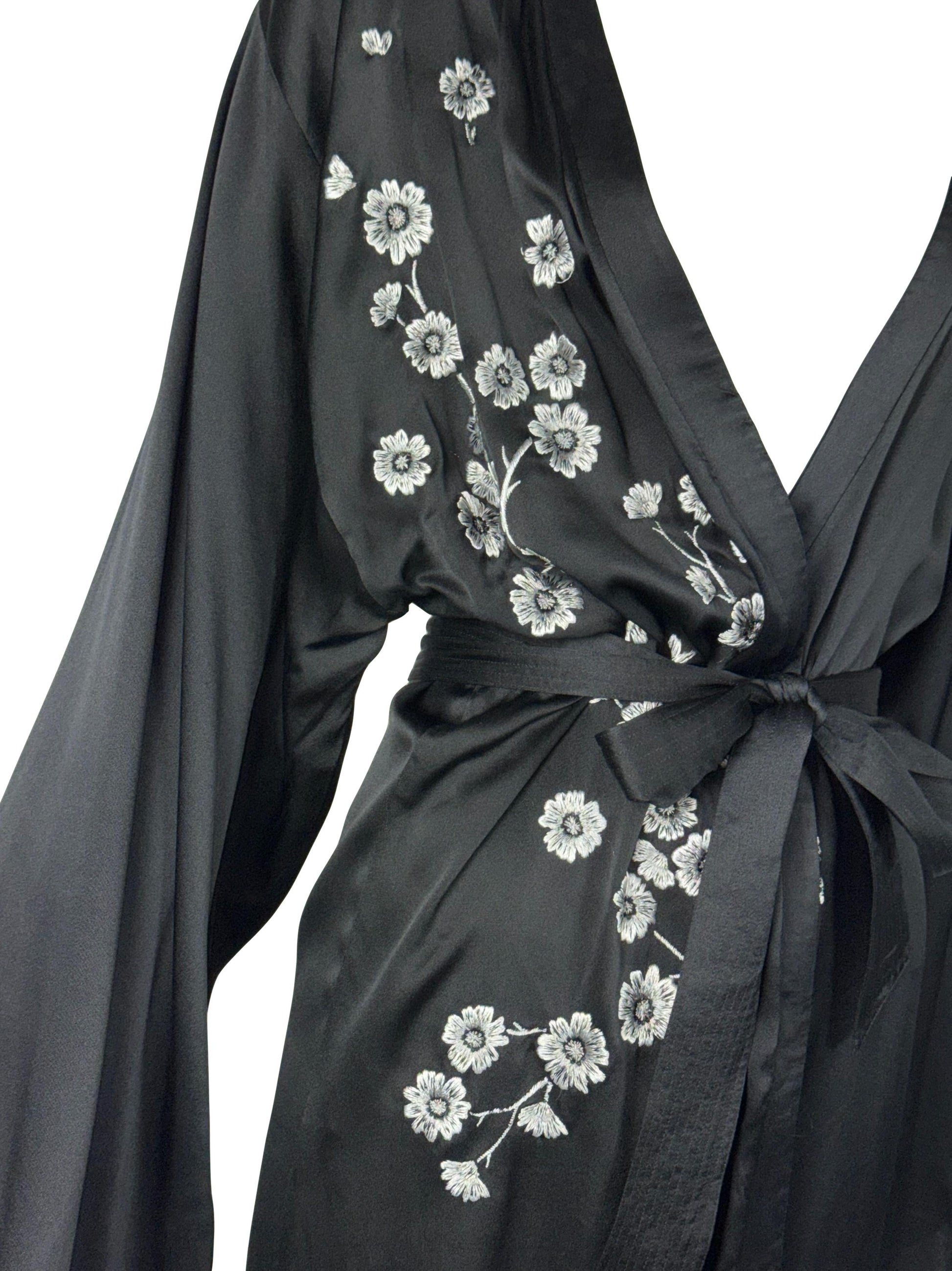 2000's Christian Dior by John Galliano Black Silk White Cherry Blossom Kimono Robe