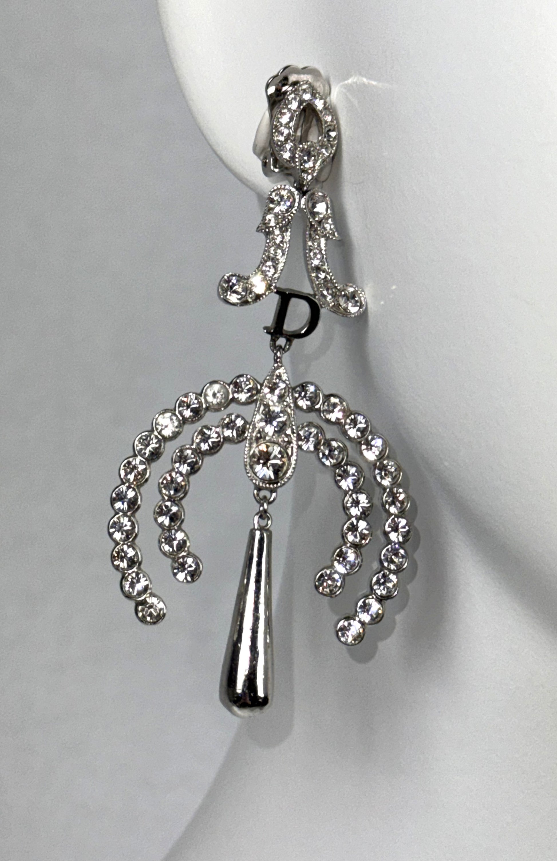 2000's Christian Dior by John Galliano Large Raj Silver Drop Earrings