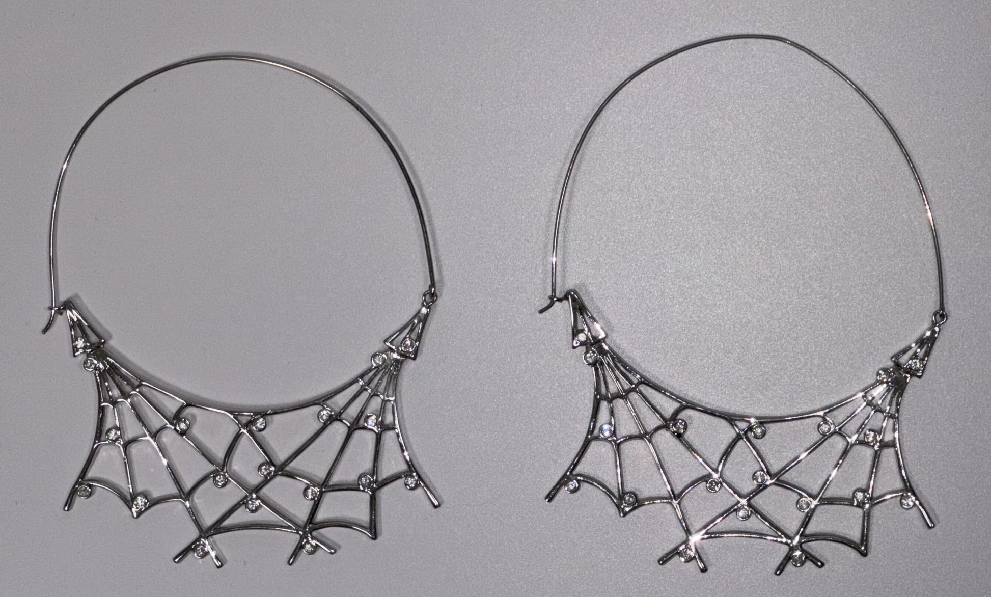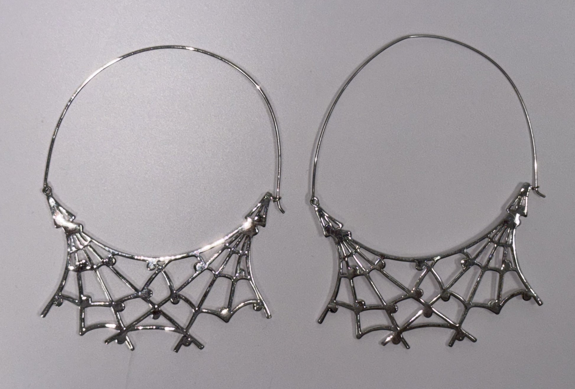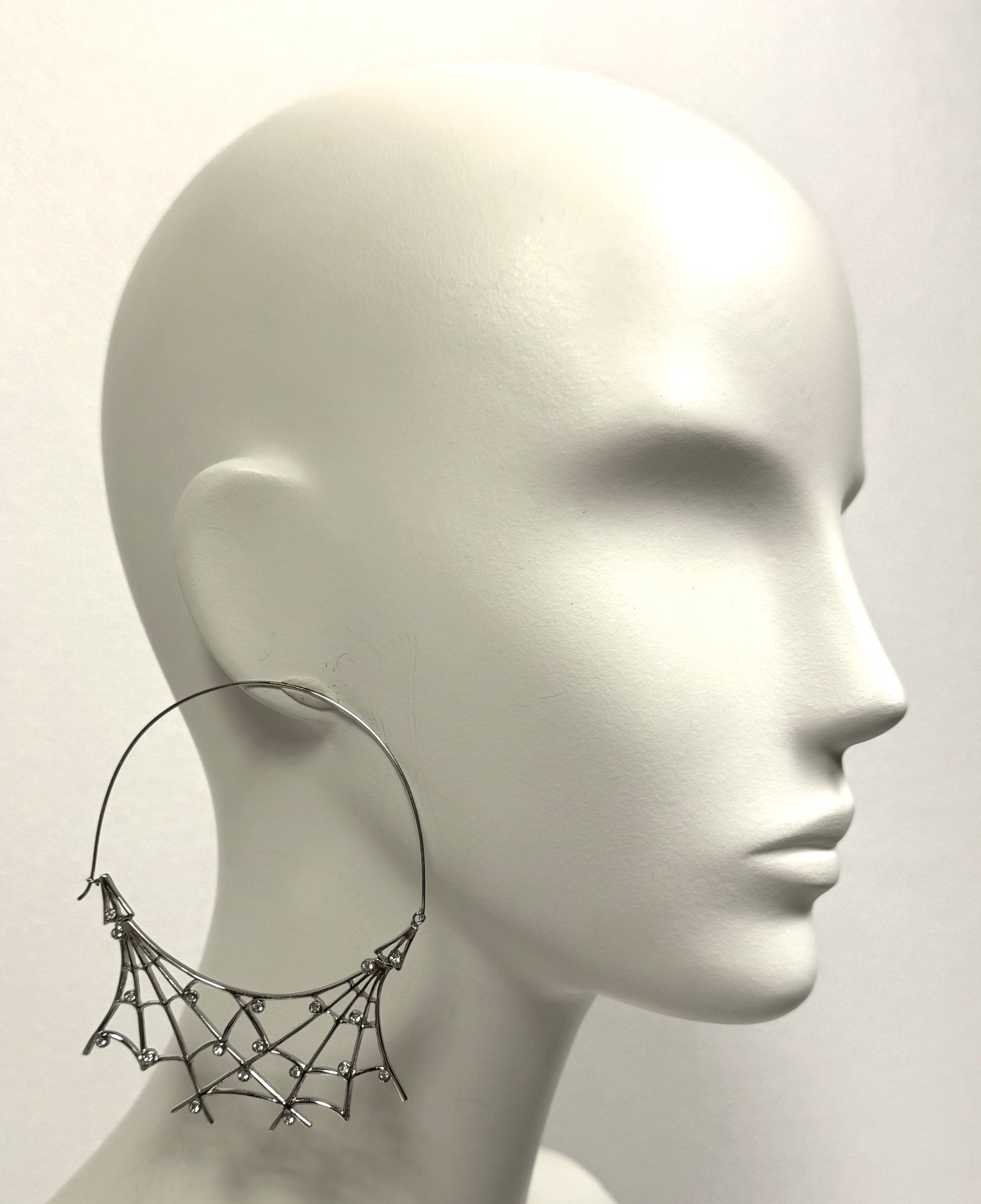 2000's Christian Dior by John Galliano Large Silver Spiderweb Hoop Earrings