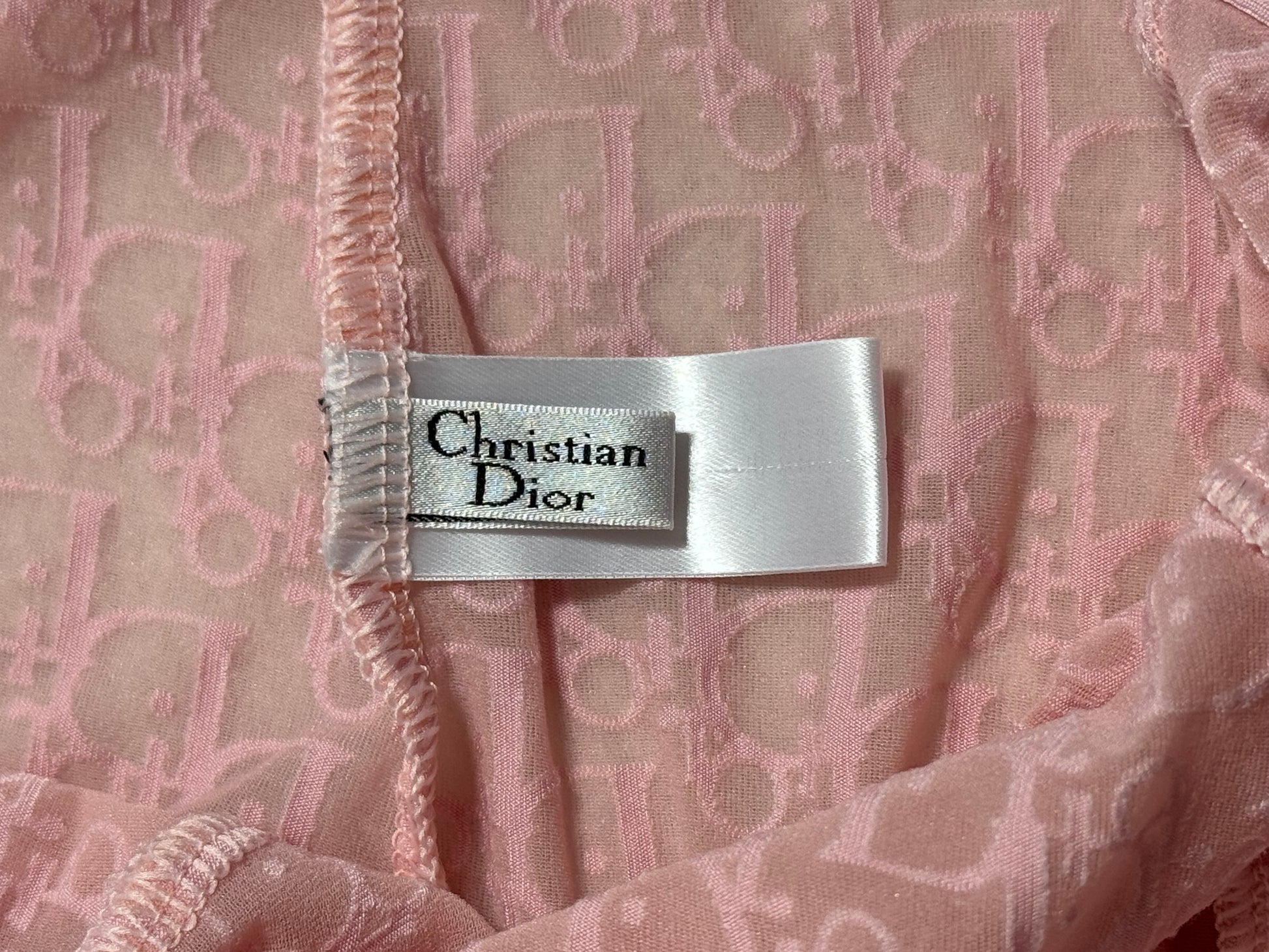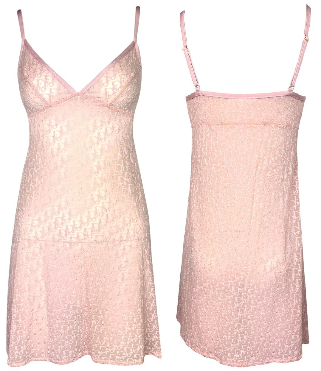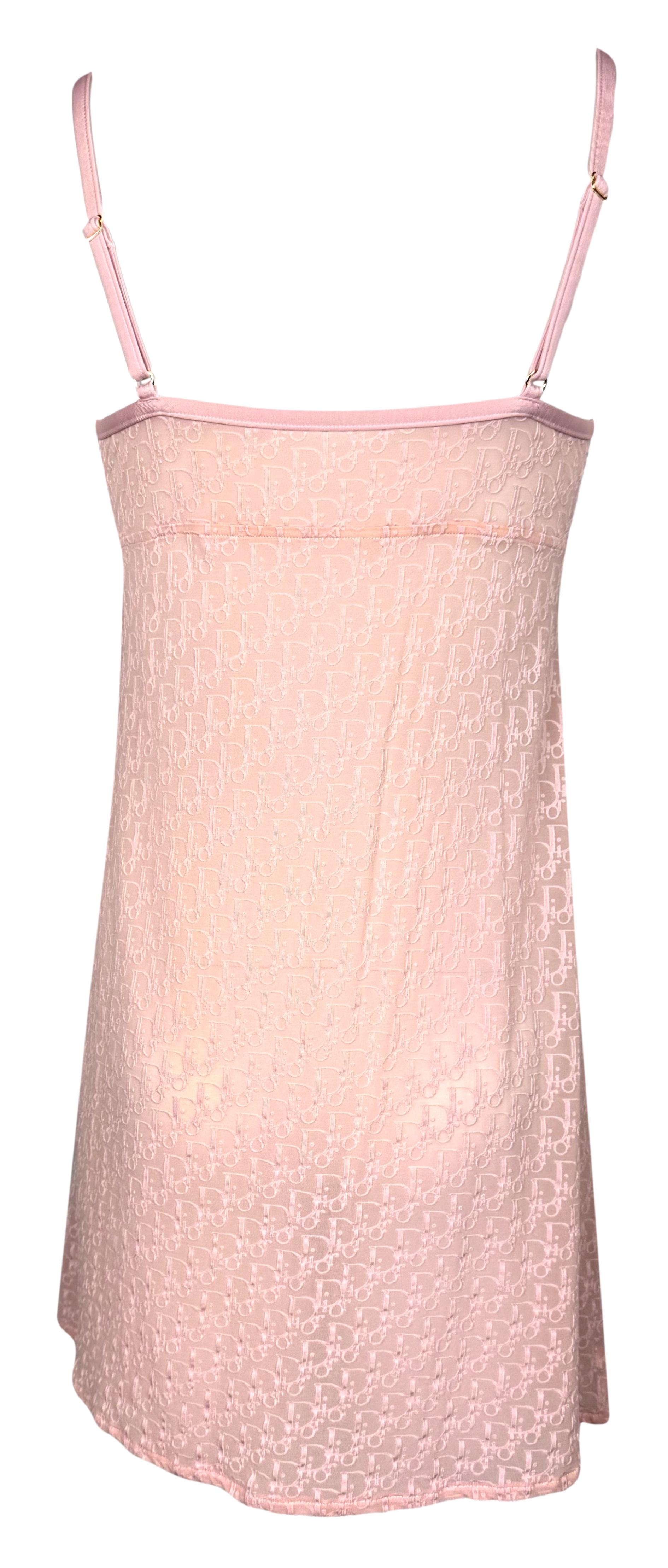 2000's Christian Dior by John Galliano Logo Monogram Sheer Pink Nylon Babydoll Mini Dress