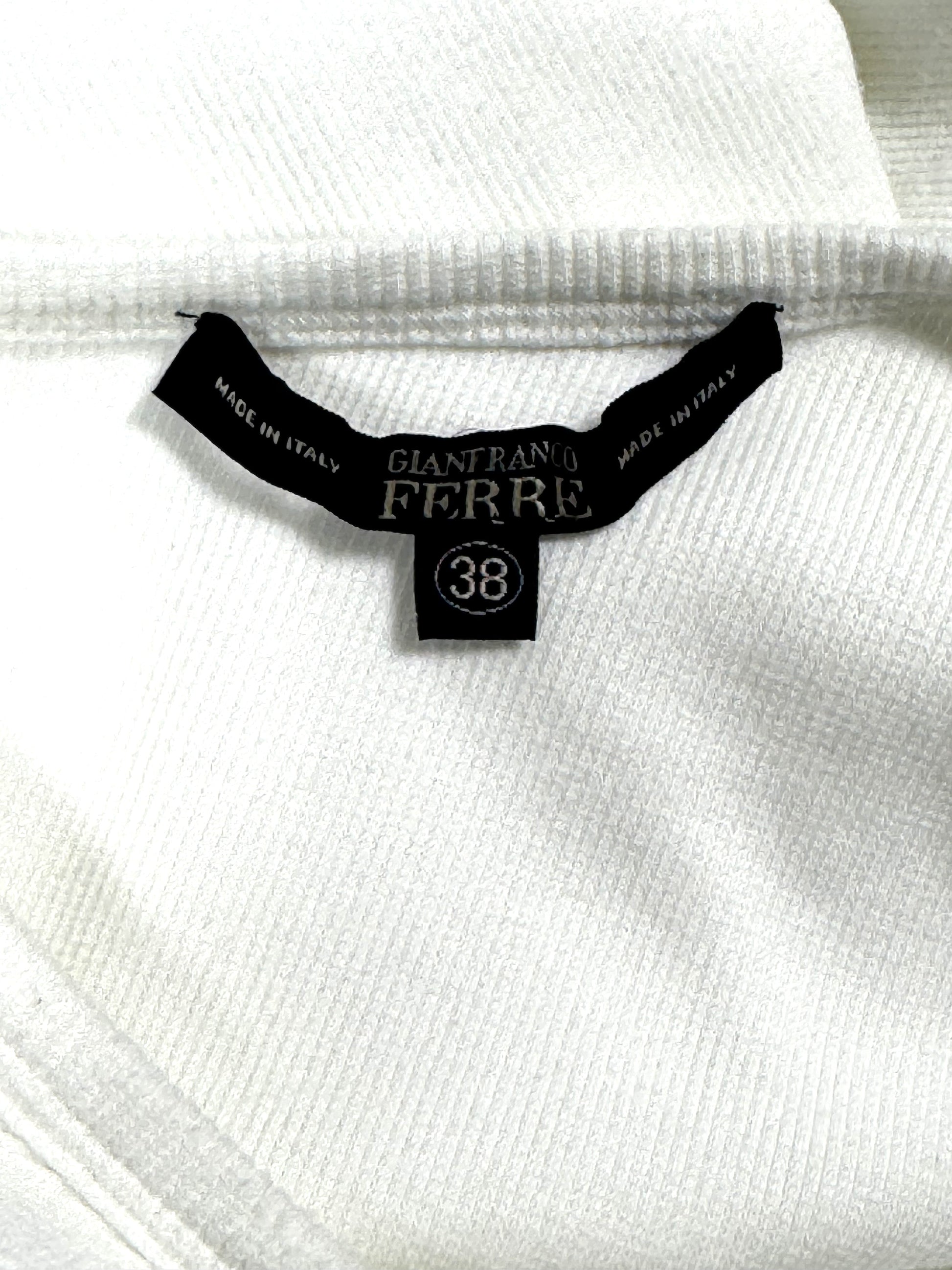 2000's Gianfranco Ferre Semi-Sheer White Cotton Ribbed Racer Back Bodycon Wiggle Mini Dress