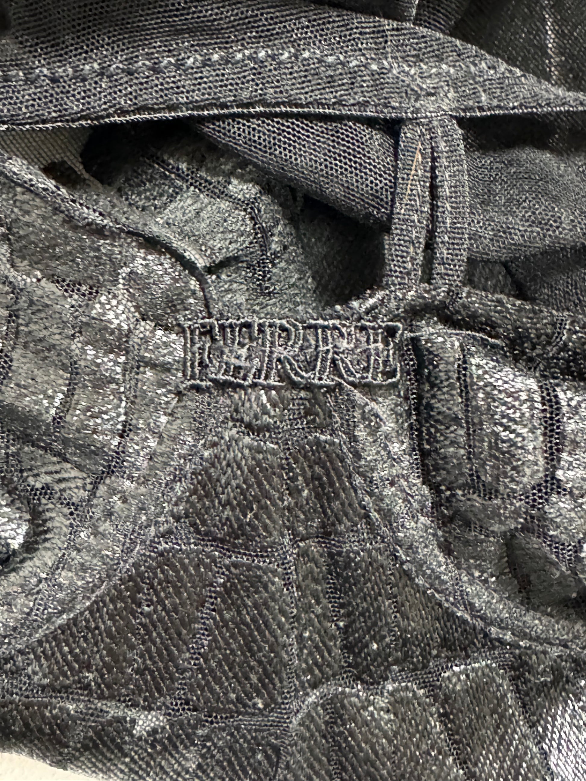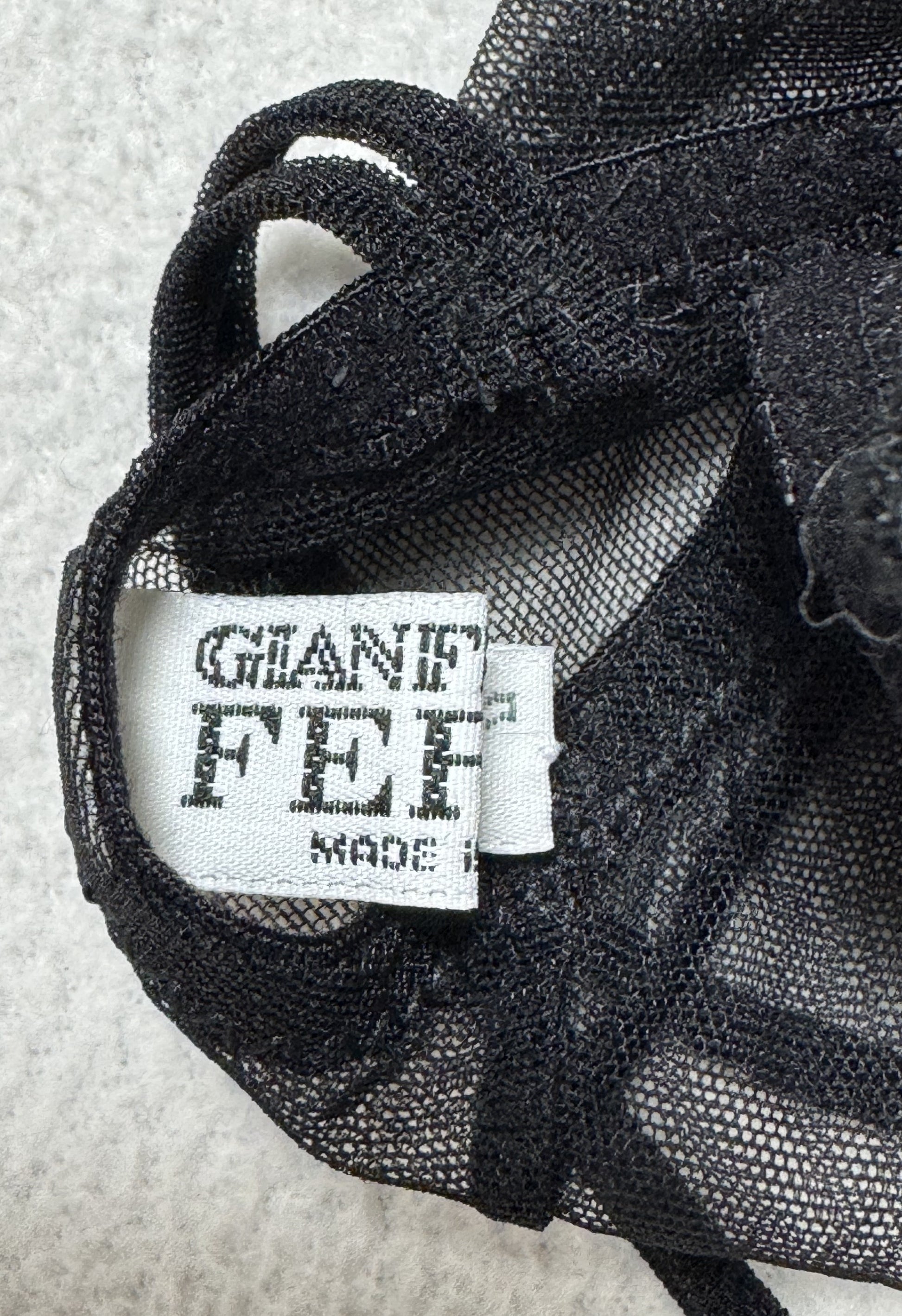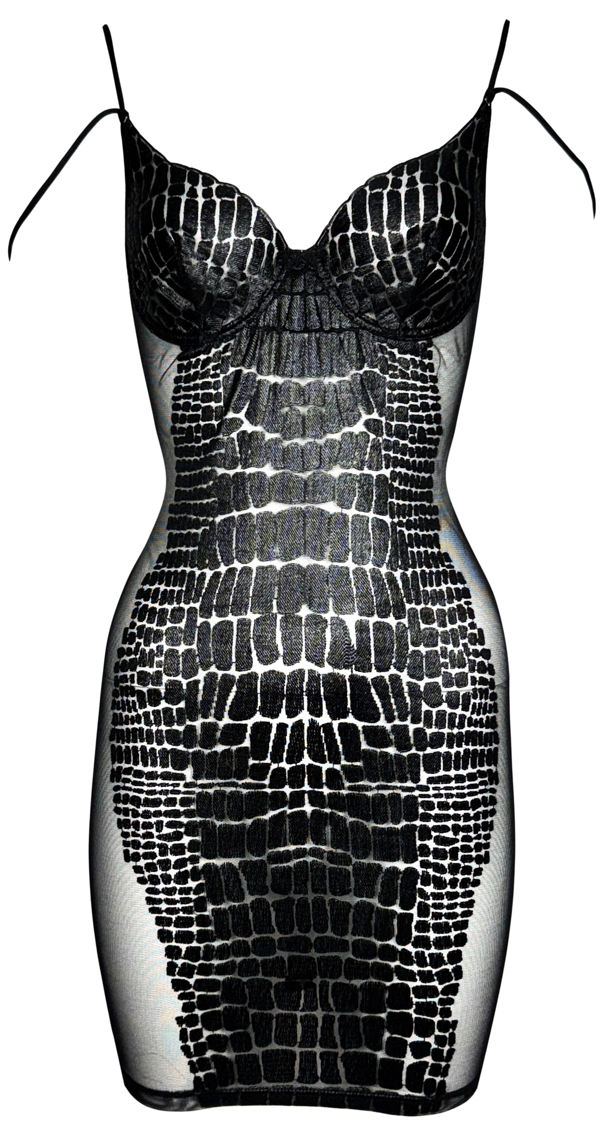 2000's Gianfranco Ferre Sheer Black Nylon Mesh & Faux Crocodile Embellished Bodycon Mini Dress
