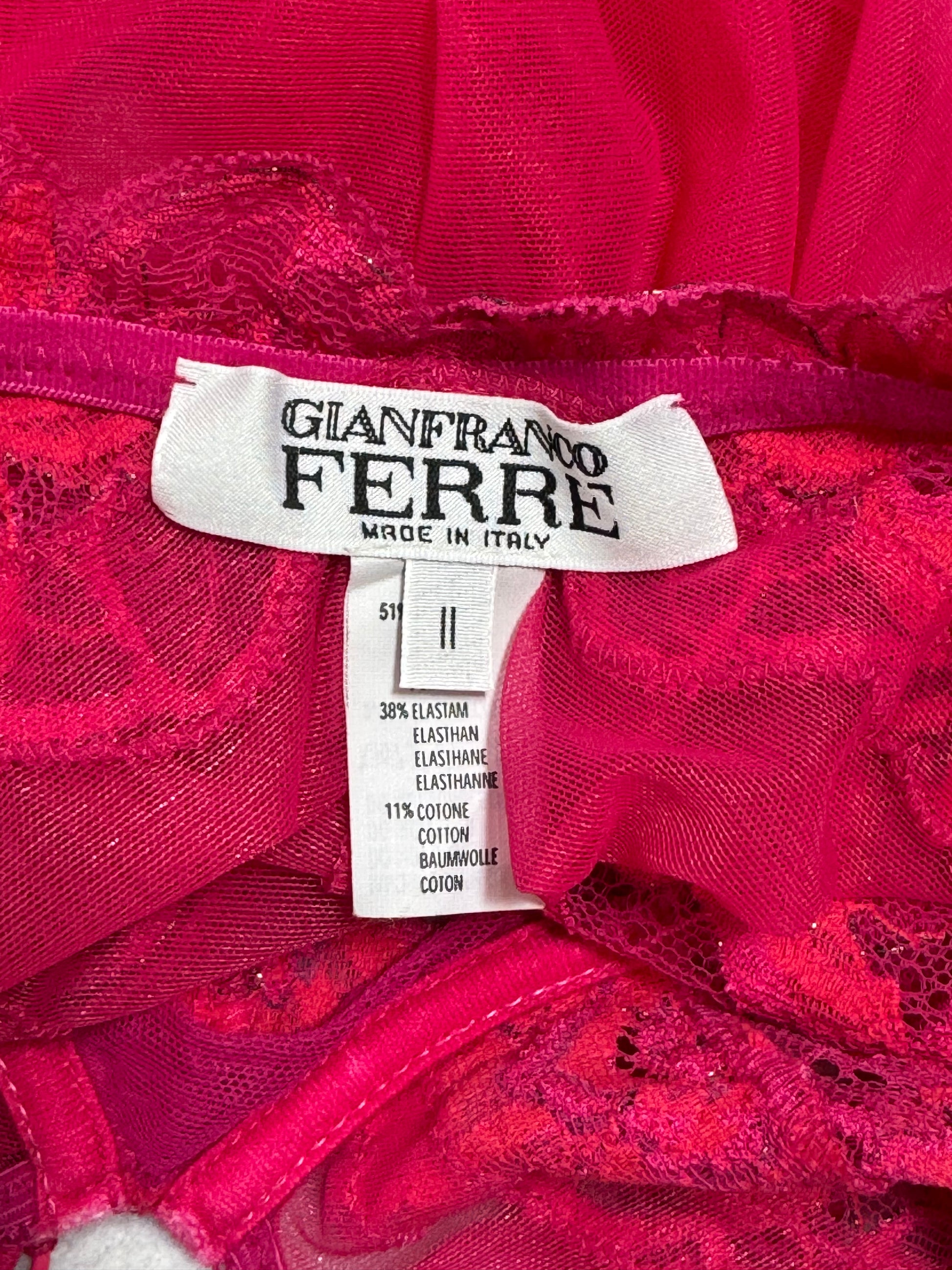 2000's Gianfranco Ferre Sheer Hot Pink Mesh & Lace Bodycon Halter Mini Dress