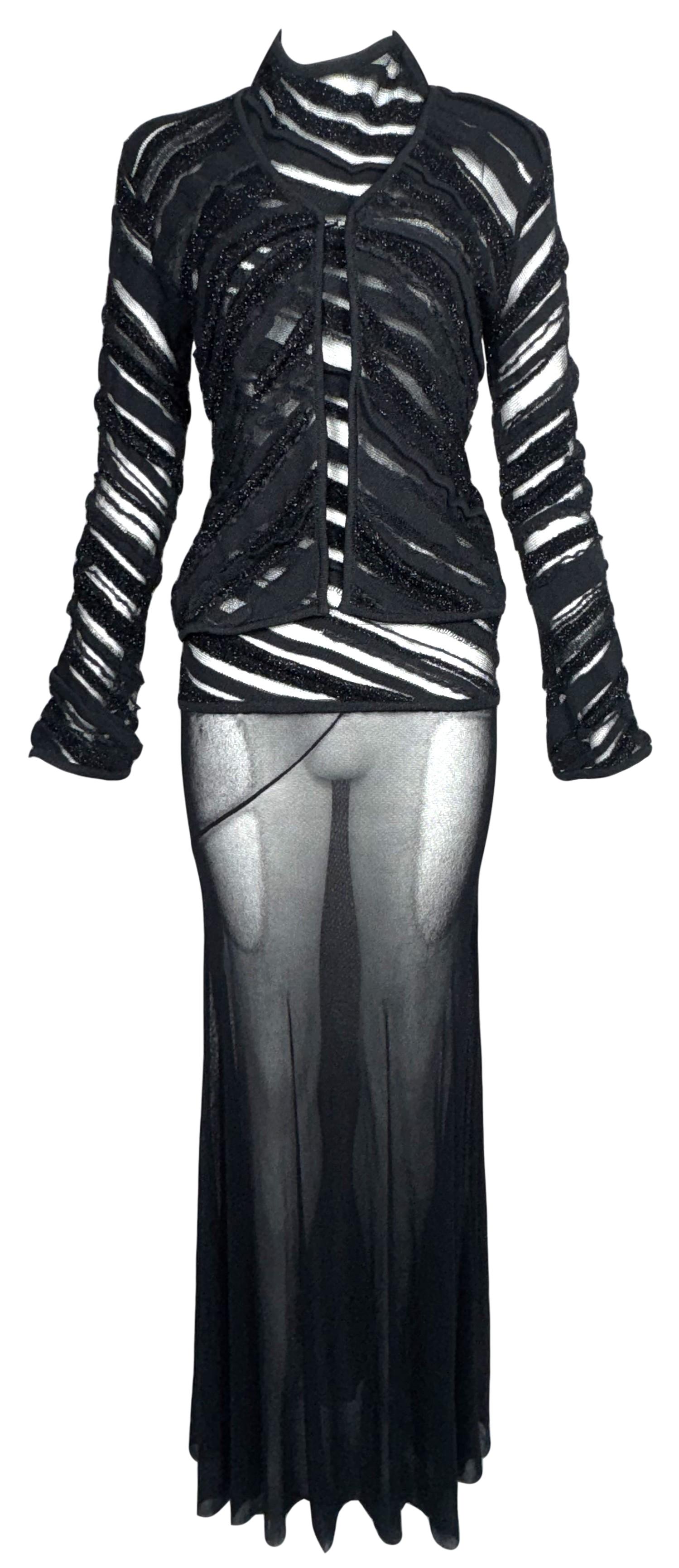 2000's Jean Paul Gaultier Sheer Black Halter Low Back Nylon Maxi Dress & Matching Jacket Set