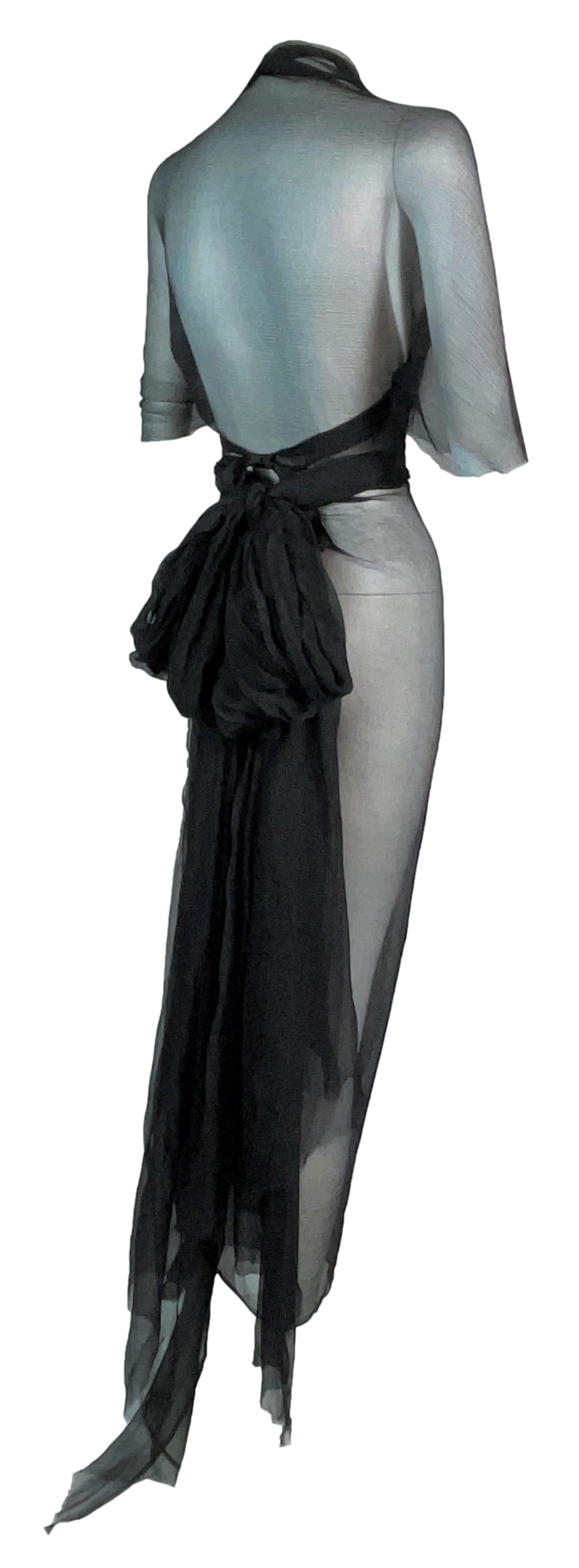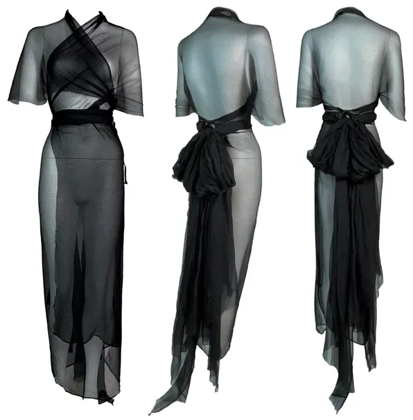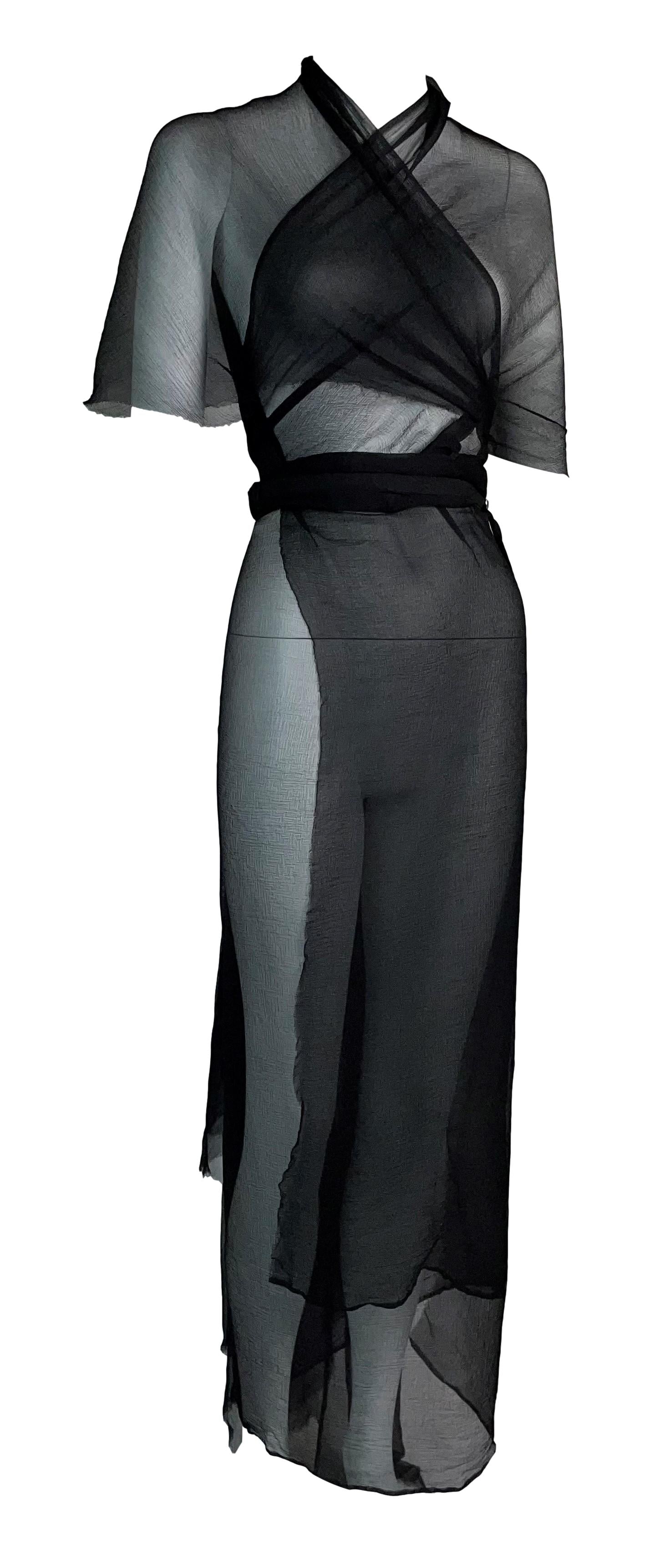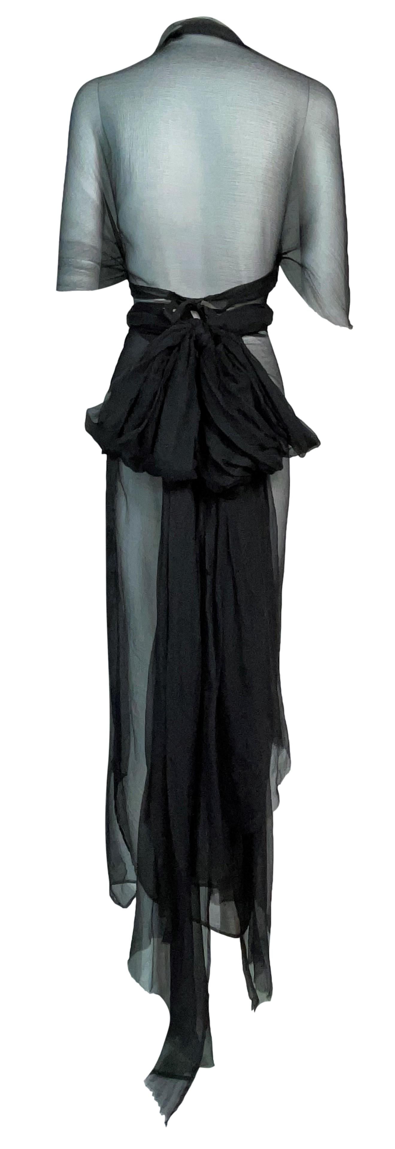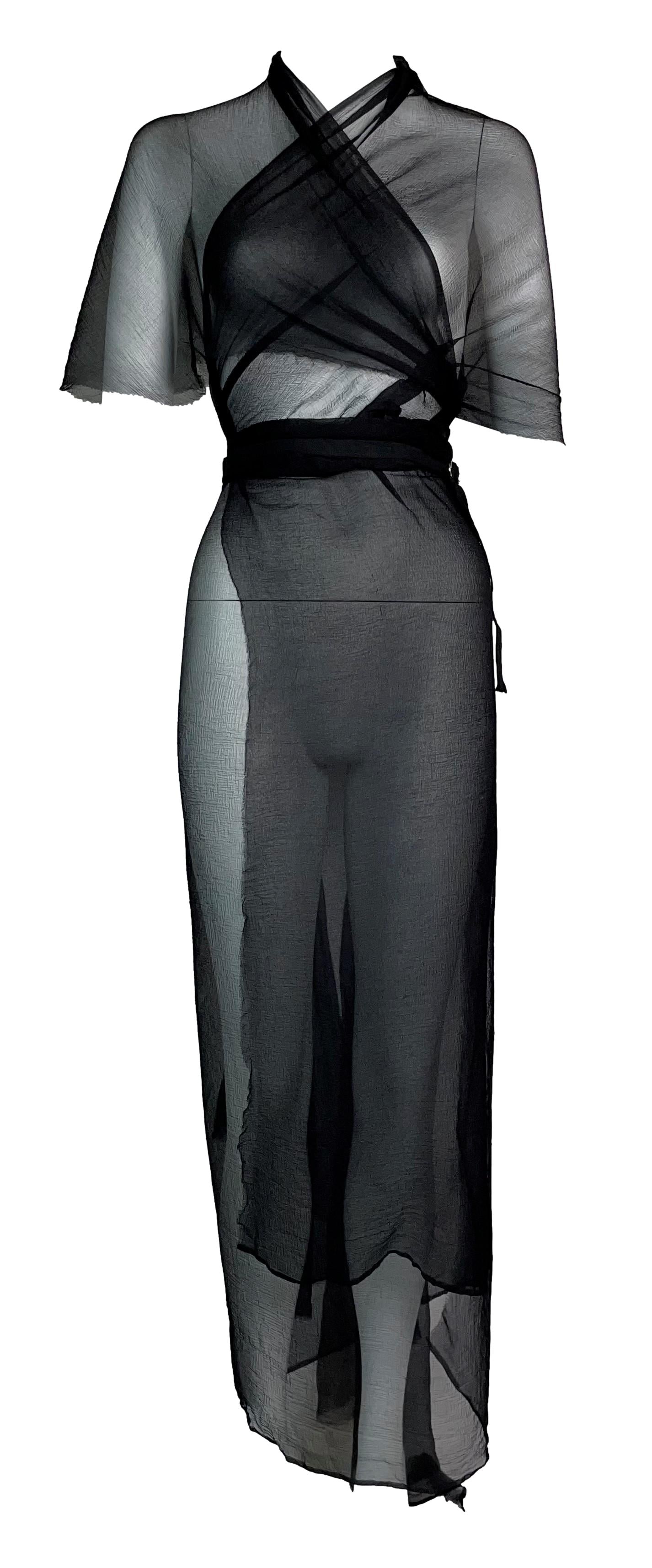 2000's Maison Martin Margiela Artisanal Sheer Black Japanese Kimono Style Wrap Dress w Bow