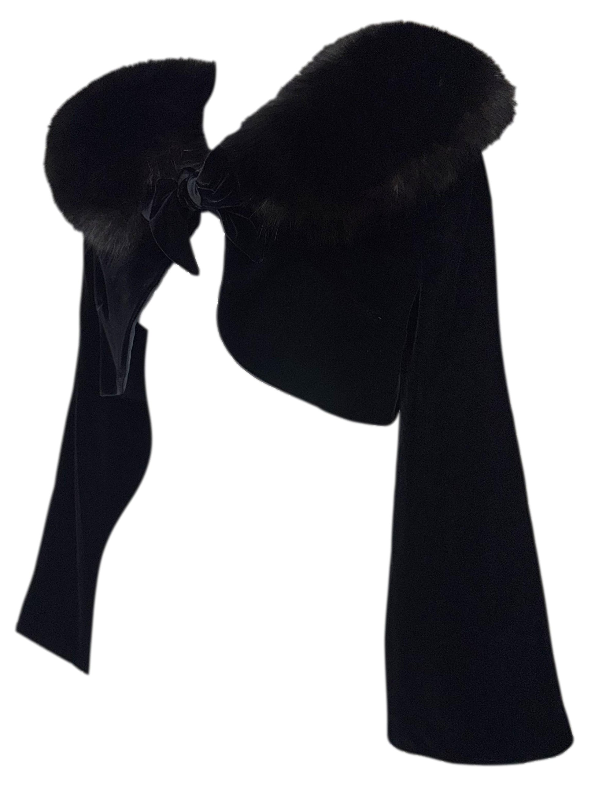 2000's Valentino Black Velvet Cropped Bell Sleeve Jacket w Fox Fur
