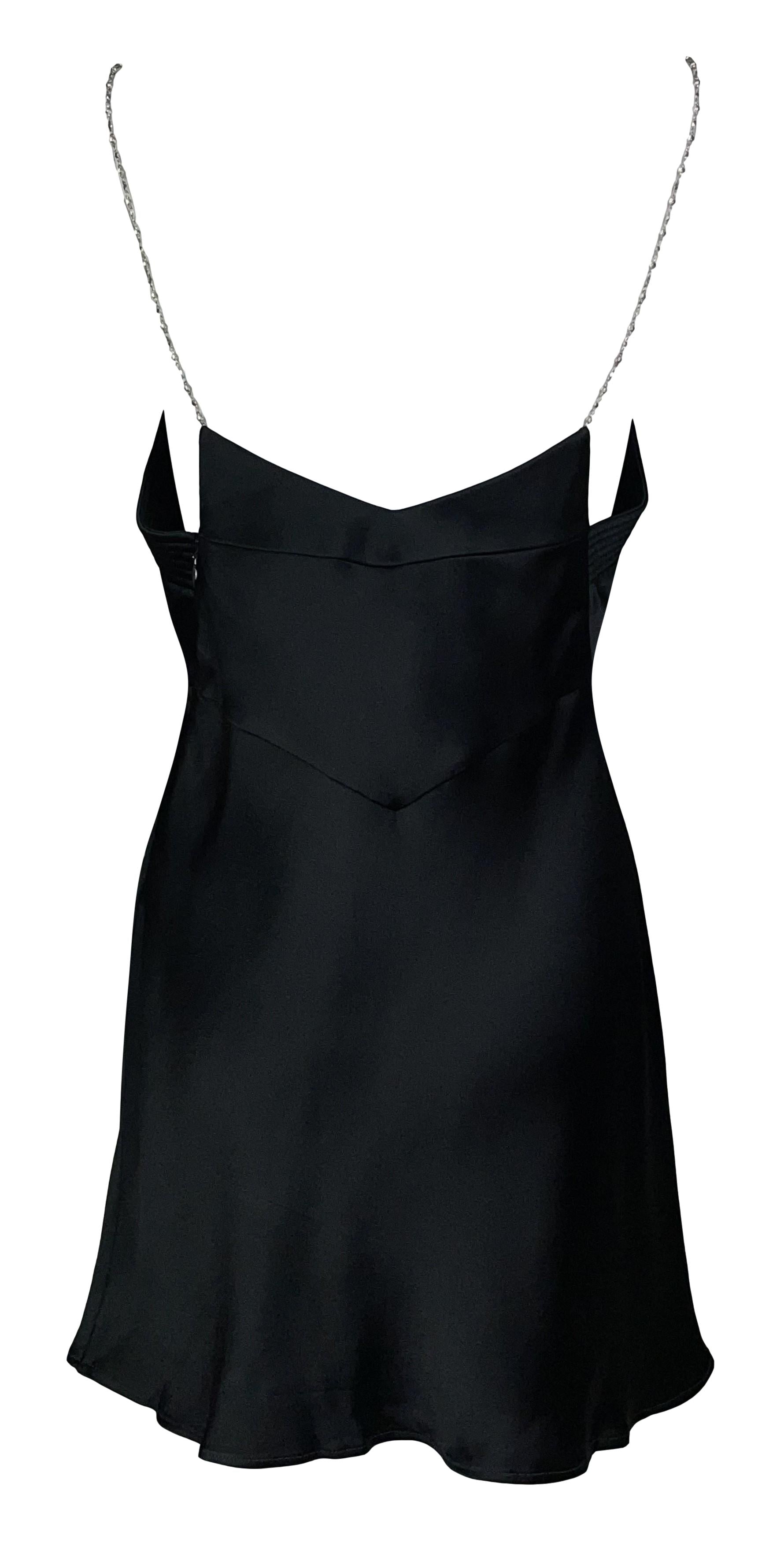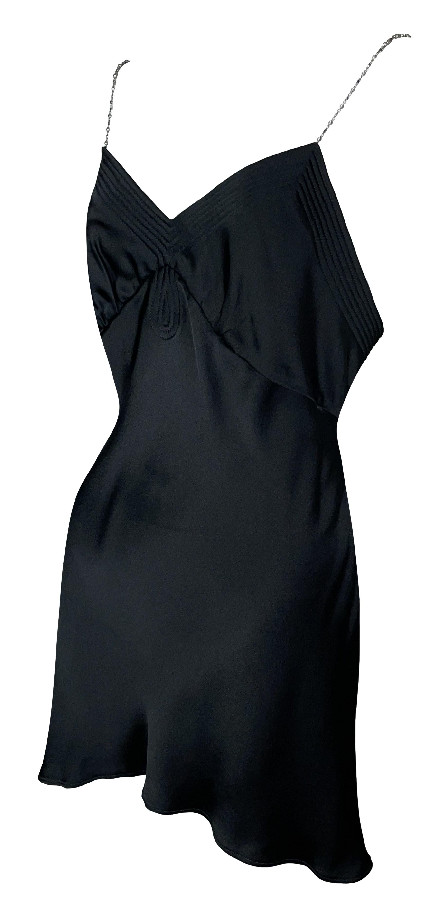 2001 Christian Dior by John Galliano Black Satin Silver Chain Straps Mini Dress