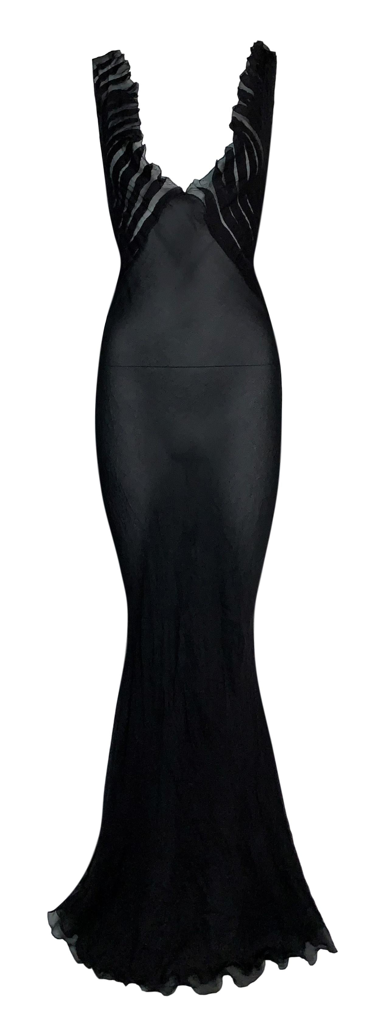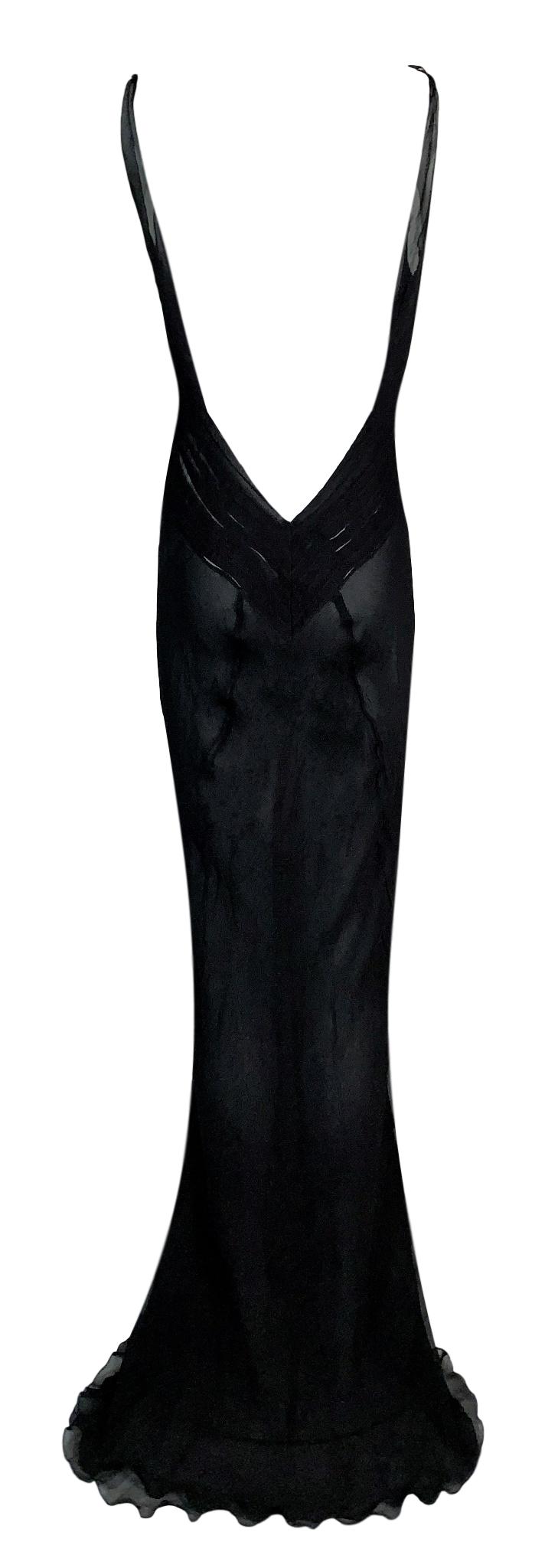 2001 Gucci by Tom Ford Plunging Sheer Black Silk Mermaid Gown Dress 42