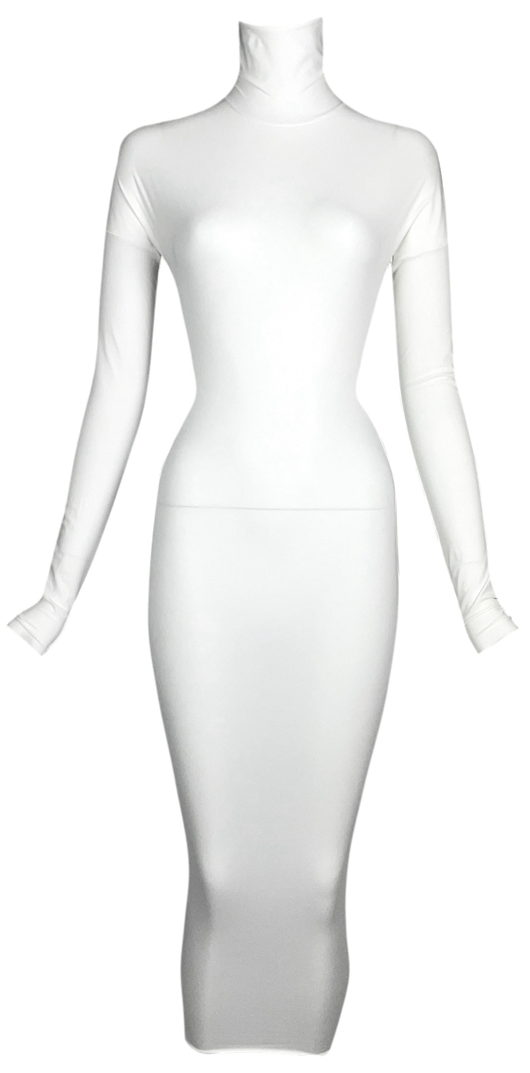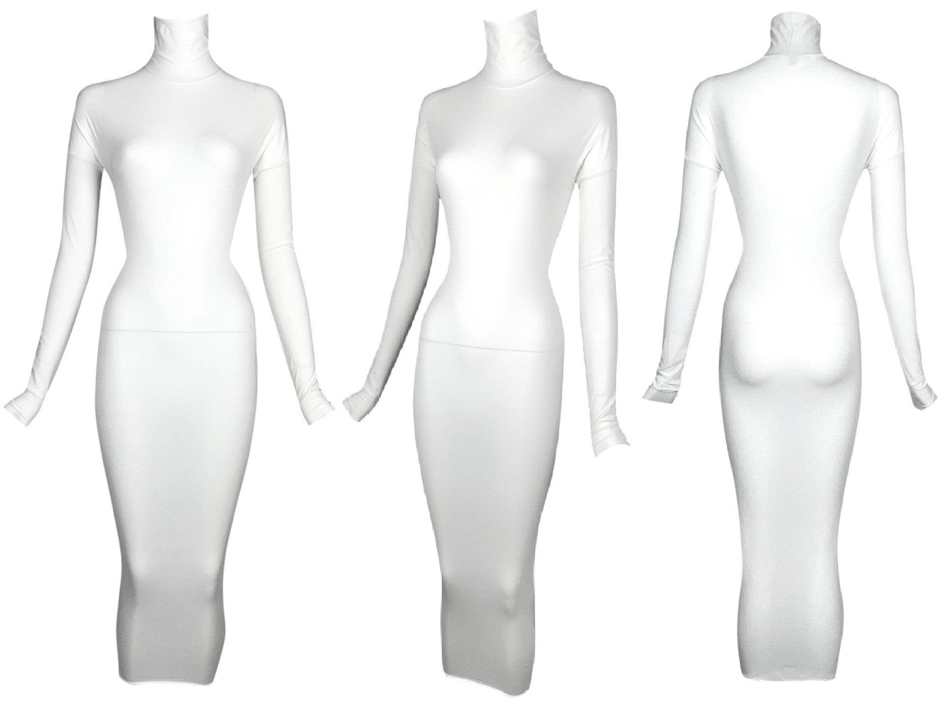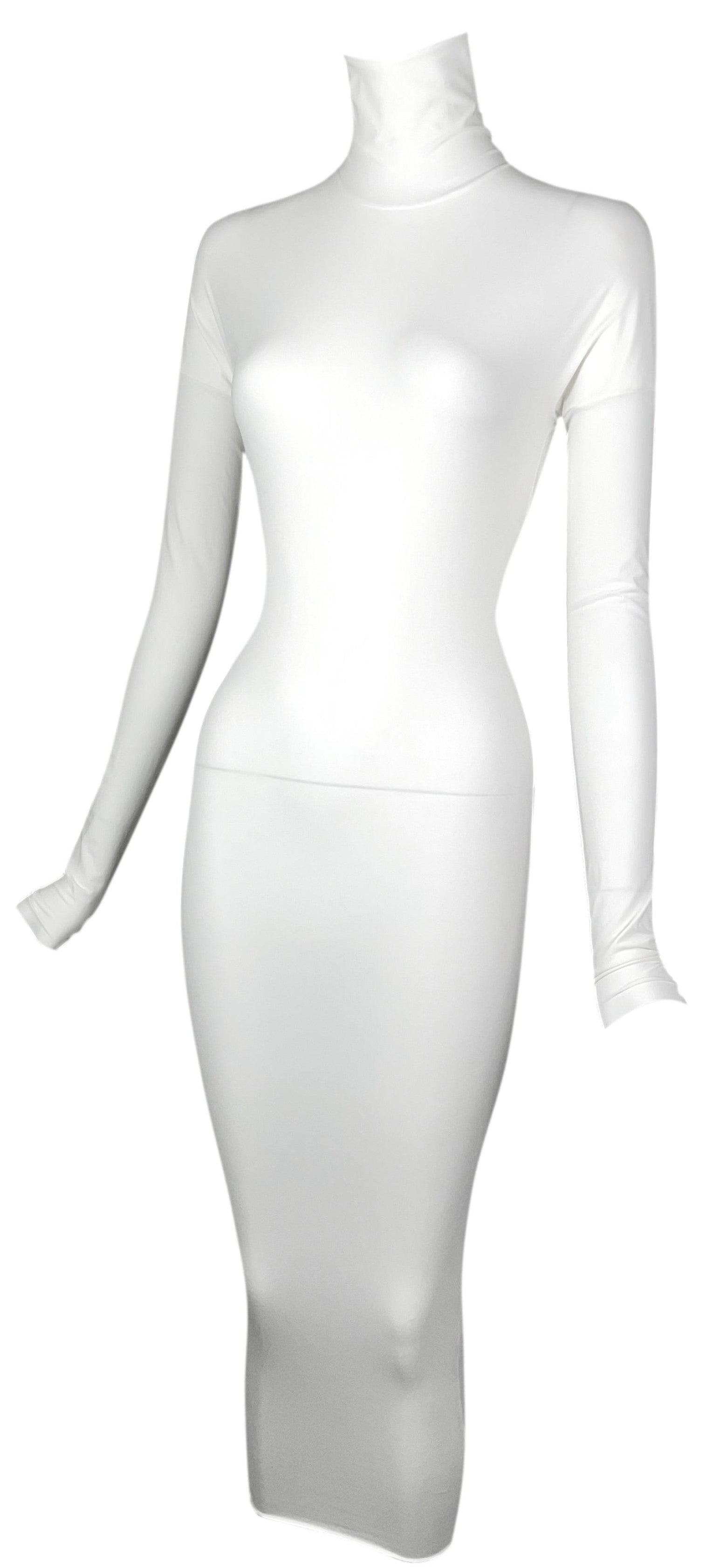2001 Gucci by Tom Ford Sheer White Nylon Bodystocking Maxi Wiggle Dress
