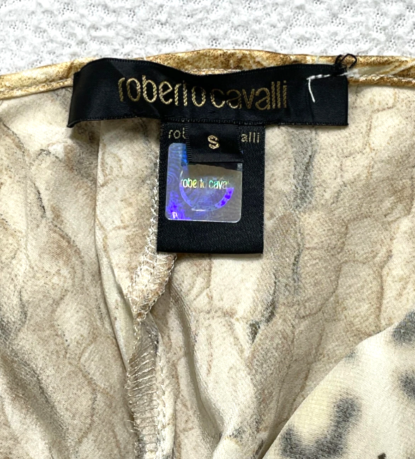 2002 Roberto Cavalli Silk Cheetah & Crocodile Print Ruffles Halter Gown Dress