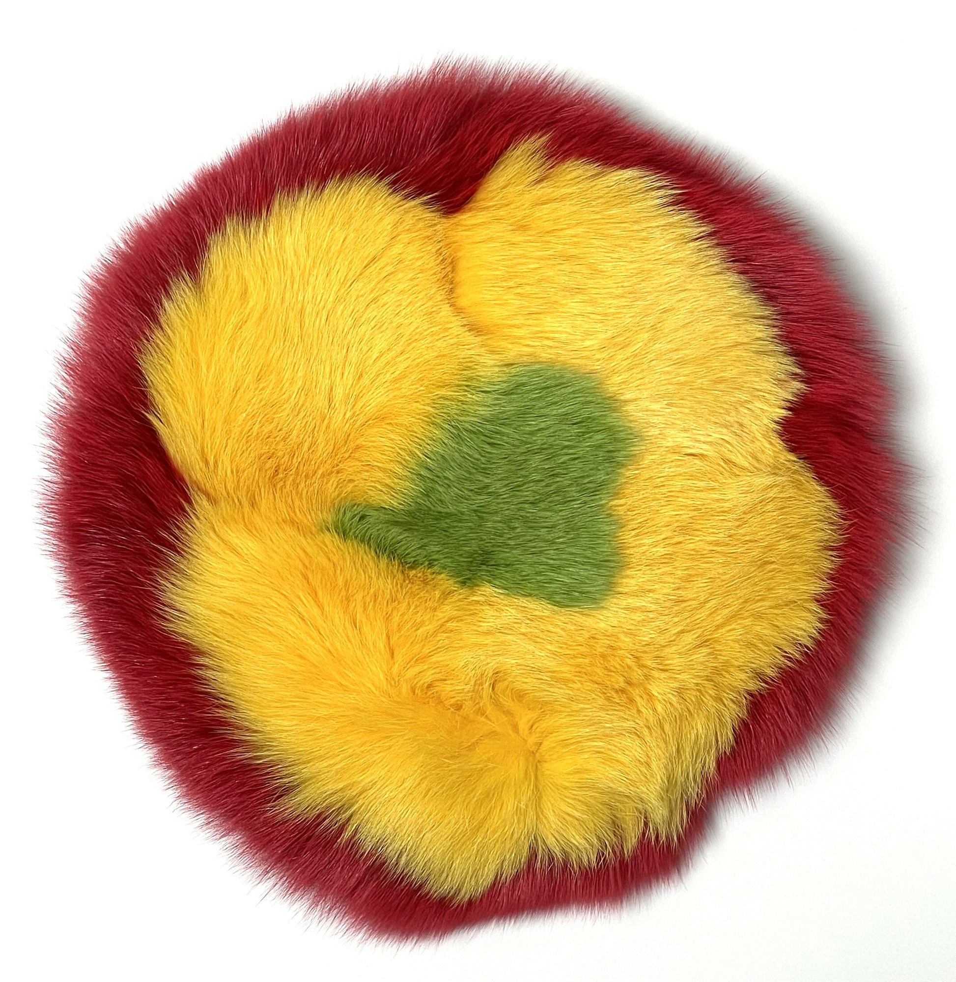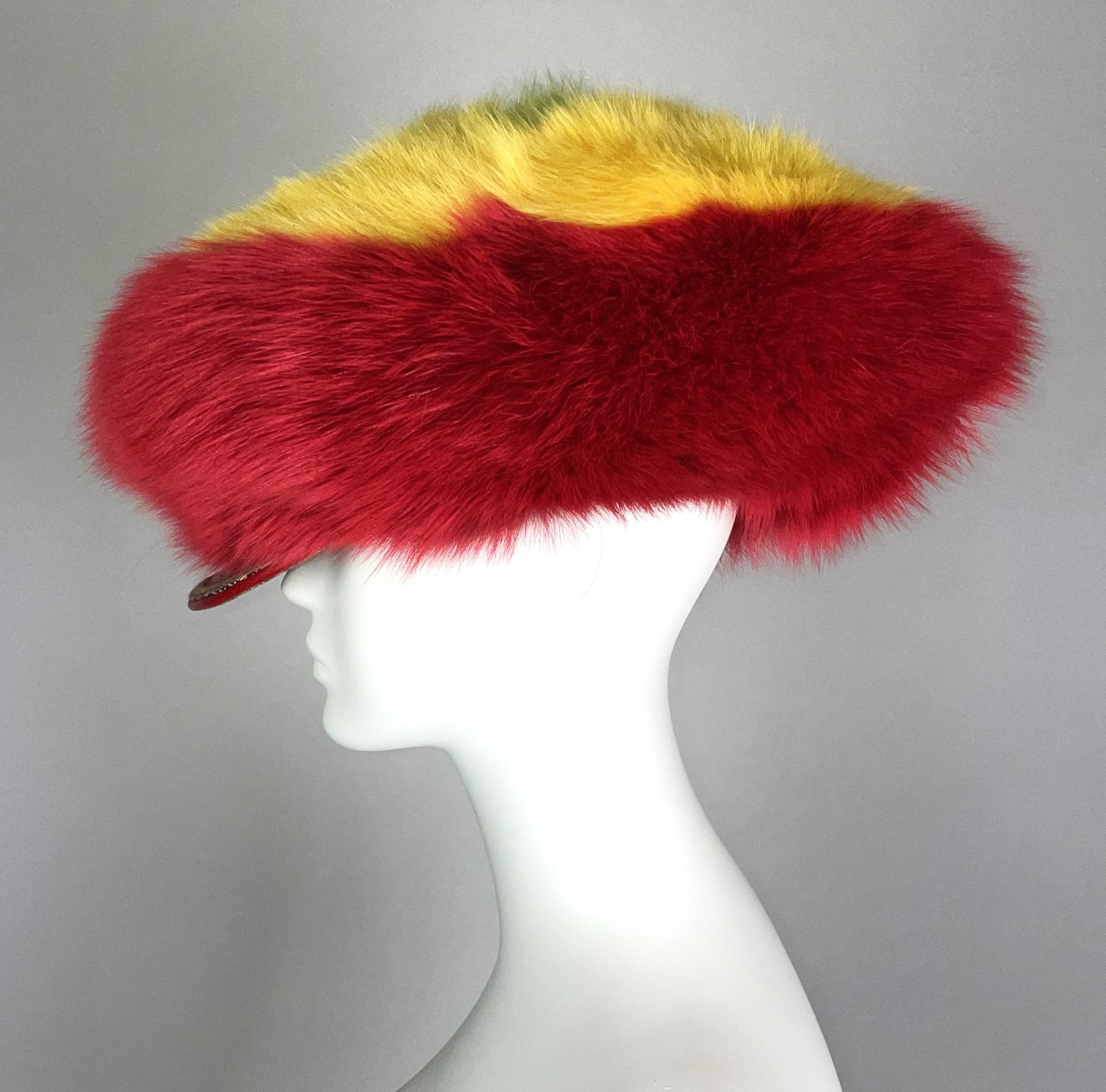 2004 Christian Dior by John Galliano Rasta Red & Yellow Fox Fur Hat