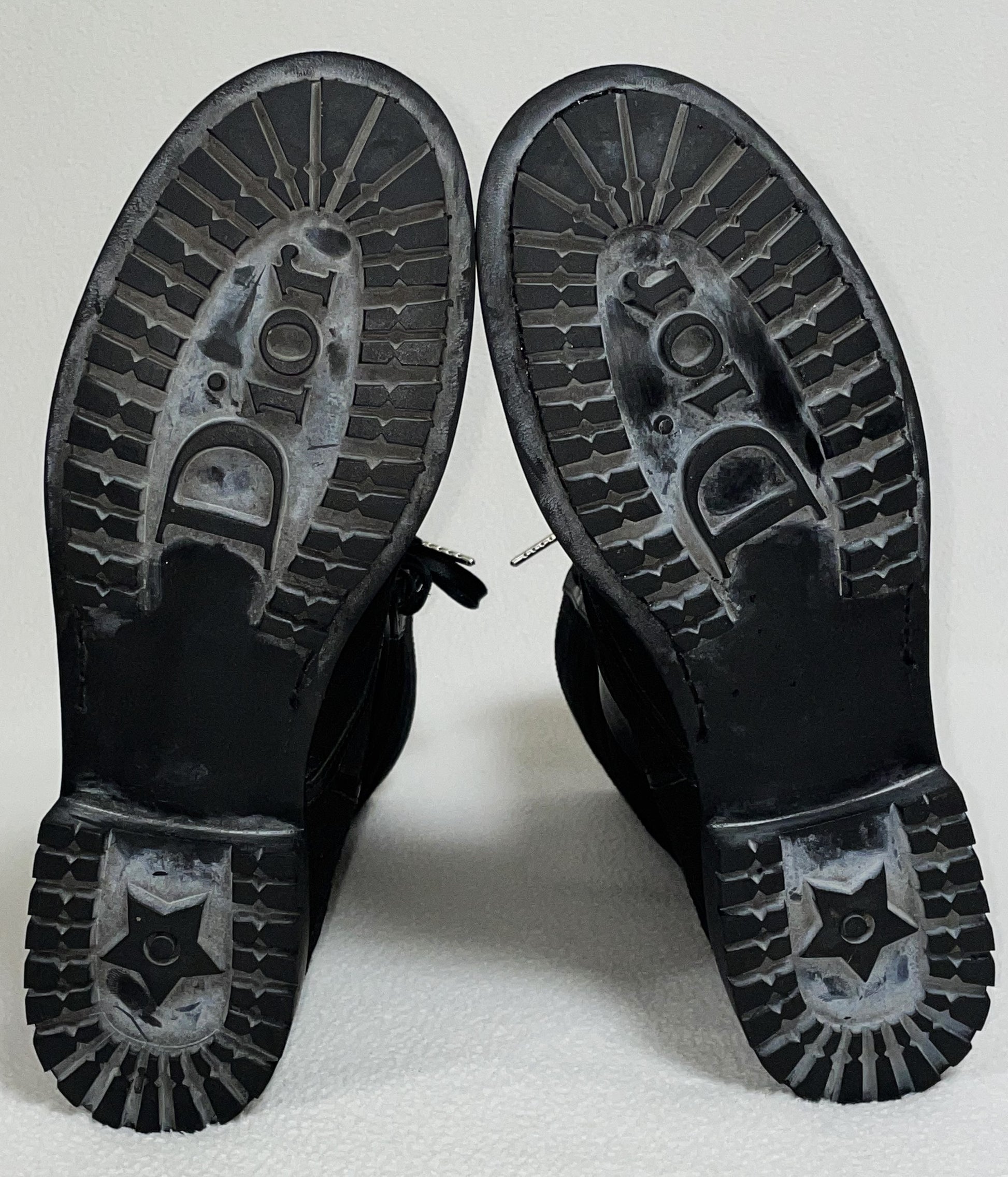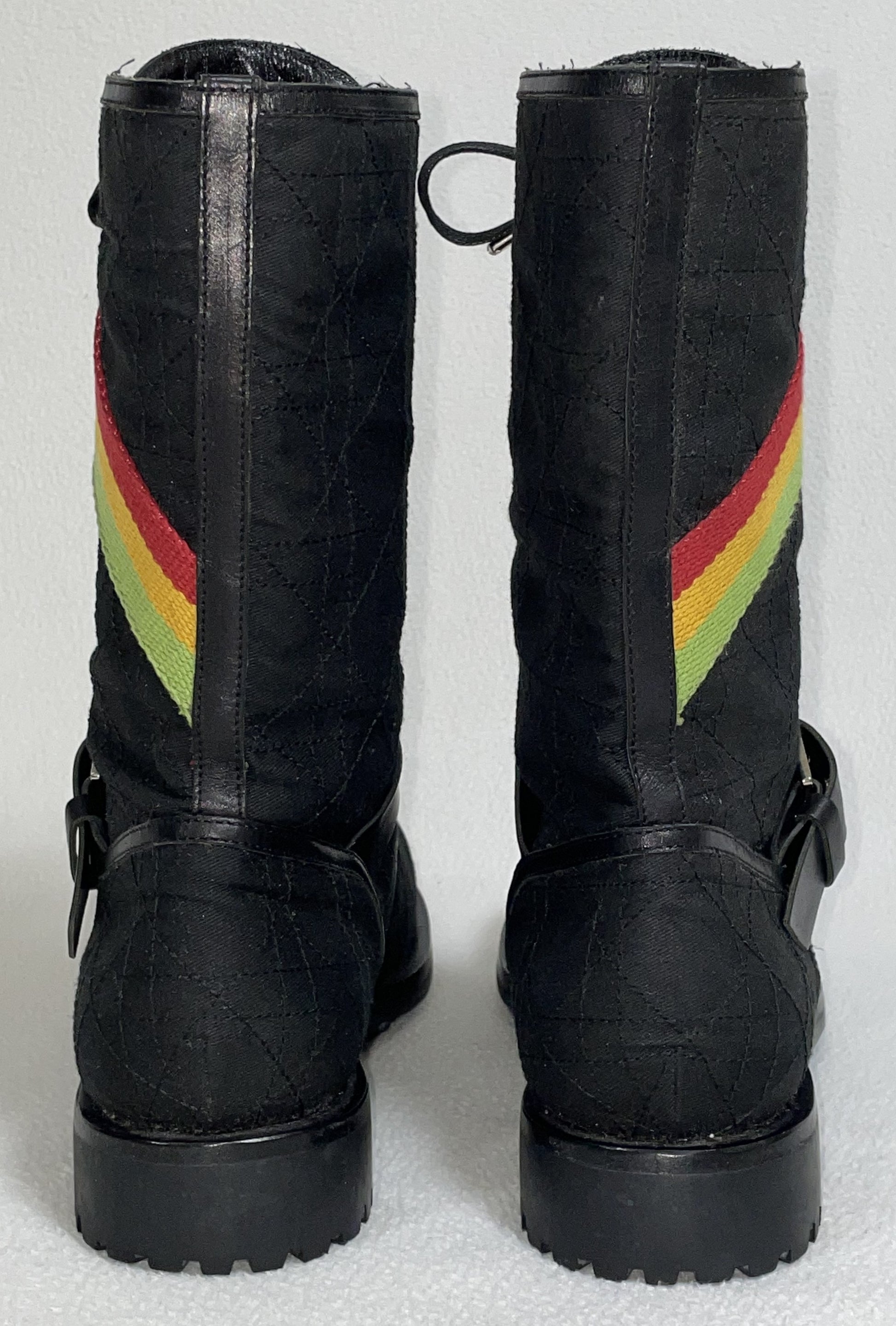 2004 Christian Dior x John Galliano Black Rasta Combat Boots Dog Tag & Buckles 41/10