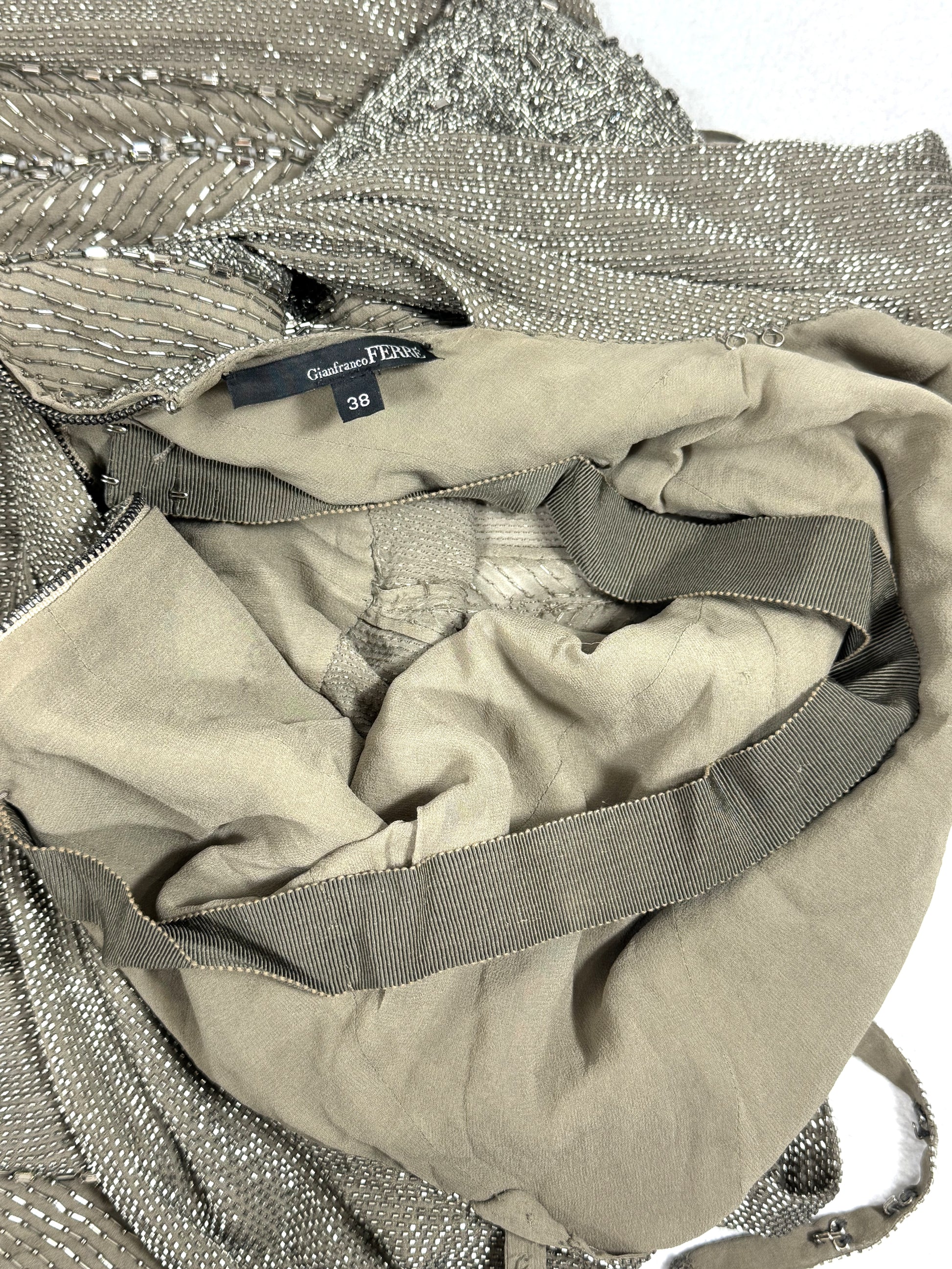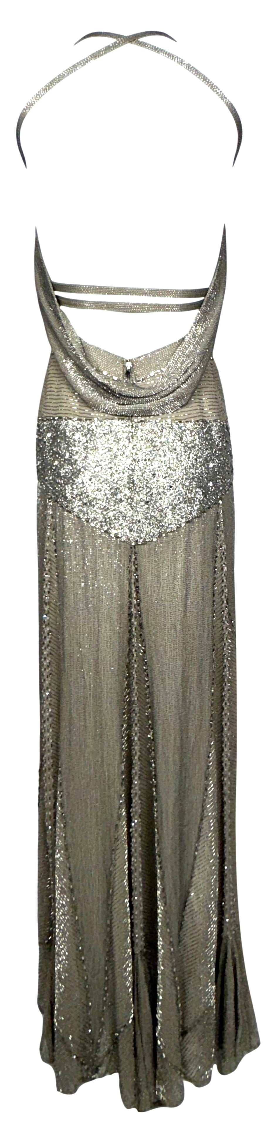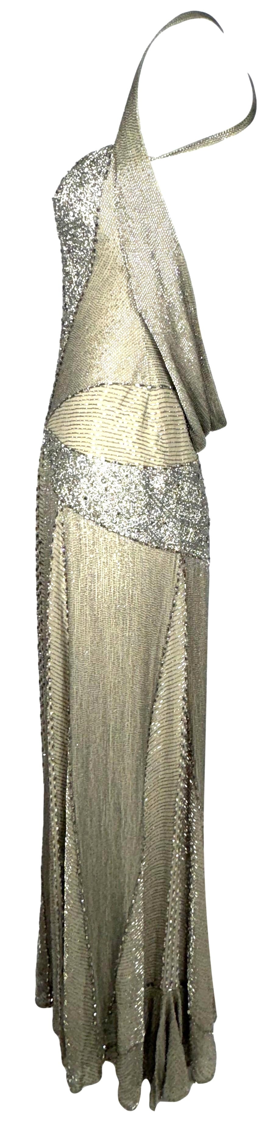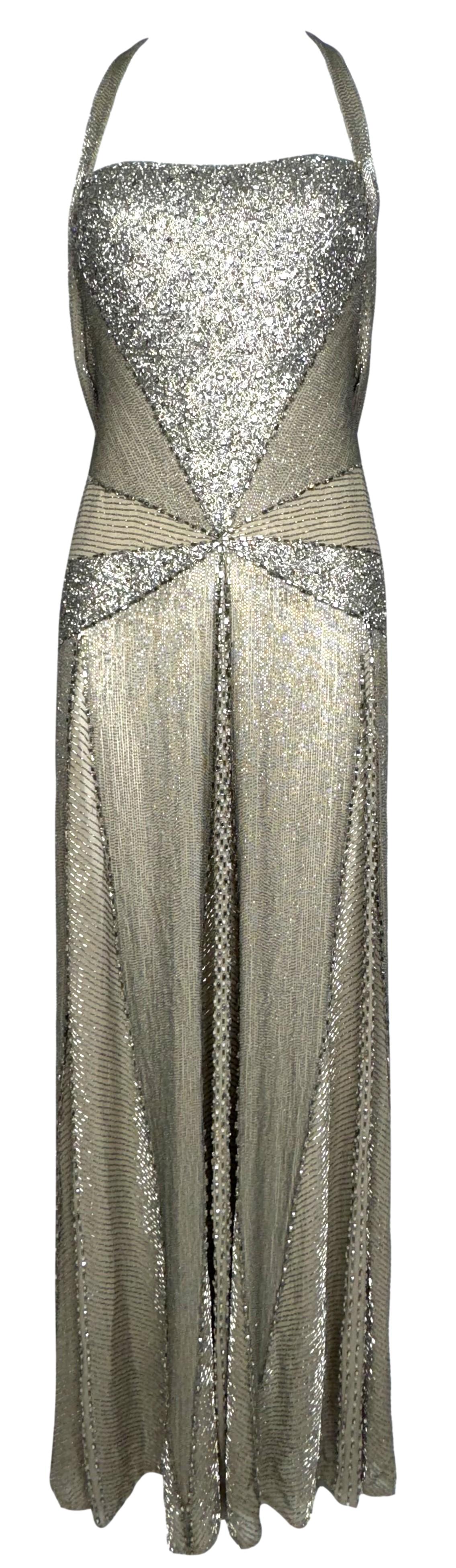 2009 Gianfranco Ferre 1940's Style Fully Beaded Old Hollywood Halter Maxi Gown Dress