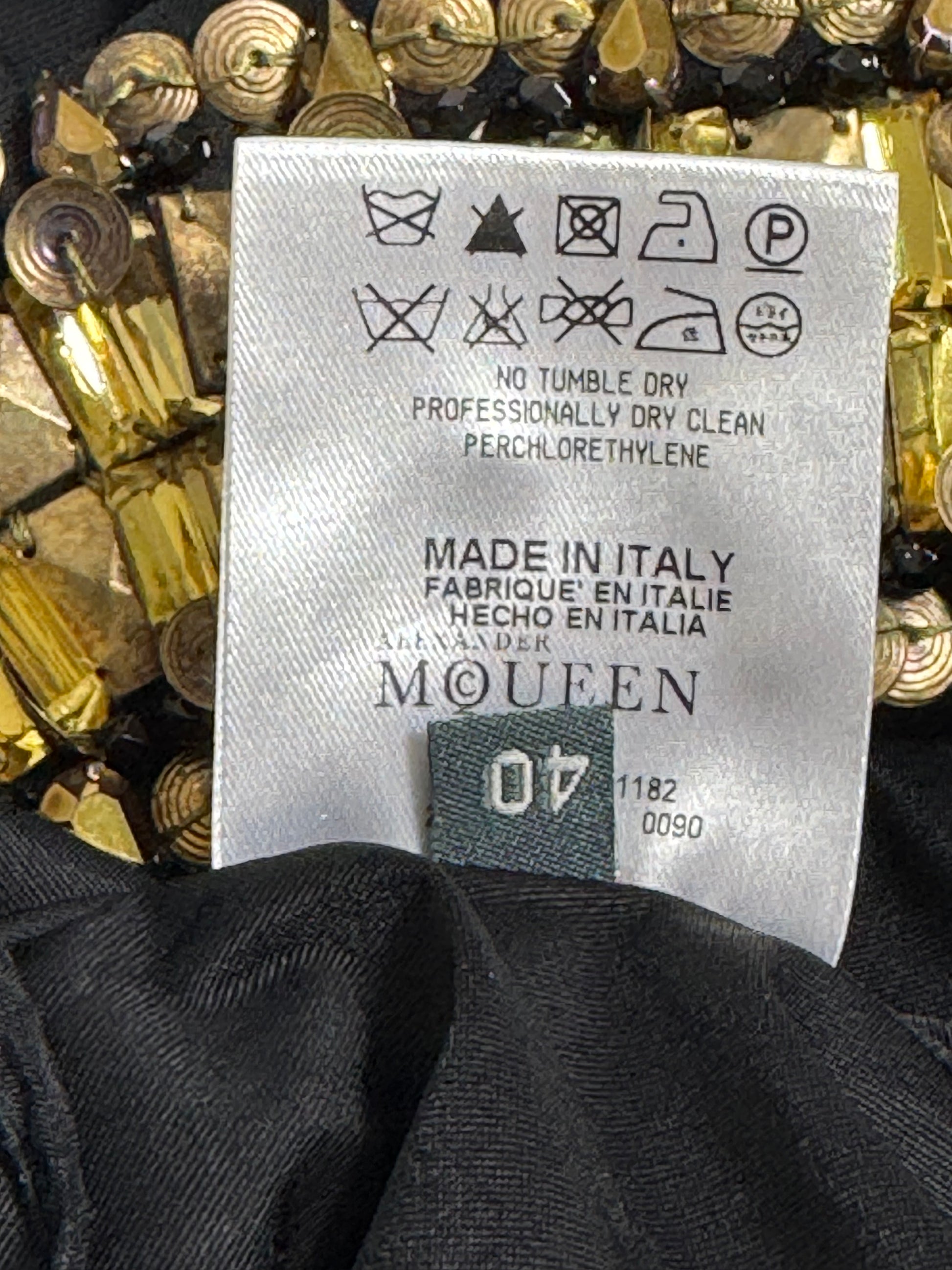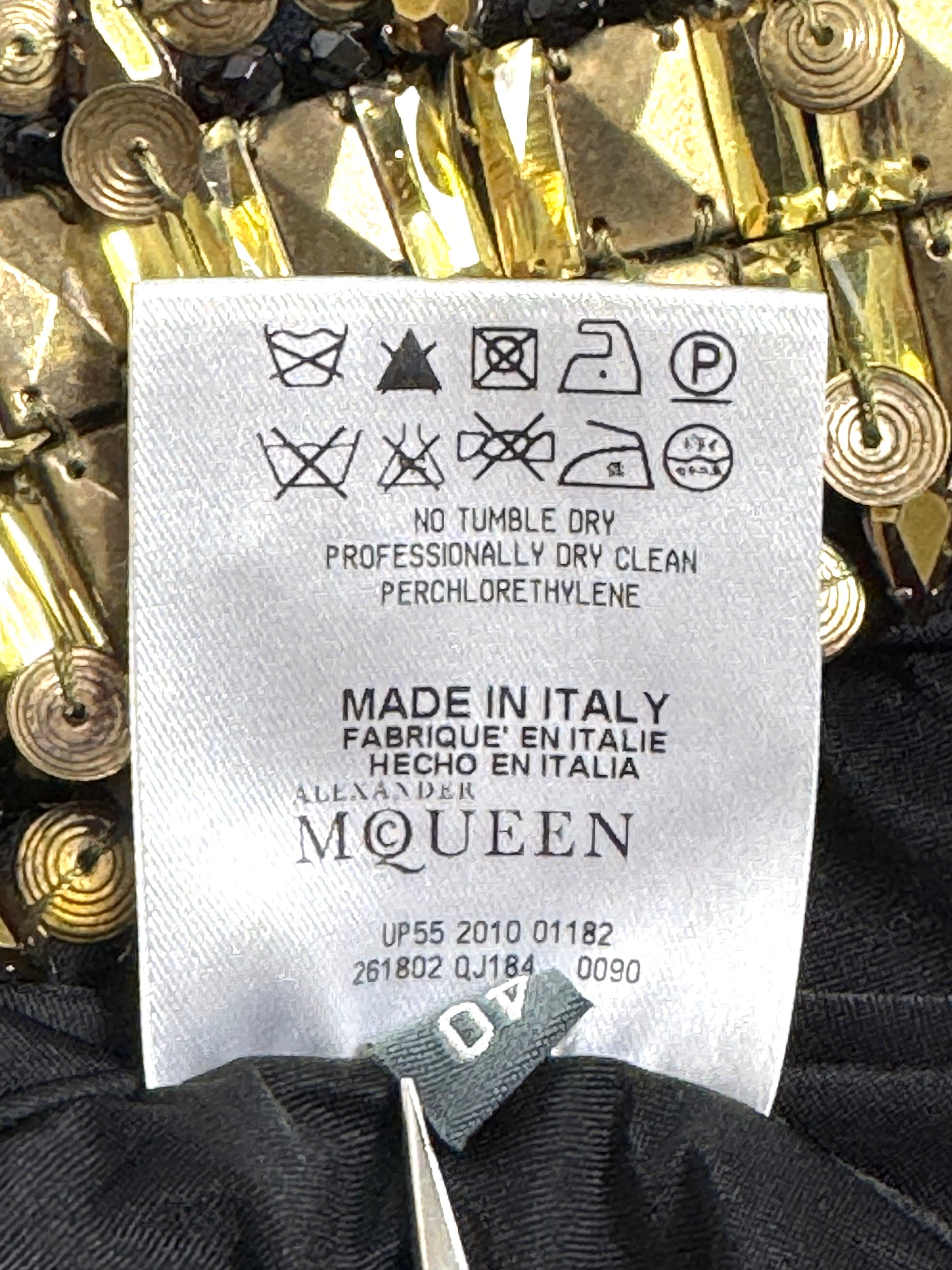 2011 Resort Alexander McQueen Grecian Roman Plunging Black Super High Slit Gold Crystal Embellished Gown Maxi Dress