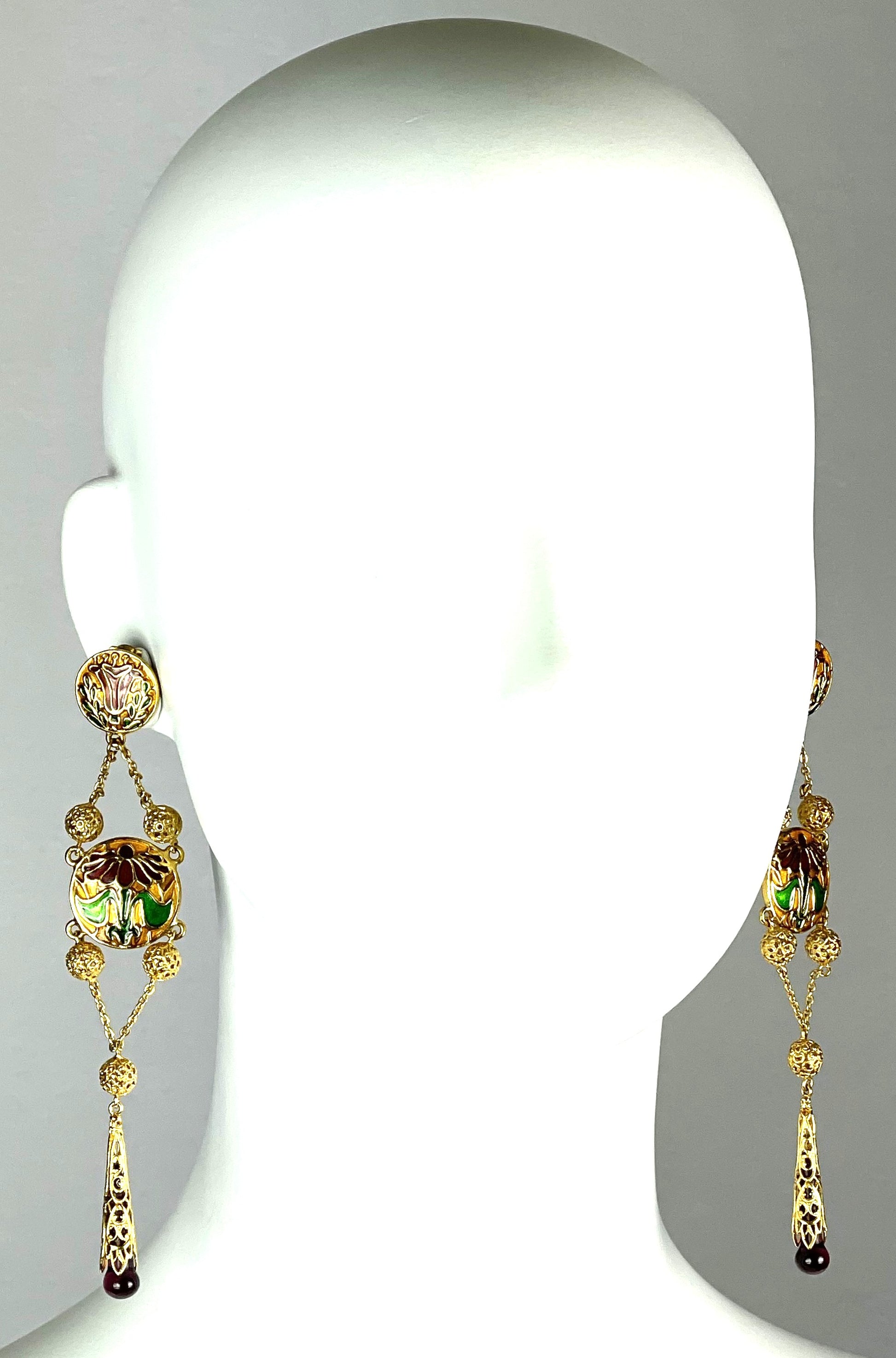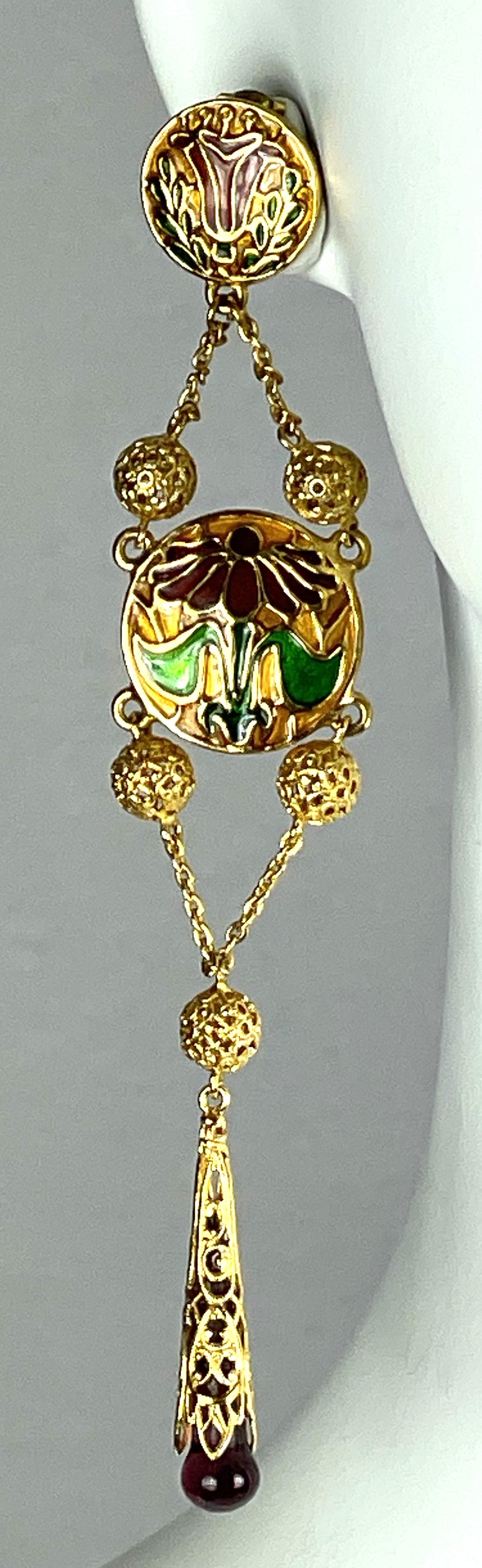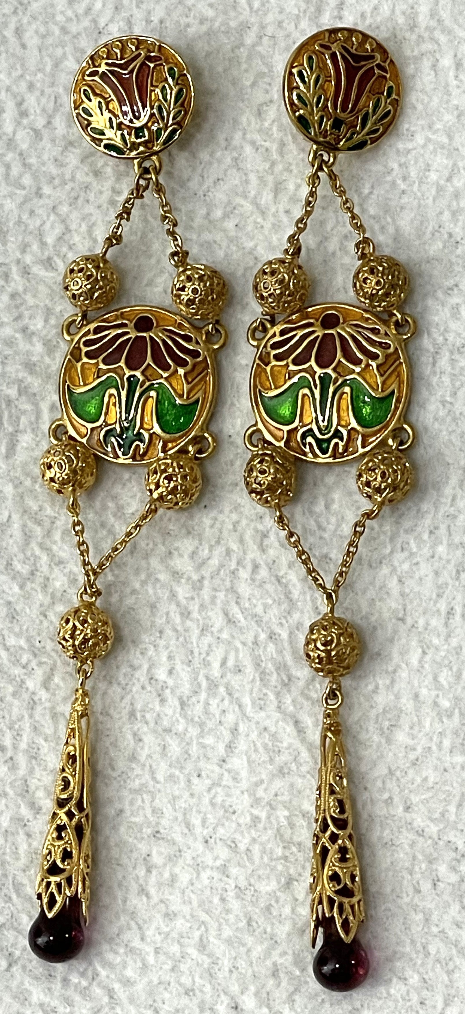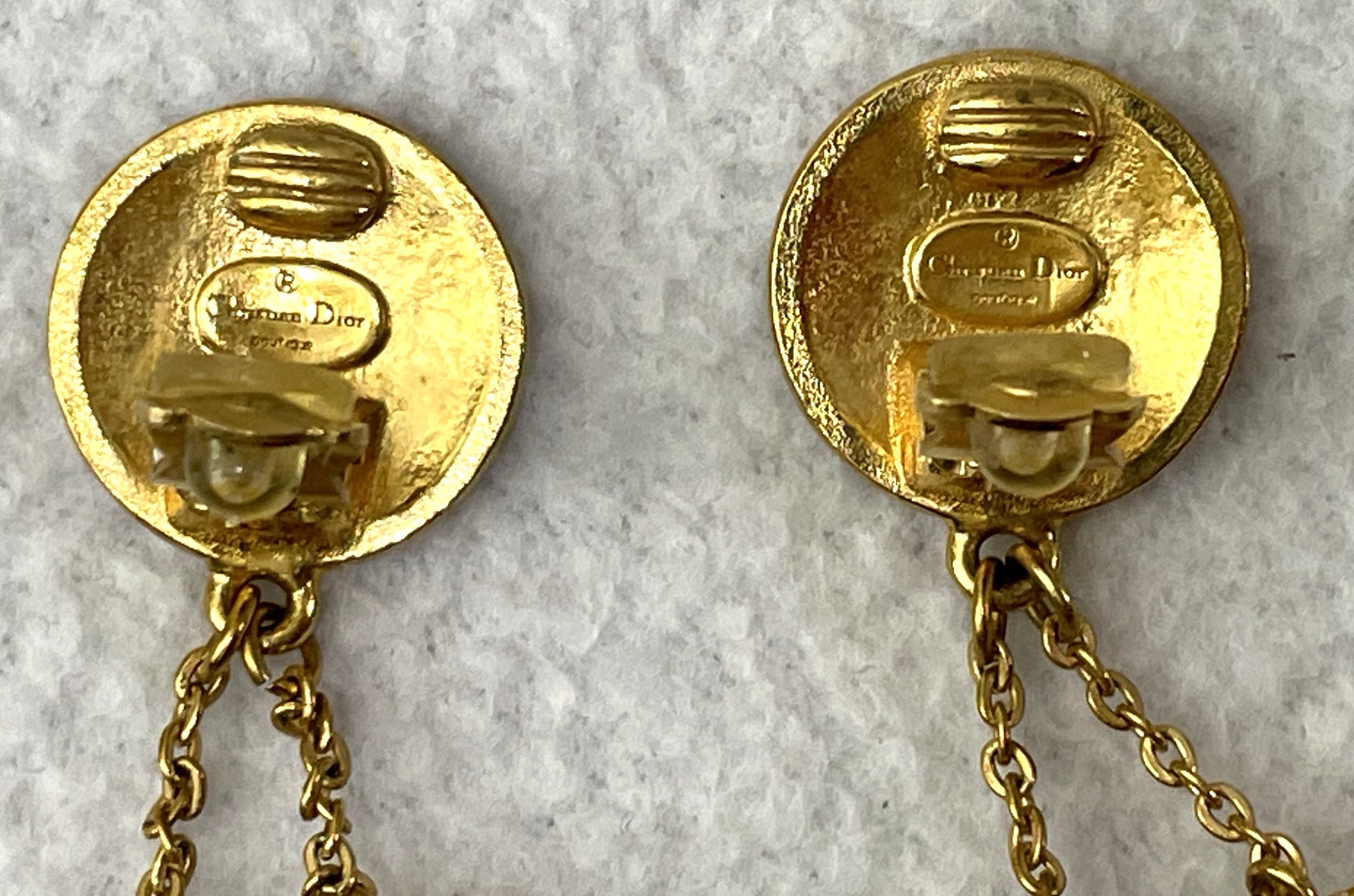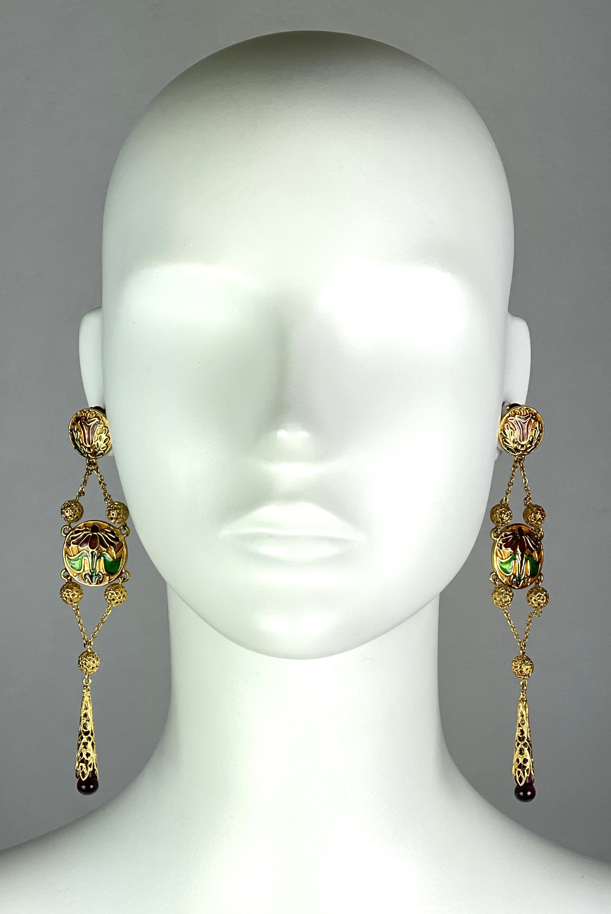 C. 1998 Christian Dior by John Galliano Haute Couture Long Gold Chinoiserie Art Deco 20's Style Earrings