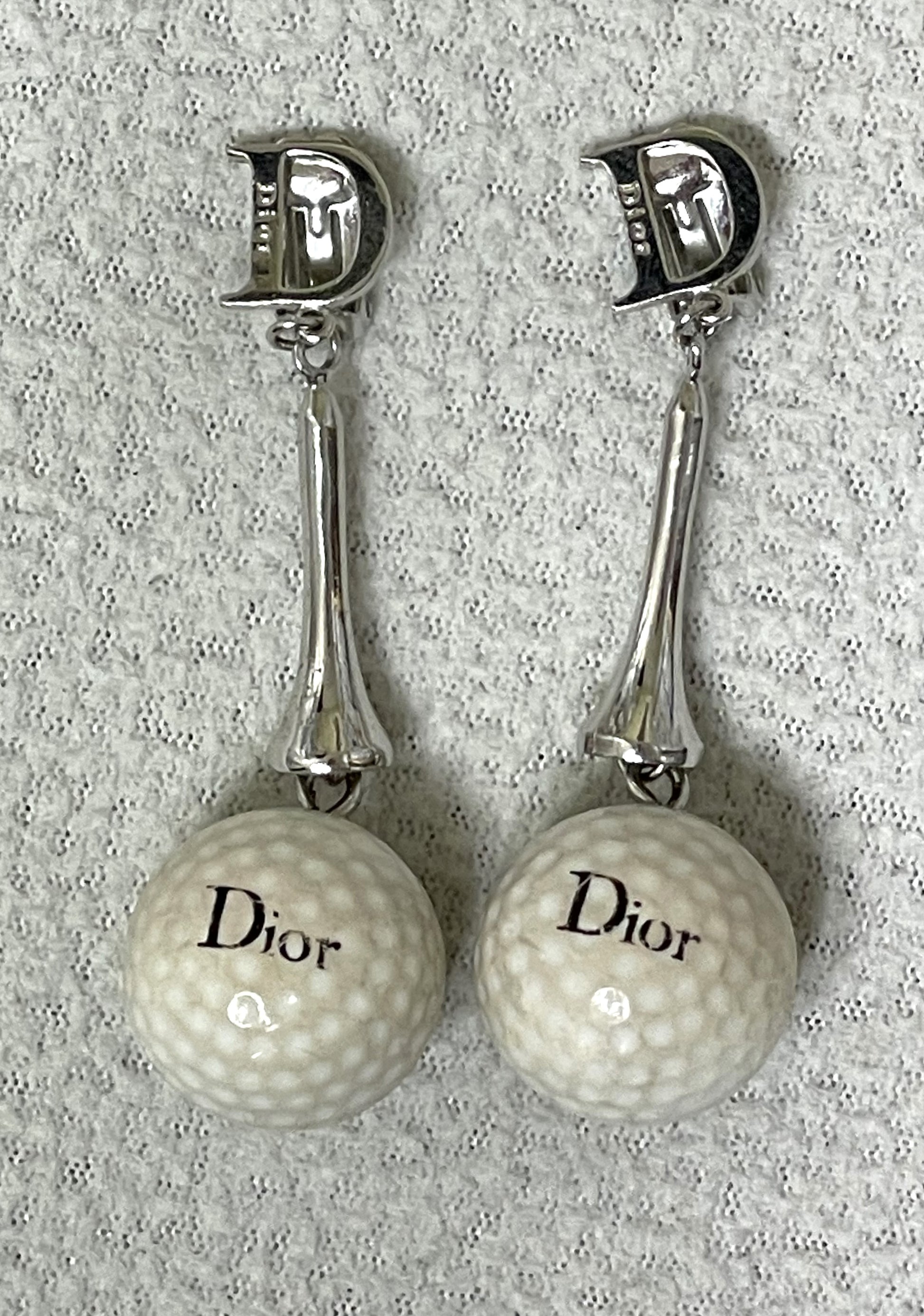 C. 2003 Christian Dior by John Galliano Golf Ball & Tee Long Dangle Earrings