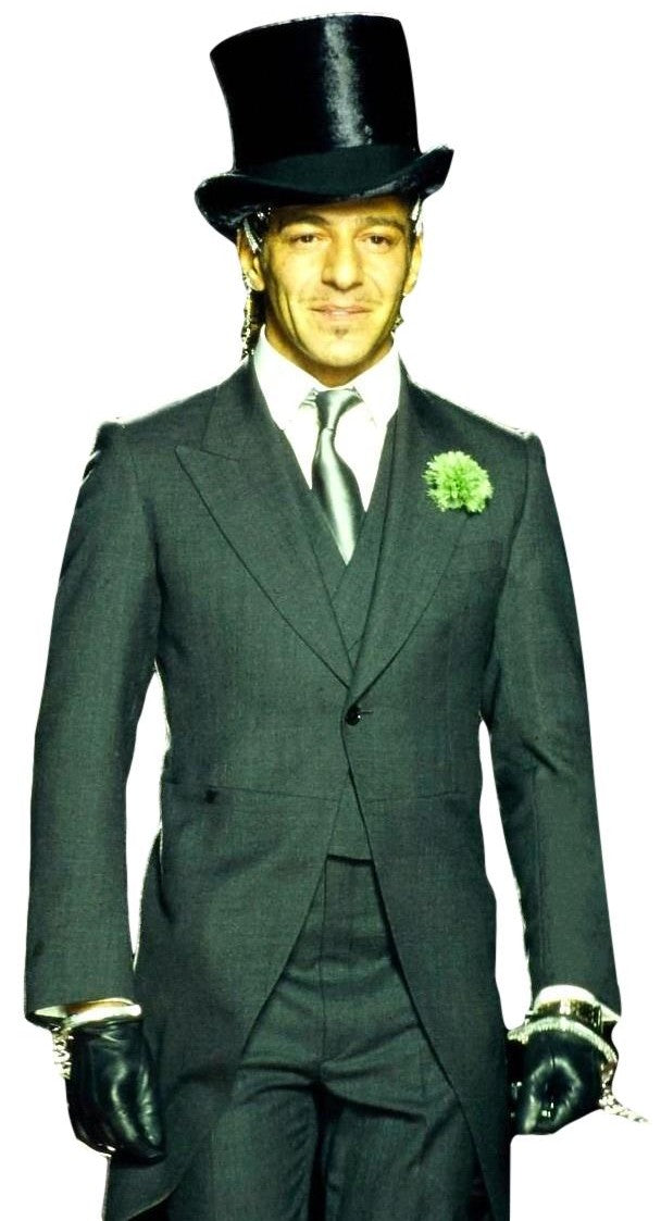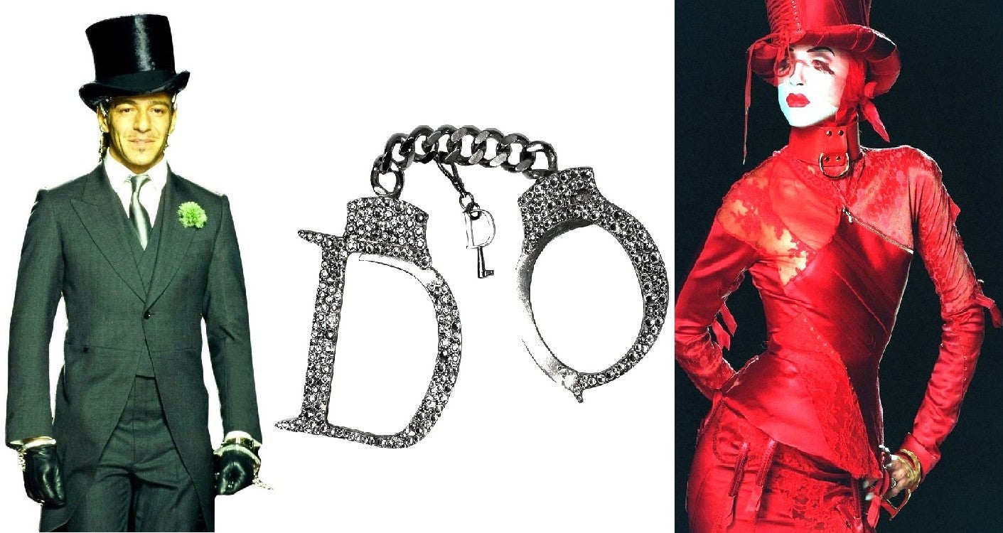 DESIGNER: F/W 2000 Christian Dior by John Galliano Haute Couture Runway- these were shown on a newlywed couple walking down the runway with the gentleman handcuffed behind his back, worn by a model shown in the photos then worn by John Galliano himself walking down the runway at the end of the show! EXTREMELY rare piece of haute couture fashion history!!!