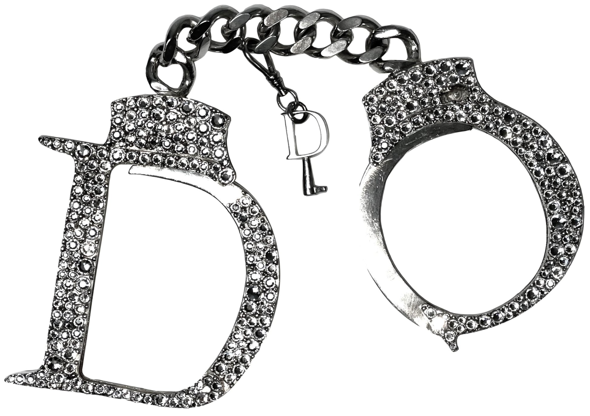 *EXTREMELY RARE* ARCHIVAL F/W 2000 Christian Dior by John Galliano Haute Couture Runway Silver Crystal Bondage Handcuffs Bracelet