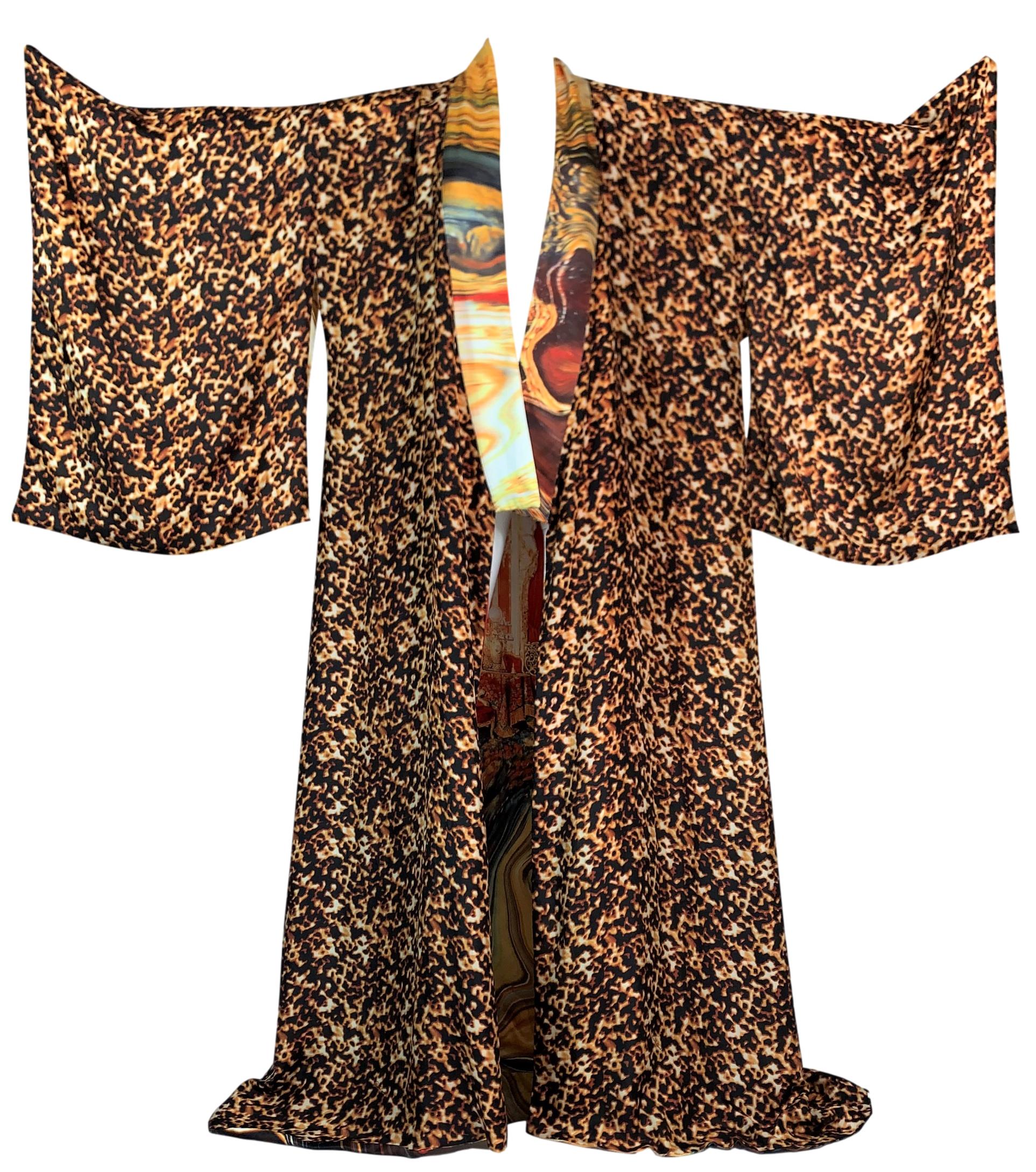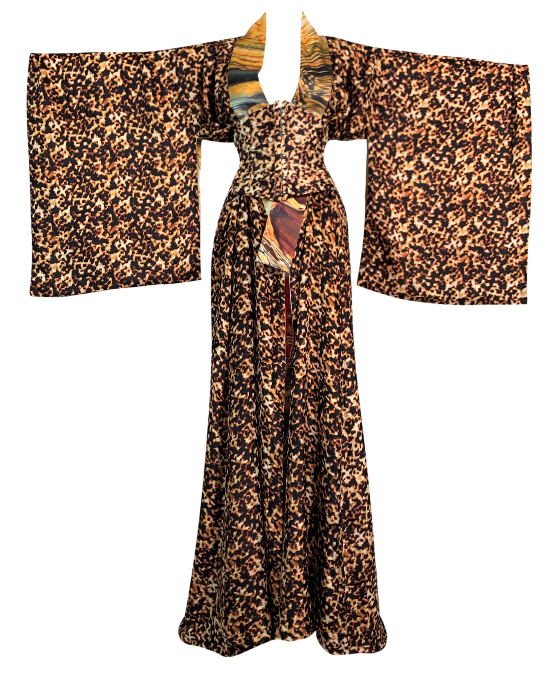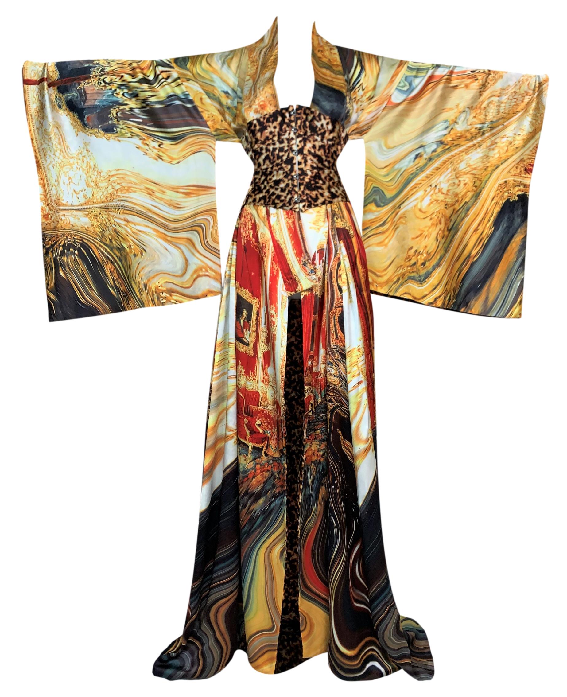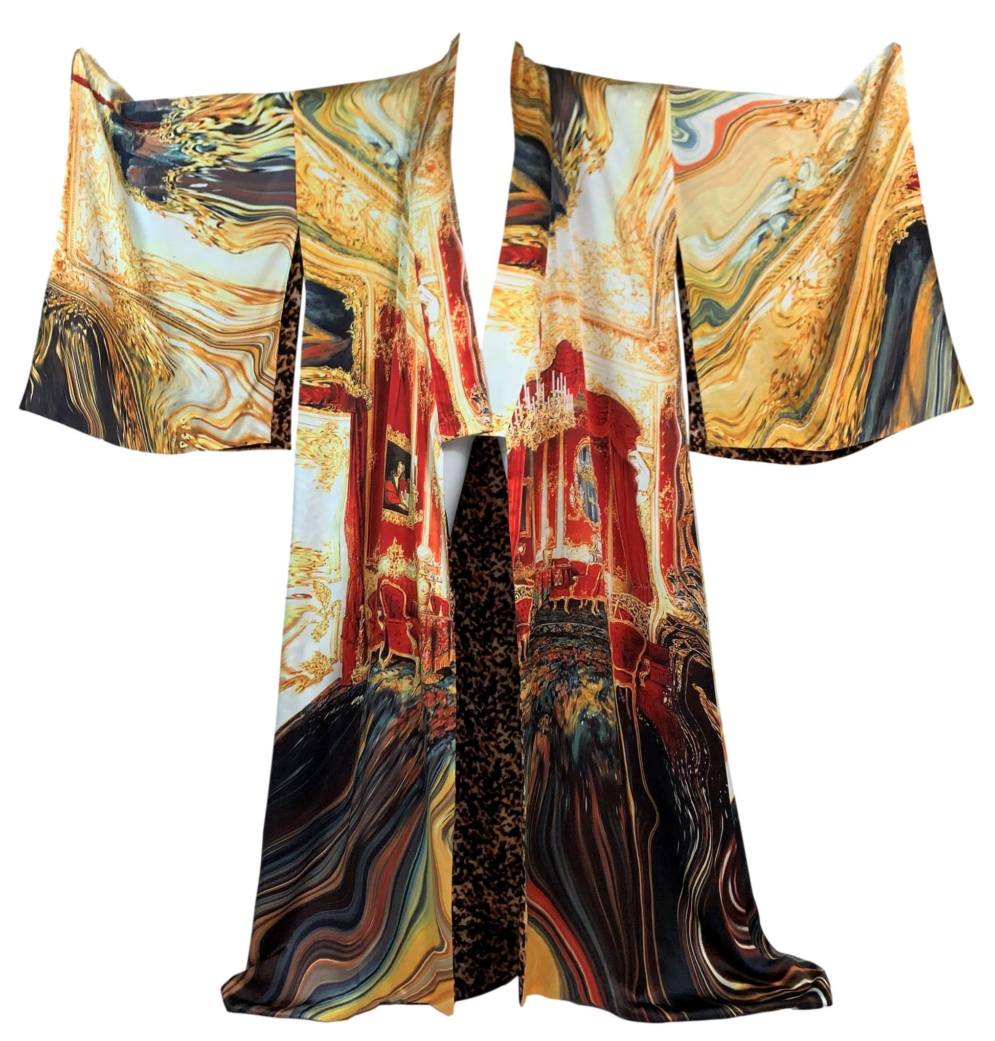 EXTREMELY RARE S/S 2003 Roberto Cavalli Extra Long Silk Reversible Kimono Dress Gown w Corset