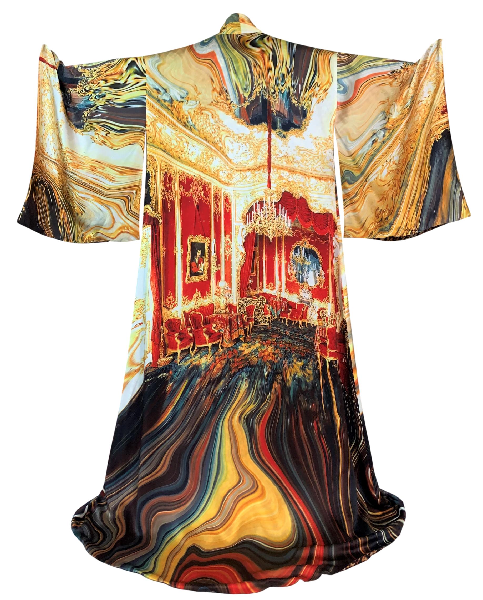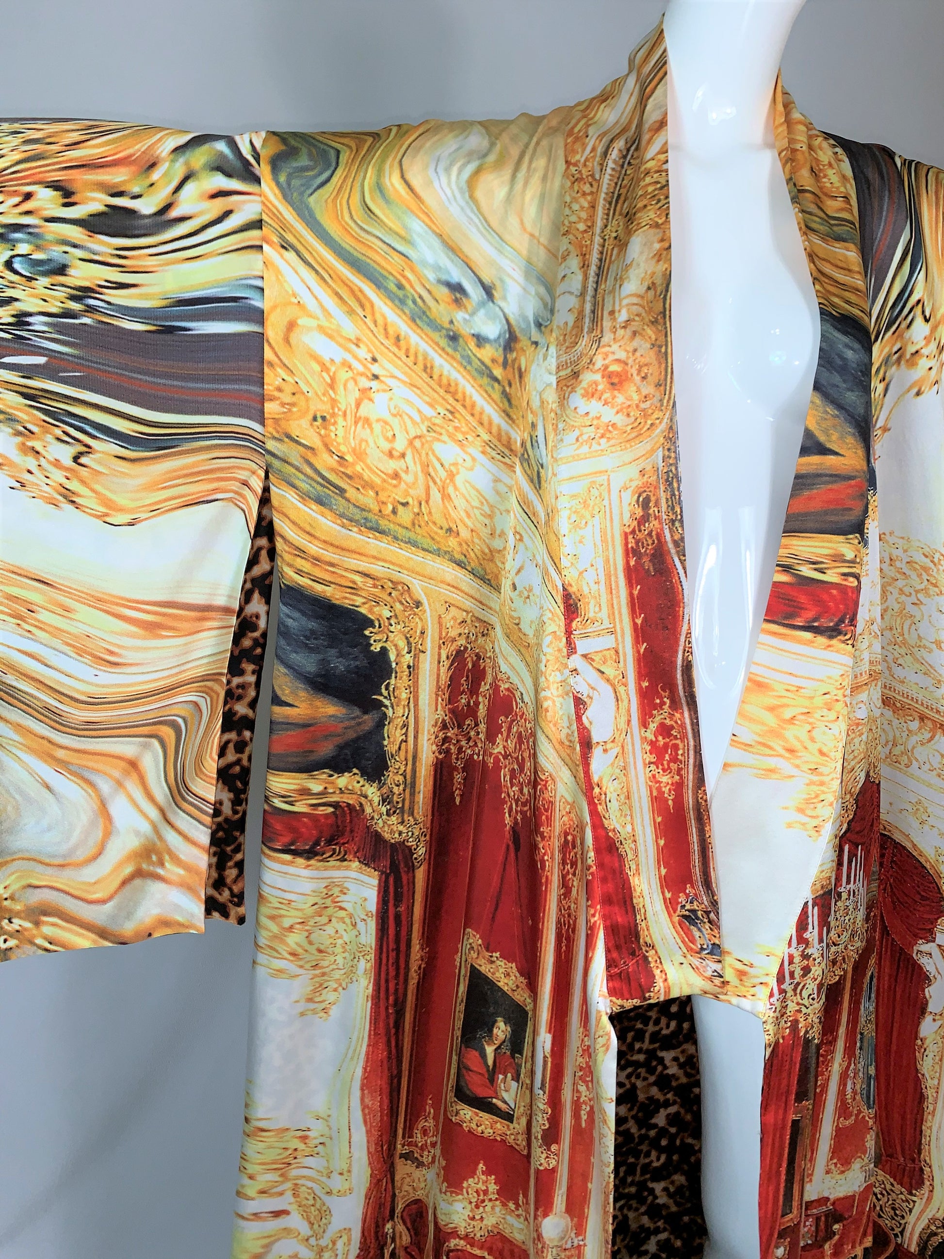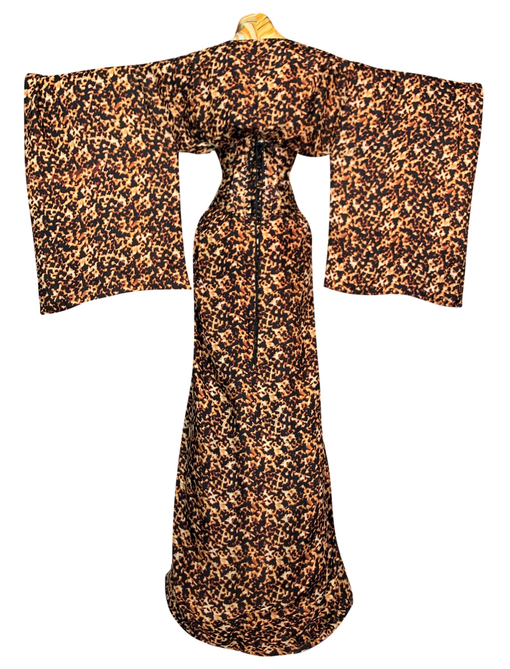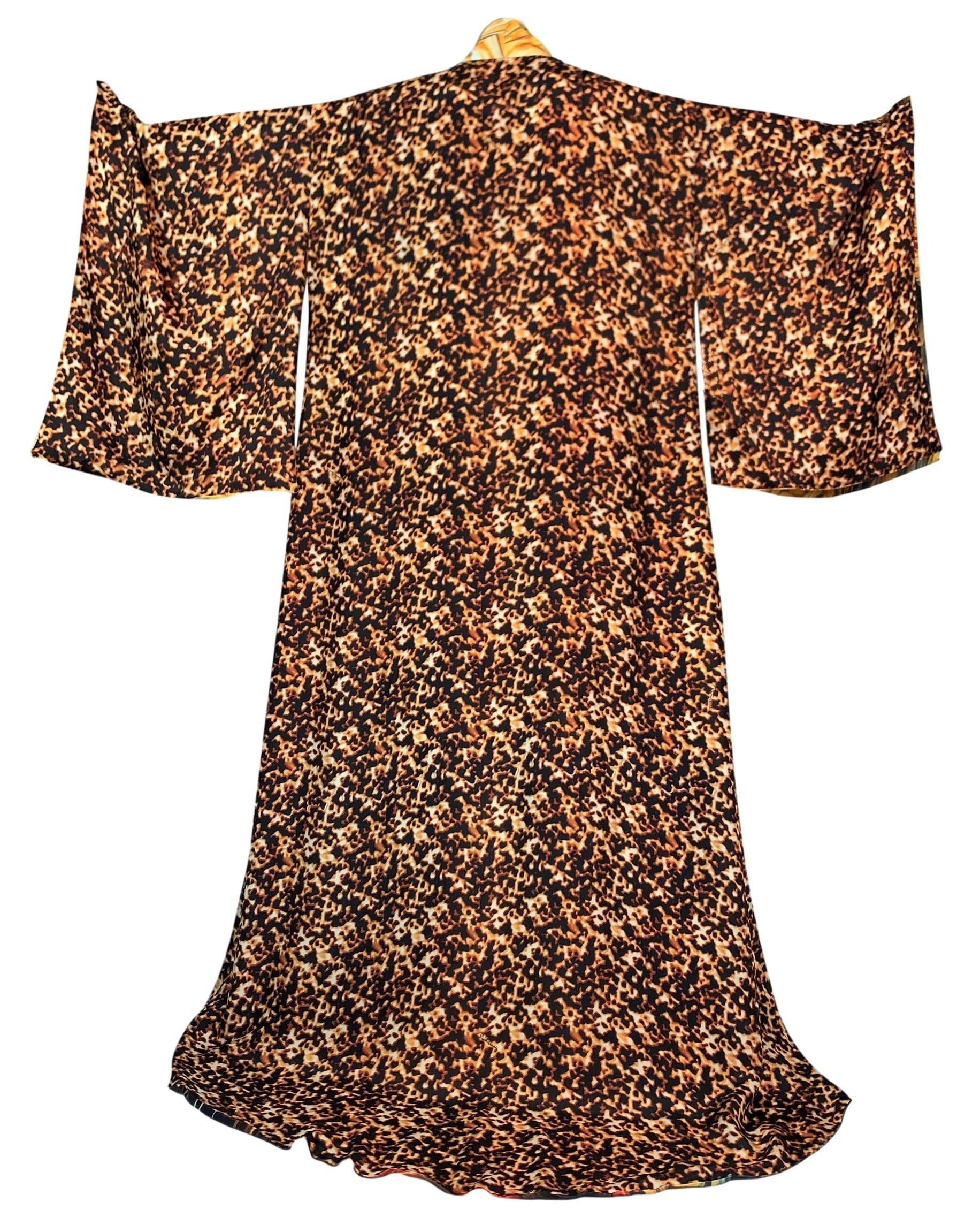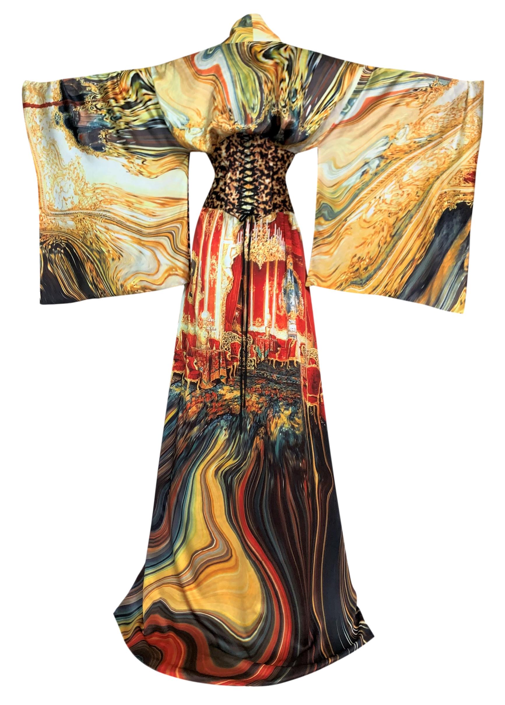 EXTREMELY RARE S/S 2003 Roberto Cavalli Extra Long Silk Reversible Kimono Dress Gown w Corset