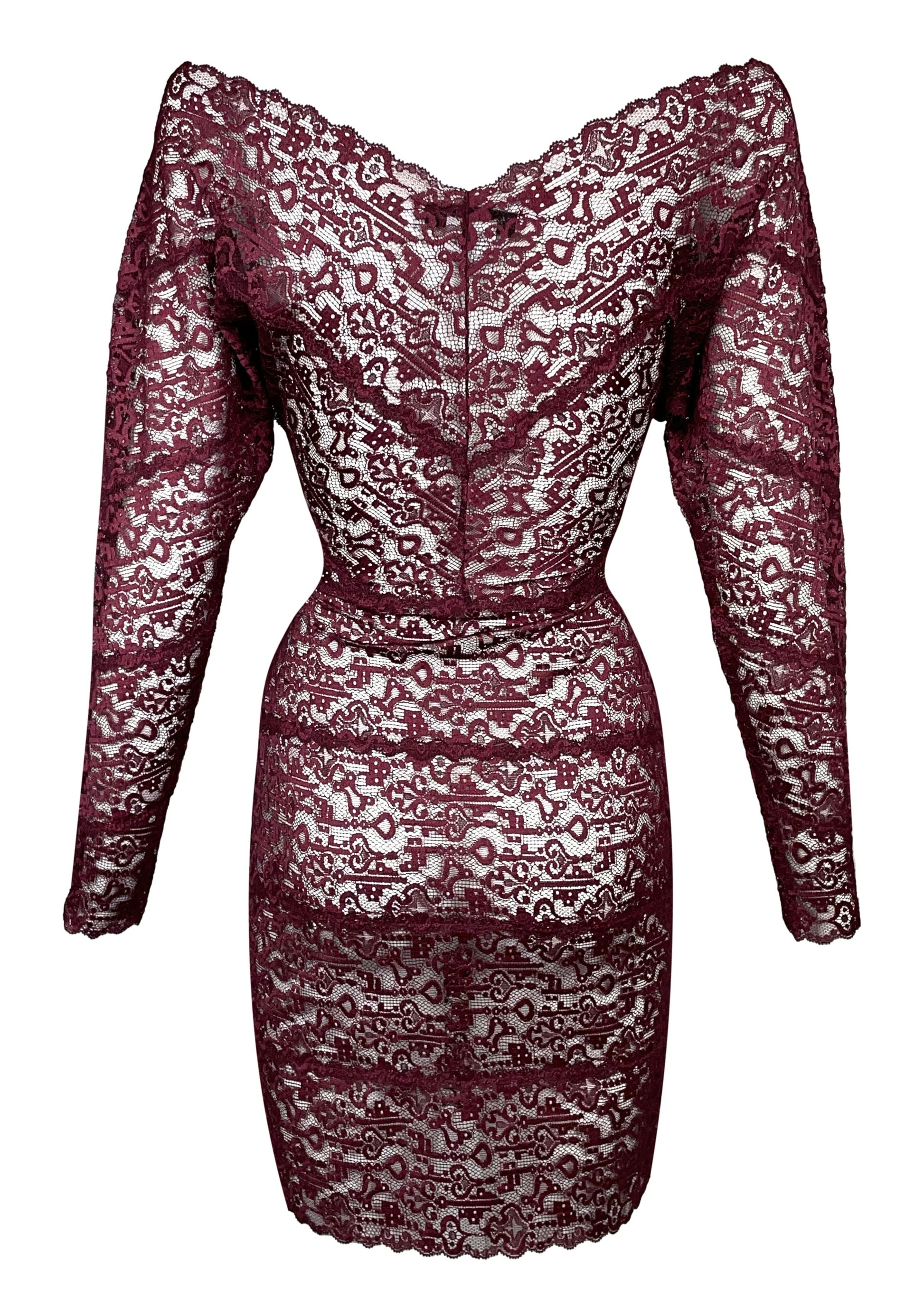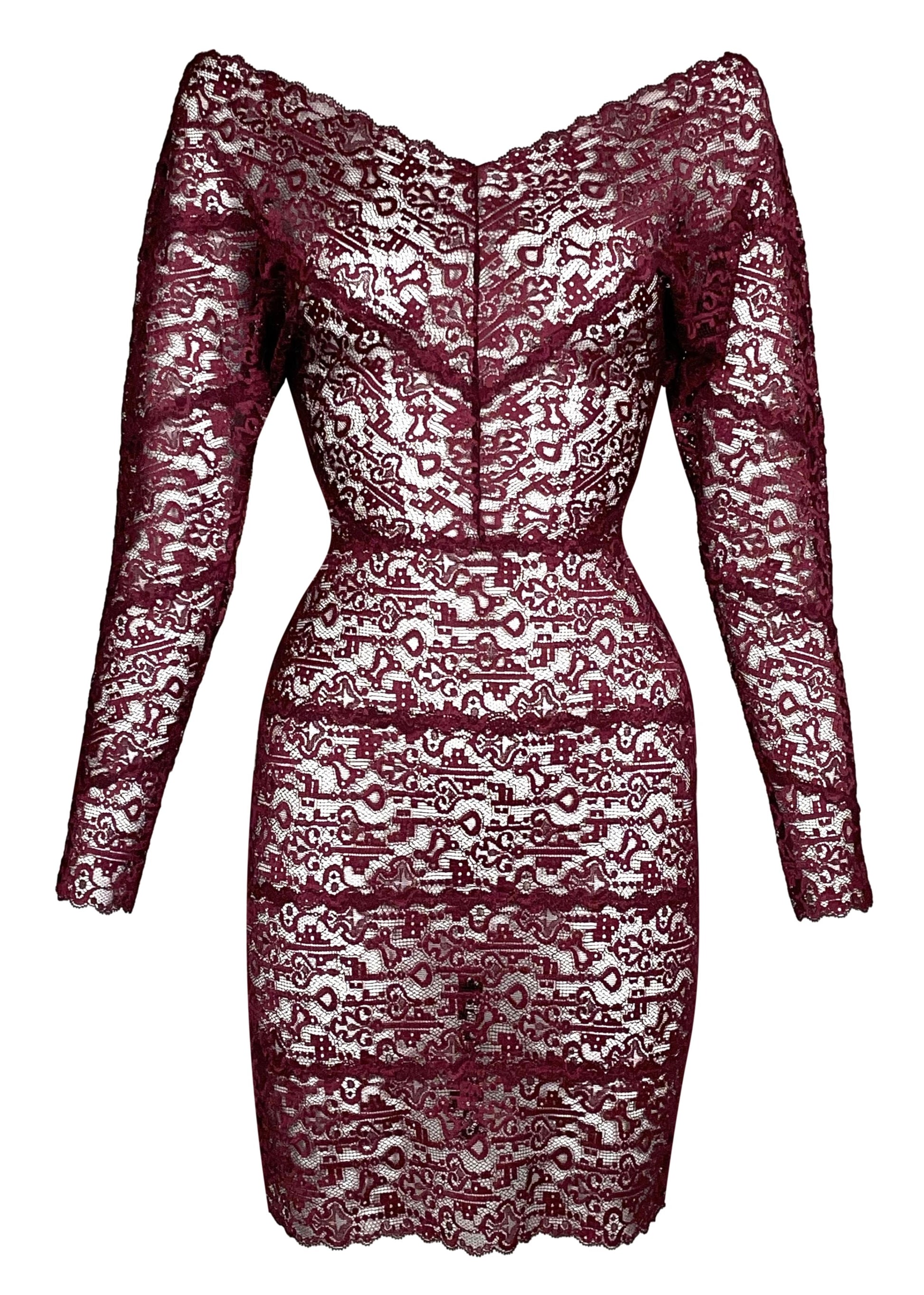 F/W 1995 Chantal Thomass Runway Sheer Blood Red Lace Pin-Up Wiggle Dress