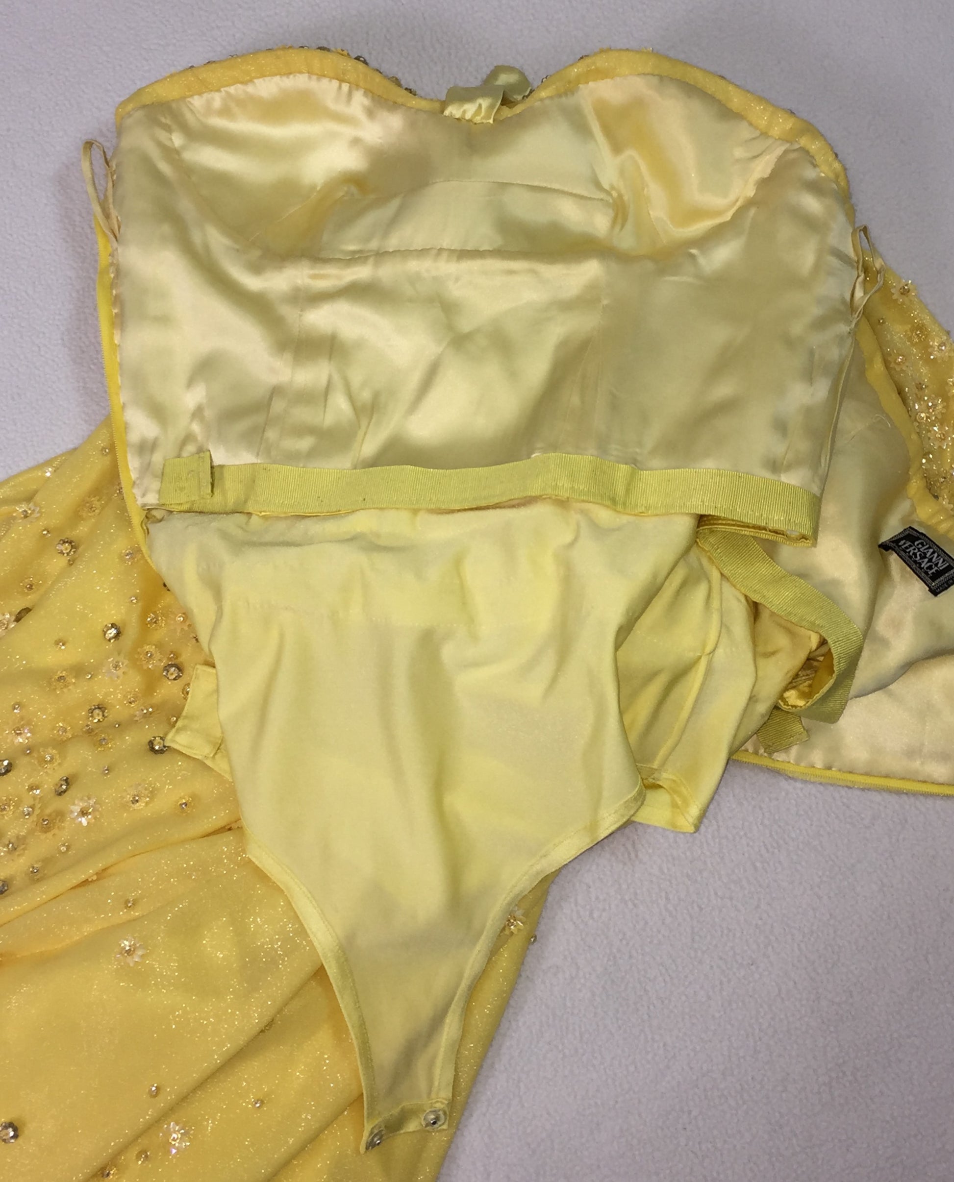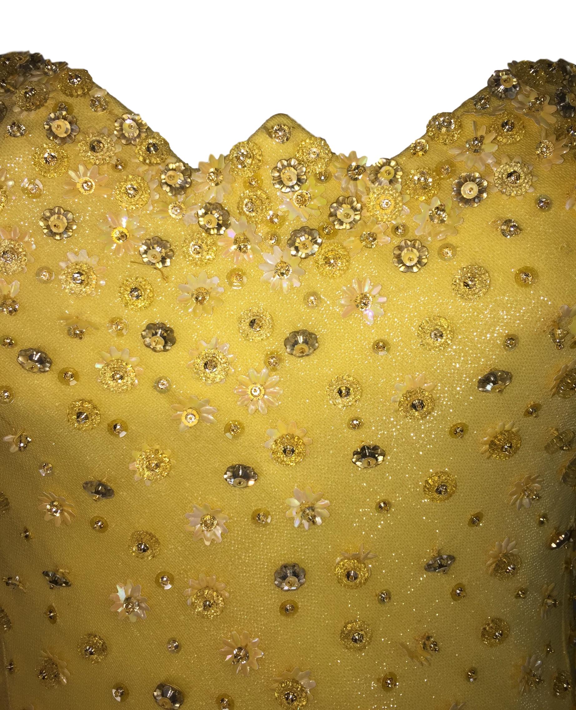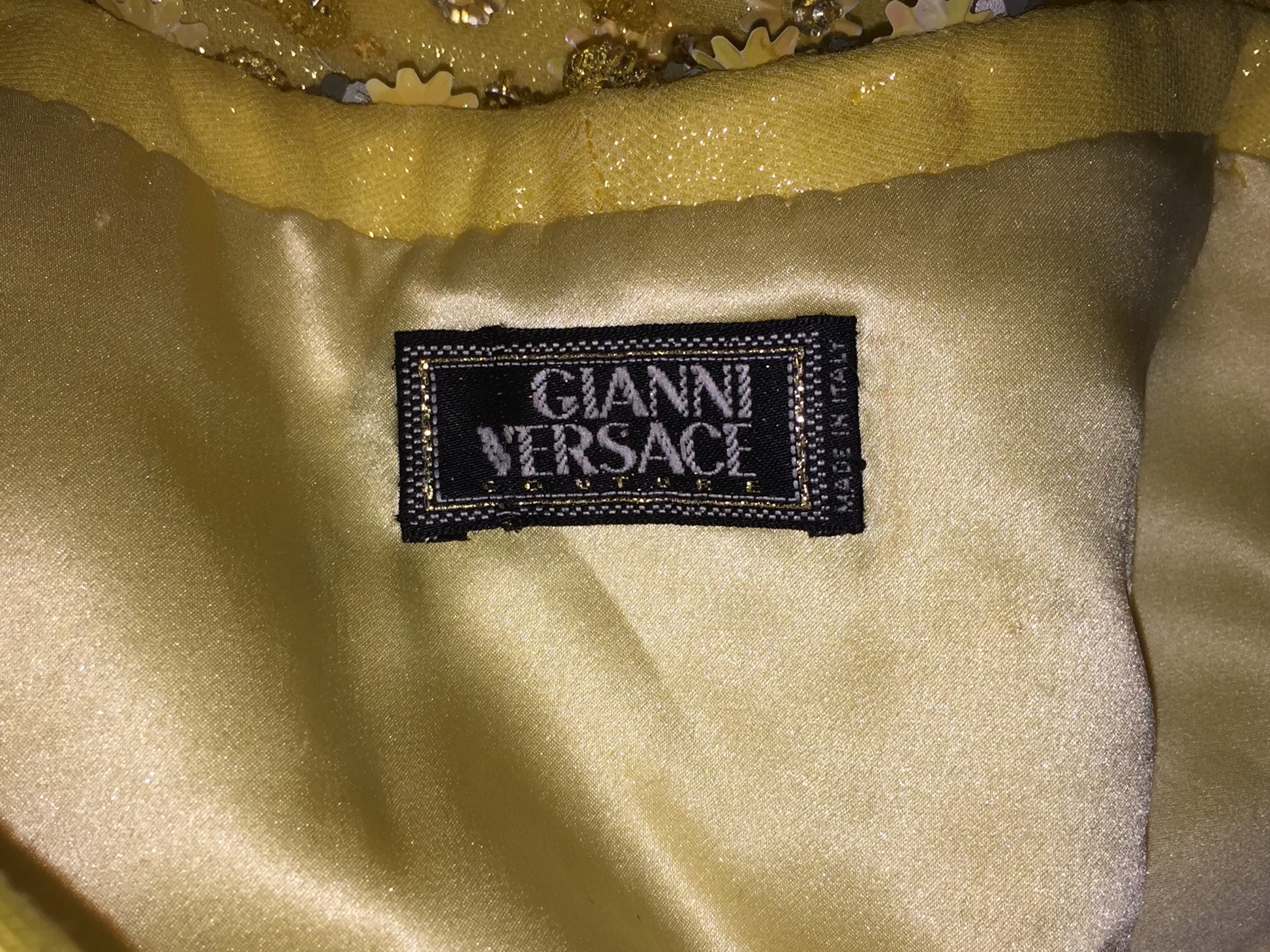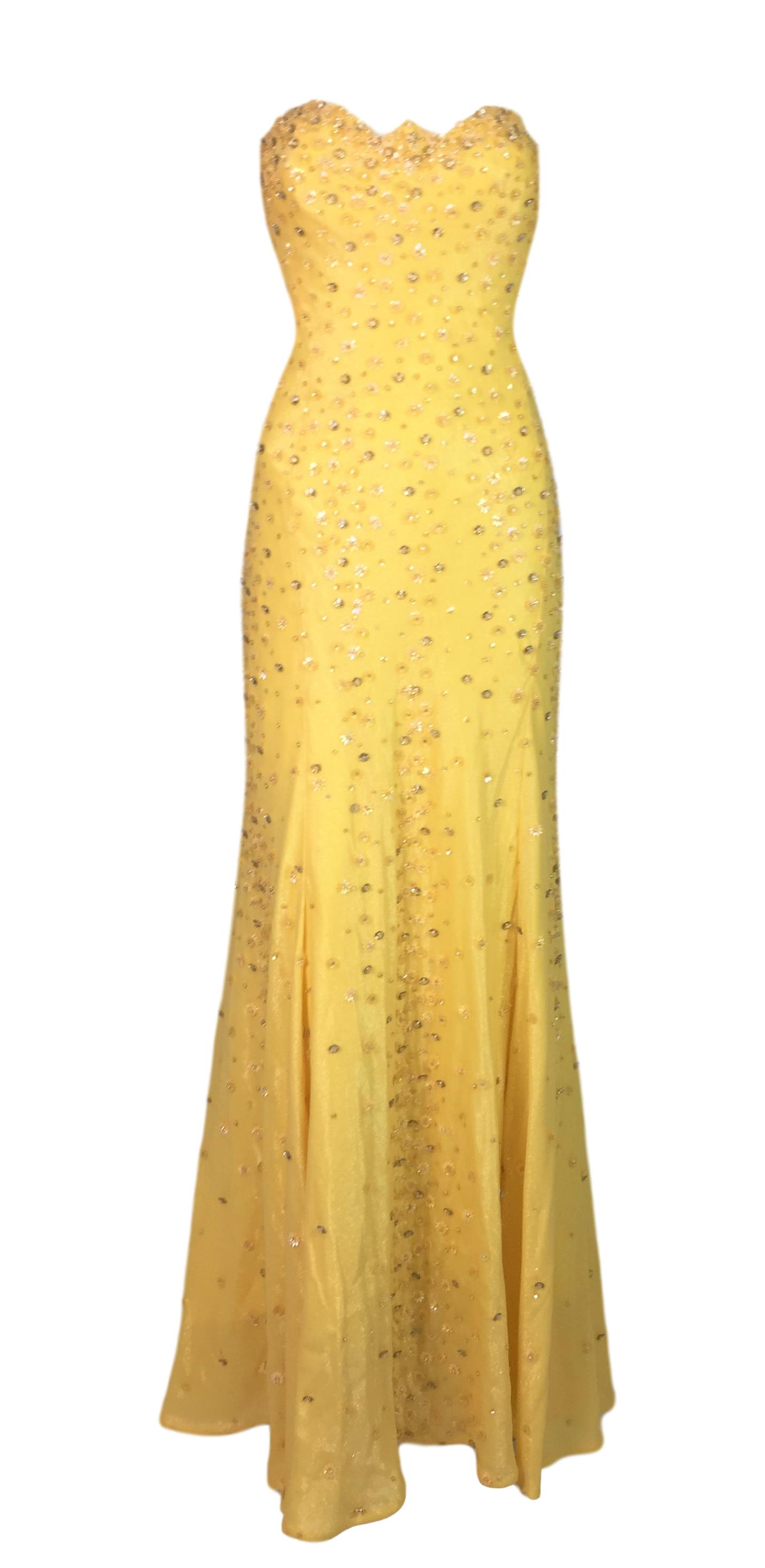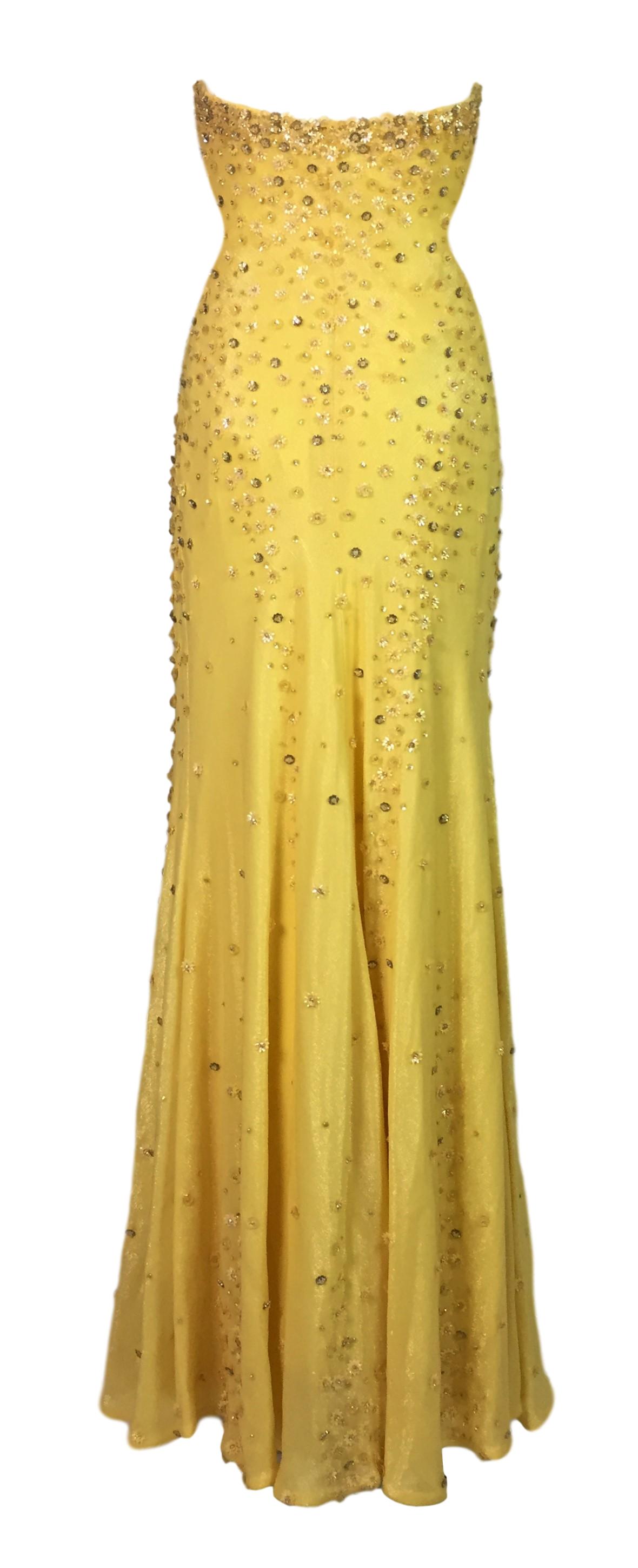 F/W 1995 Documented Gianni Versace Runway Yellow Beaded Strapless Embellished Mermaid Gown Dress