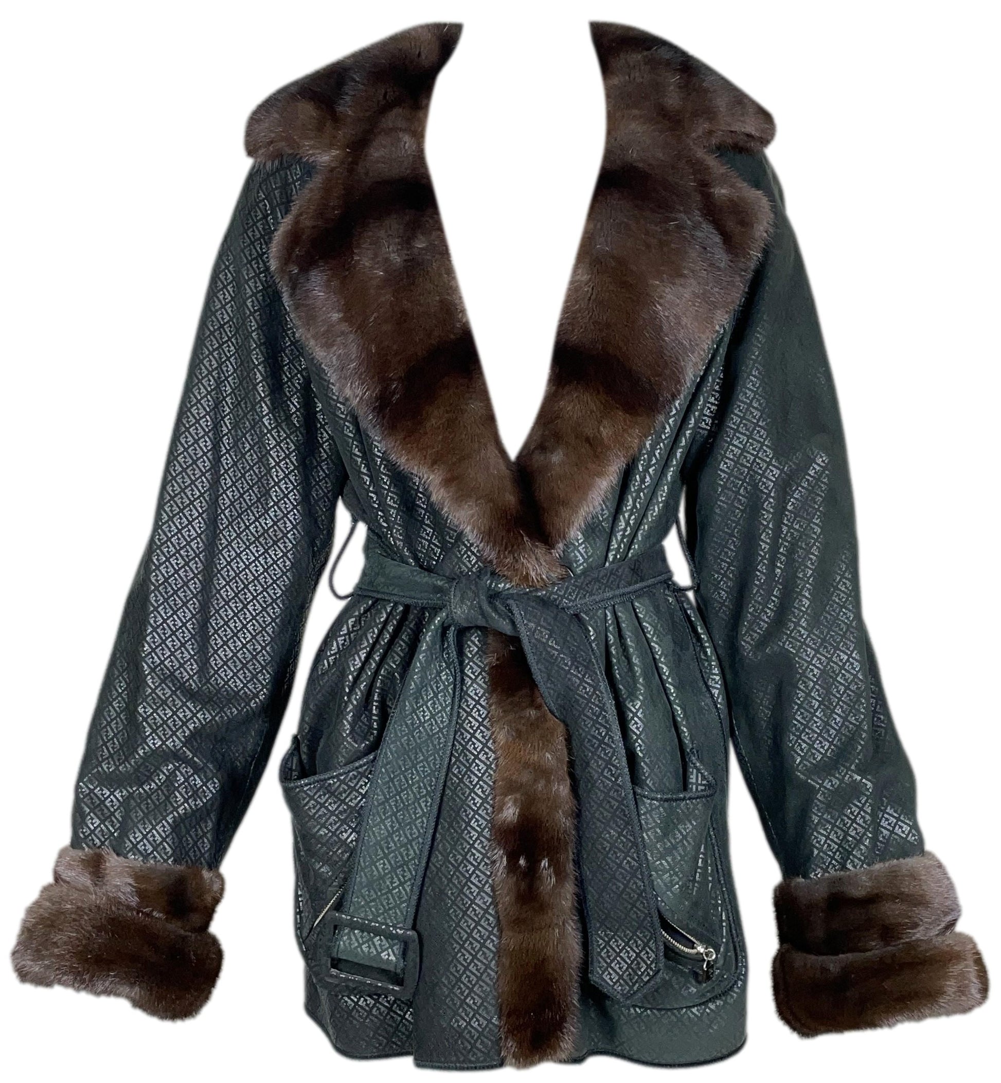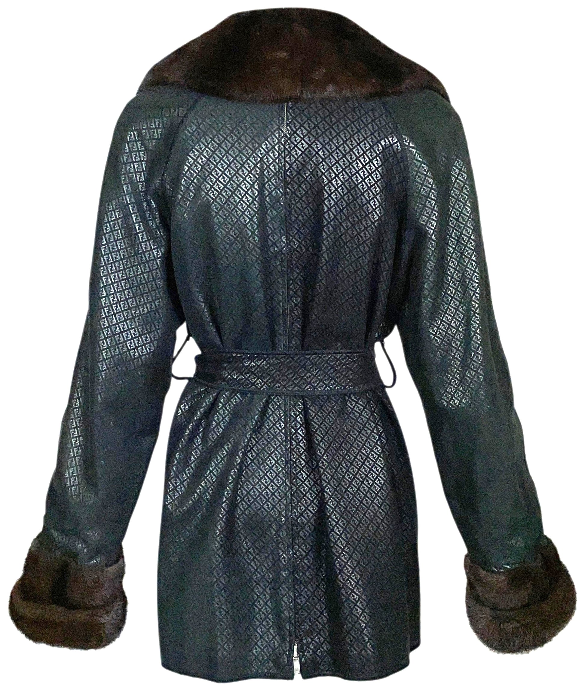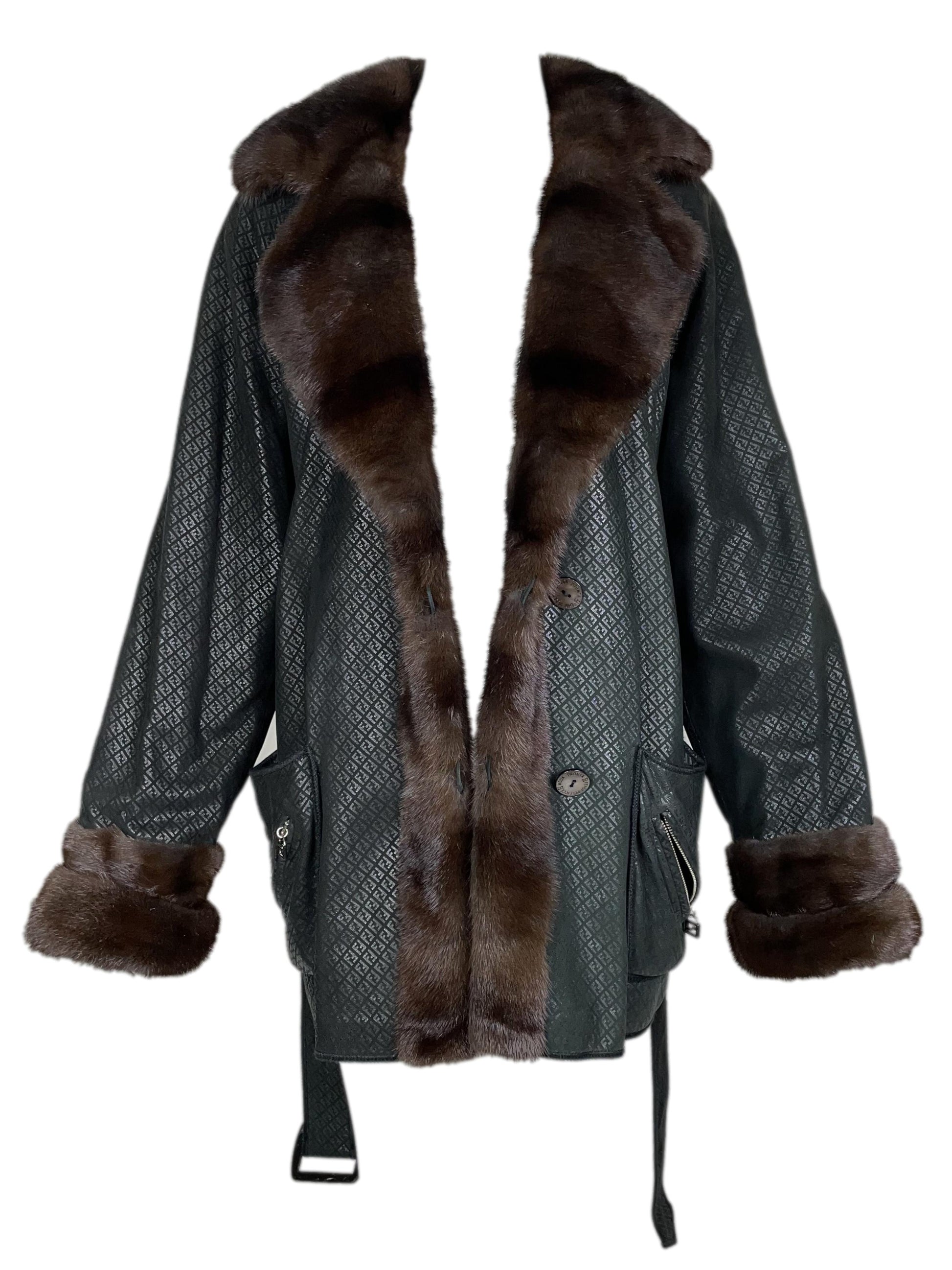 F/W 1995 Fendi by Karl Lagerfeld Reversible Black Leather Logo & Mink Fur Jacket