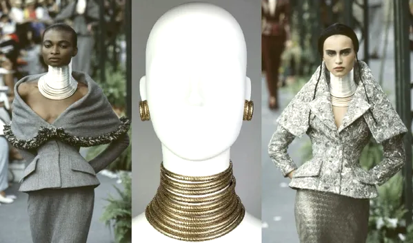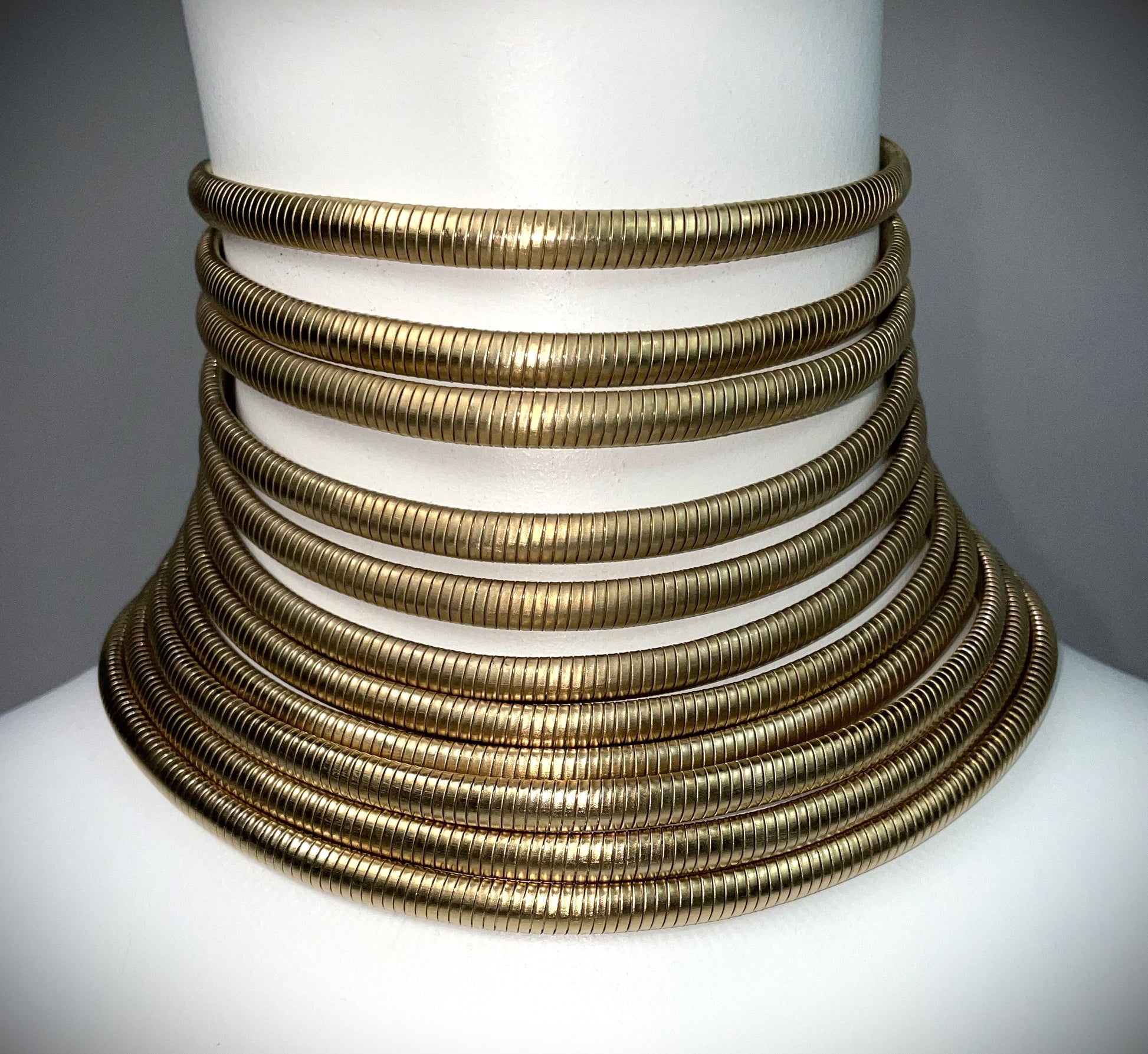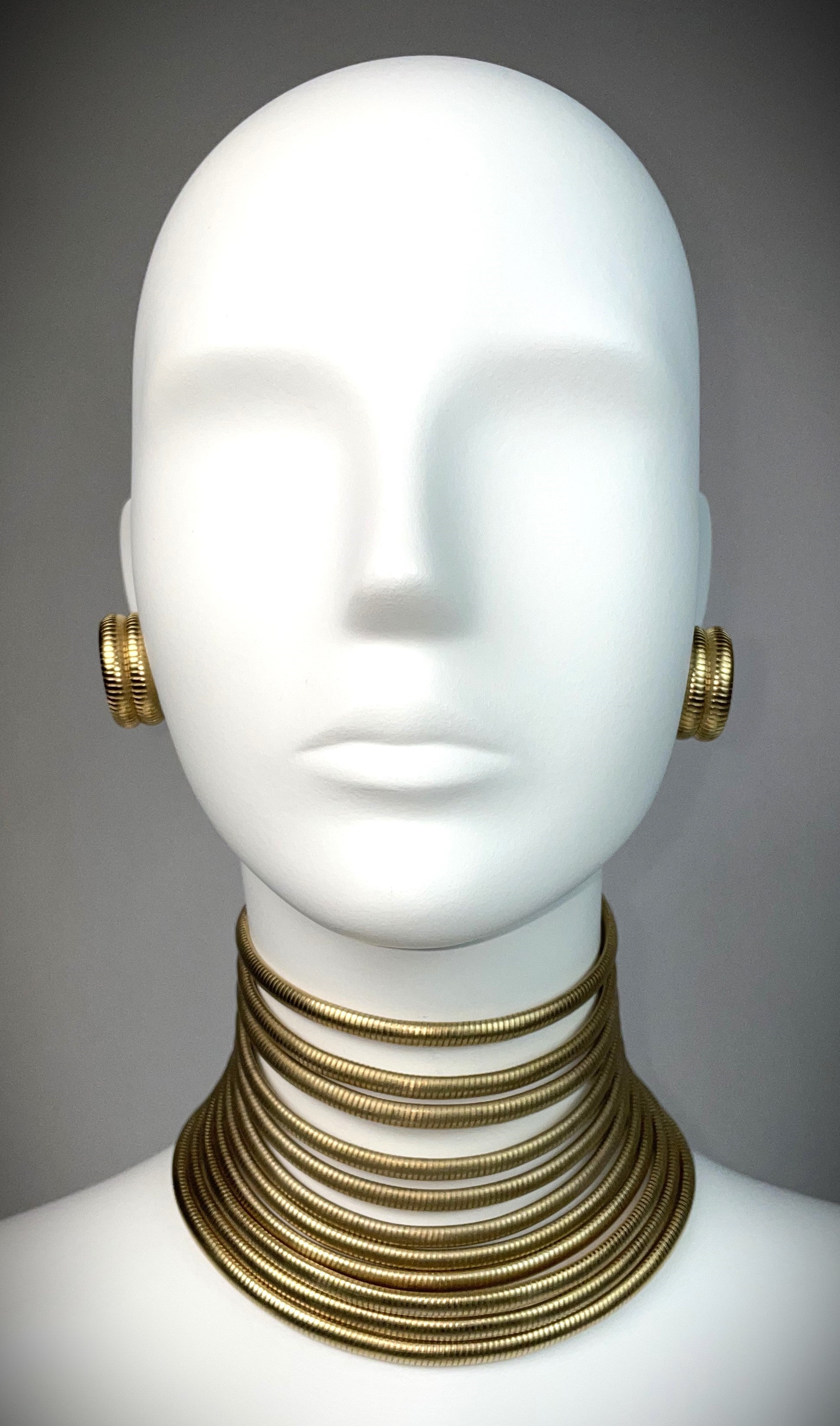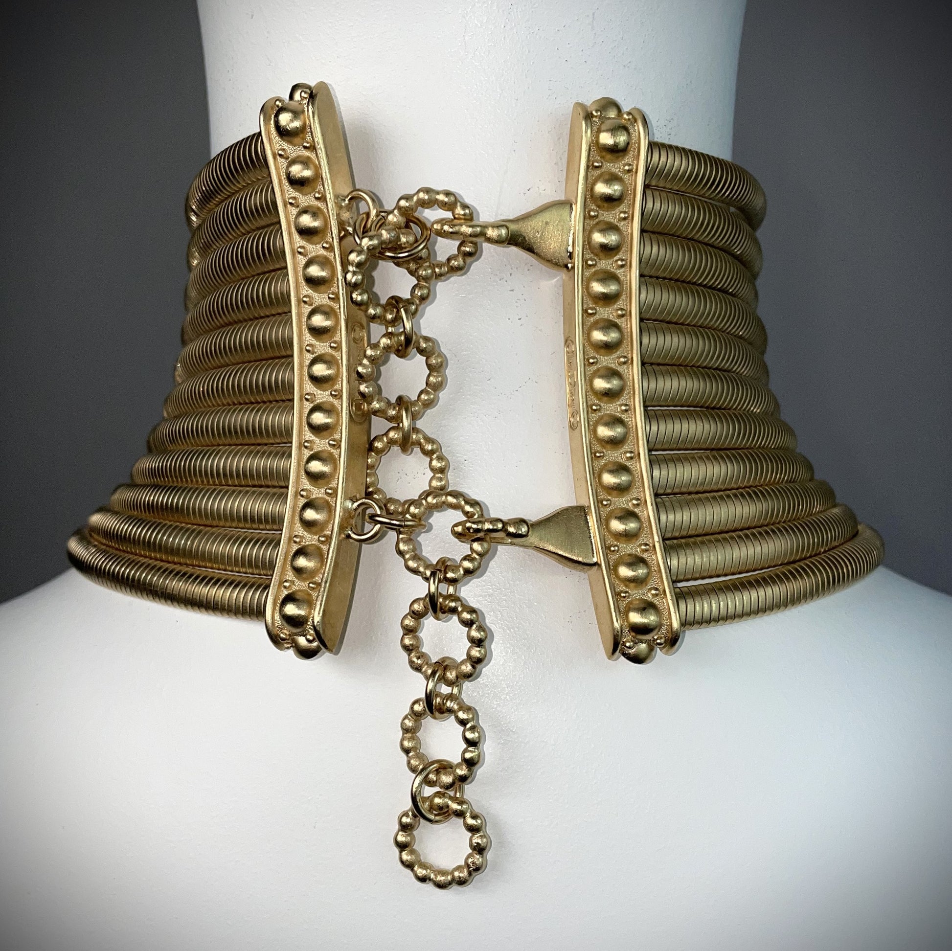 F/W 1997 Christian Dior by John Galliano Museum Gold Extra Wide Masai Choker Necklace Earrings & Bracelet