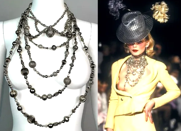 F/W 1997 Christian Dior by John Galliano Runway Large Silver Bib Choker Necklace