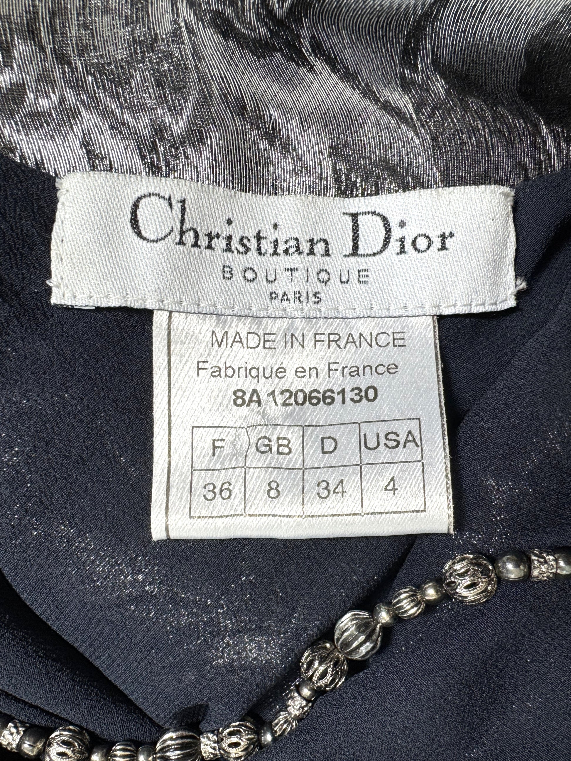 F/W 1998 Christian Dior by John Galliano Silver Lamé Bias Cut Beaded Necklace Straps Mermaid Maxi Dress Gown
