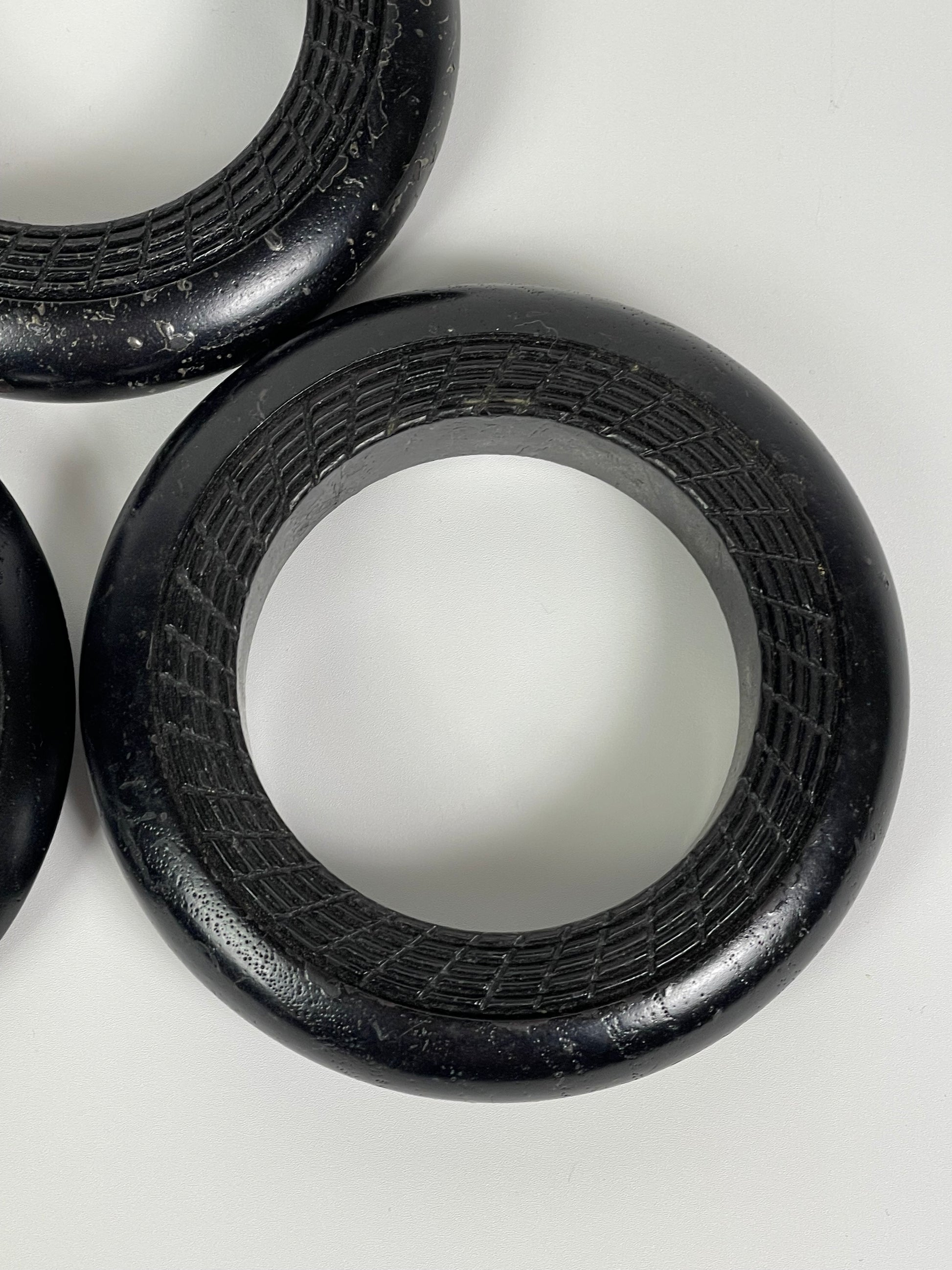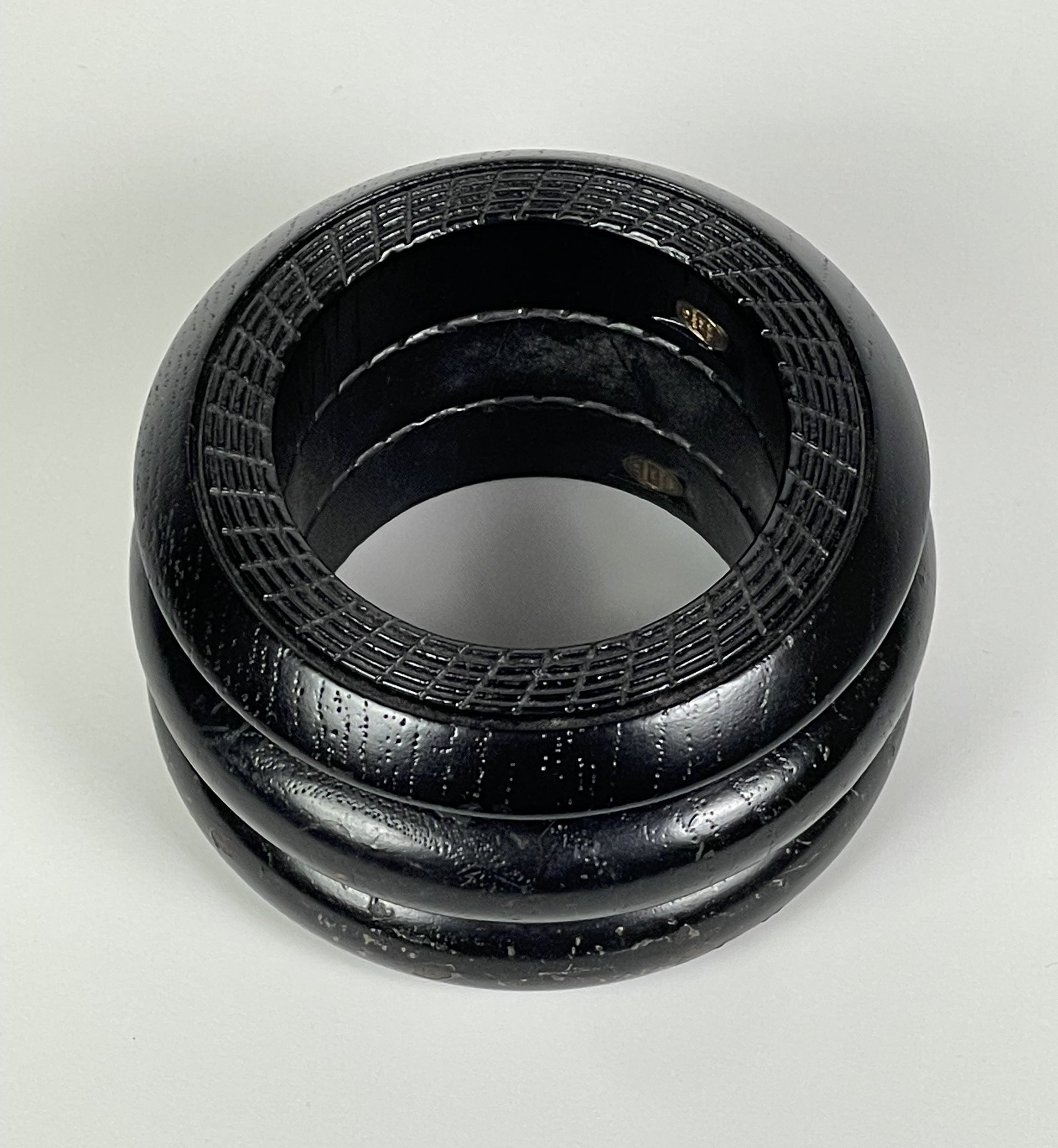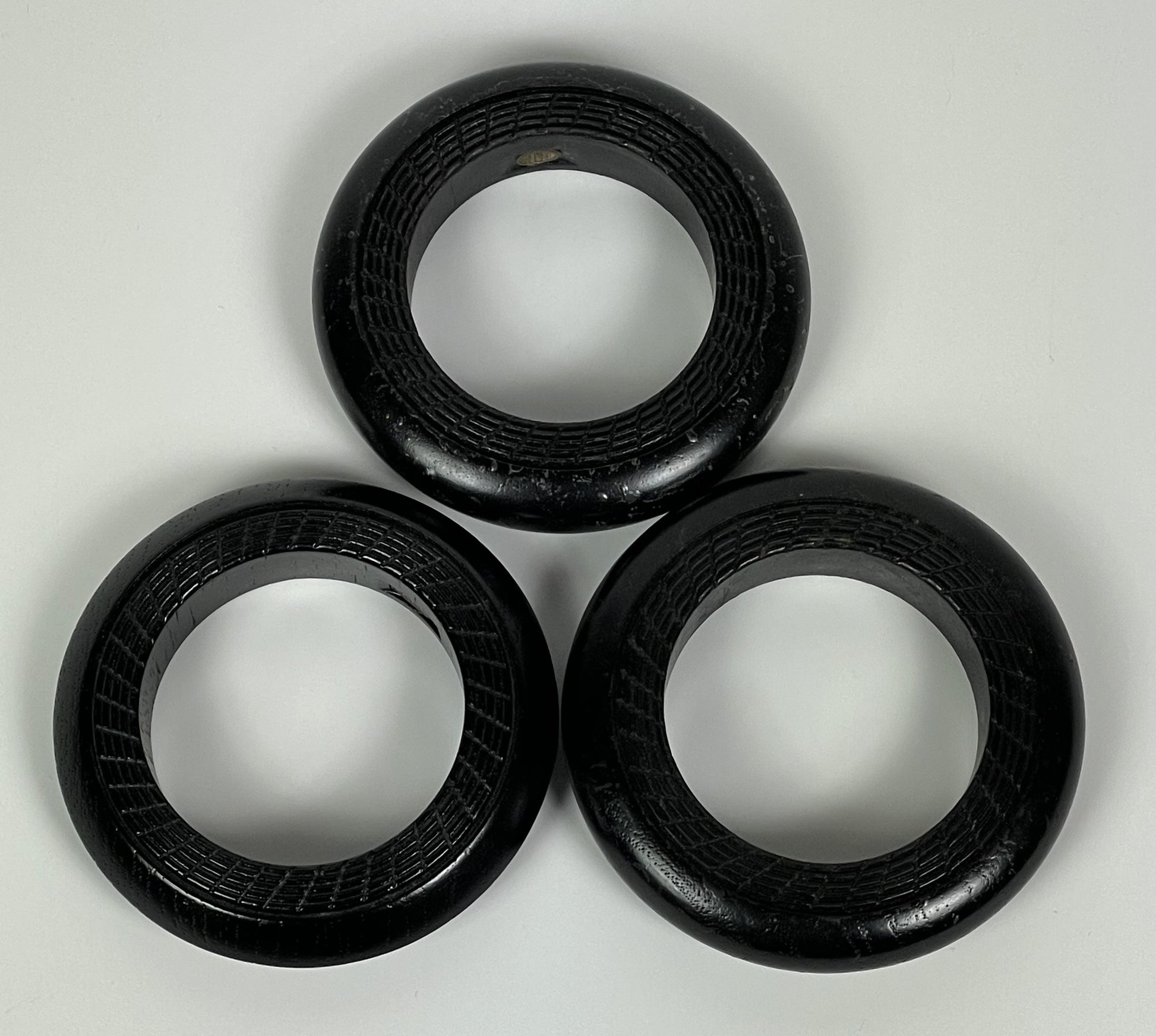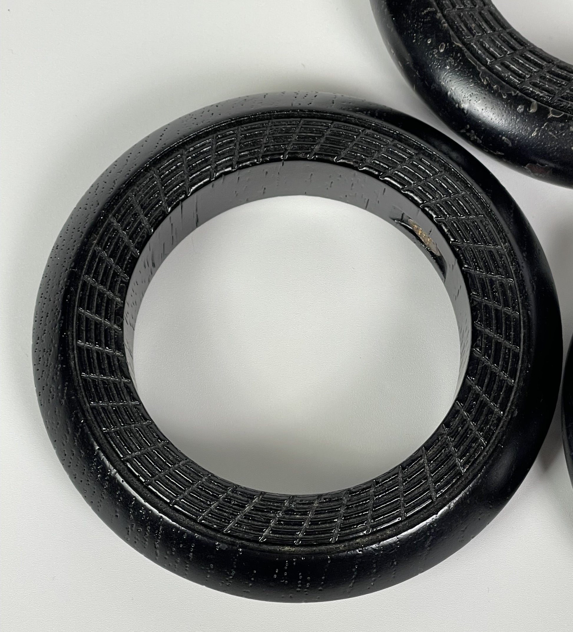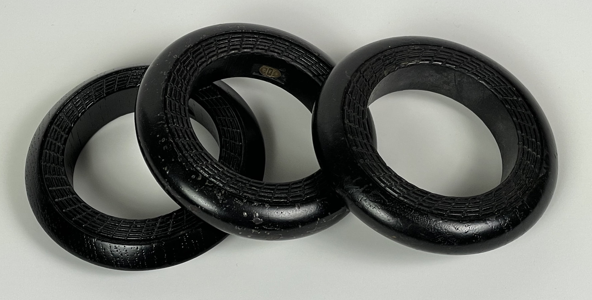 F/W 1999 Christian Dior by John Galliano Runway 3 Brown Wood Tribal Engraved Cuff Bracelets