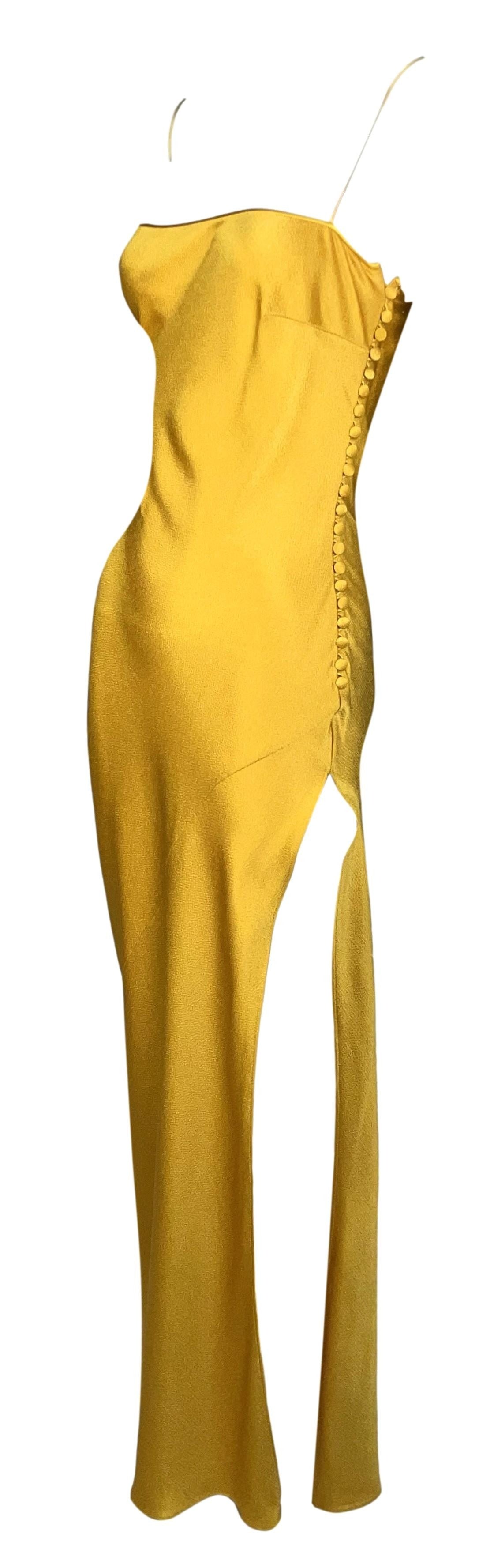 F/W 1999 Christian Dior by John Galliano Runway Gold Marigold Satin Maxi Slip Dress w High Slit