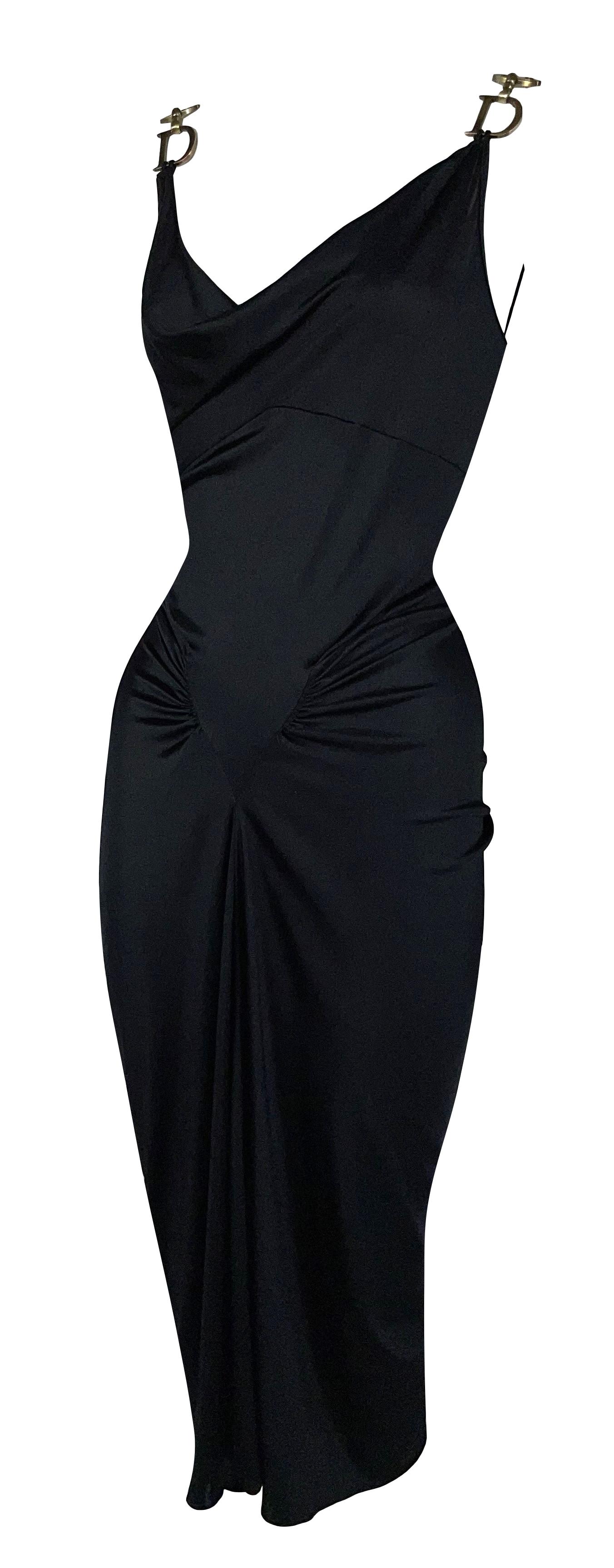 F/W 2000 Christian Dior by John Galliano Black Nylon Bodycon Gold Logo Straps Dress
