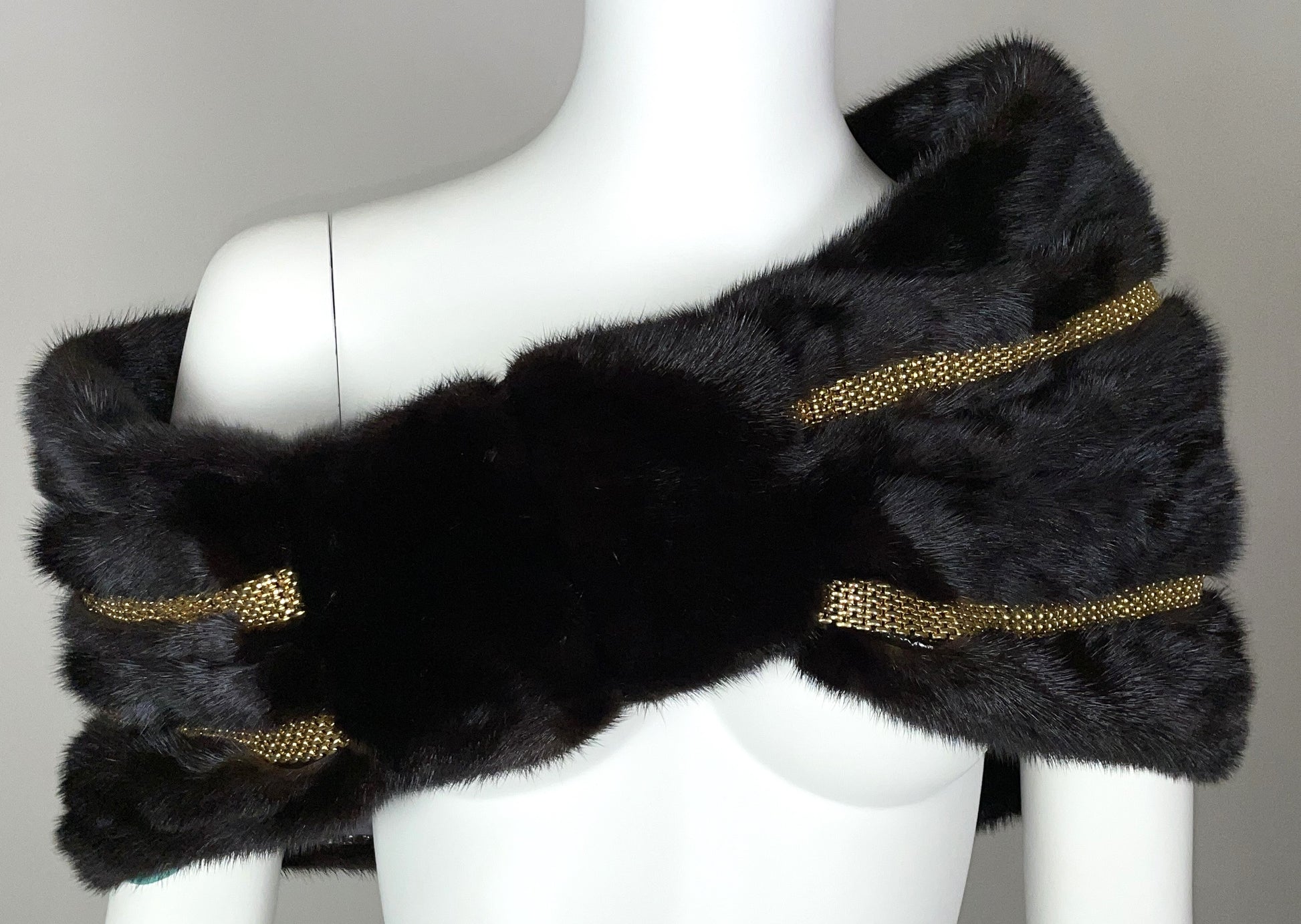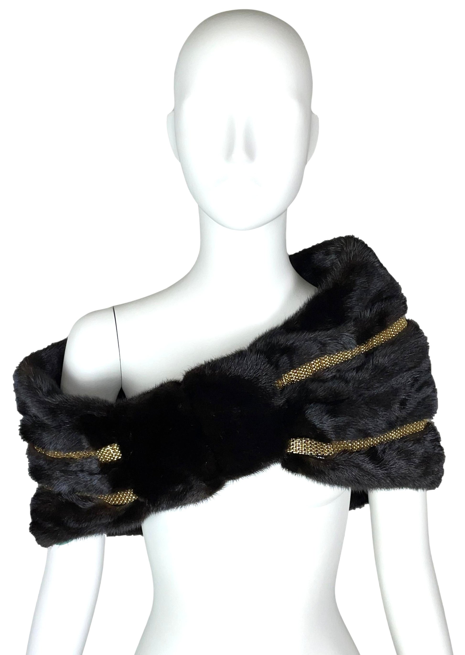 F/W 2000 Fendi Alta Moda Runway Brown Mink Fur & Gold Chainmail Shawl Wrap
