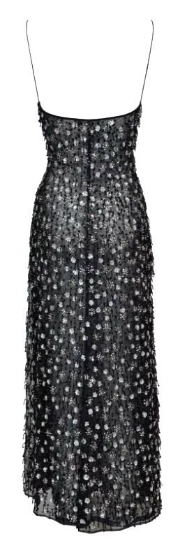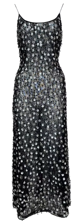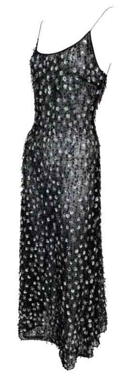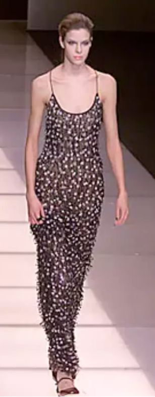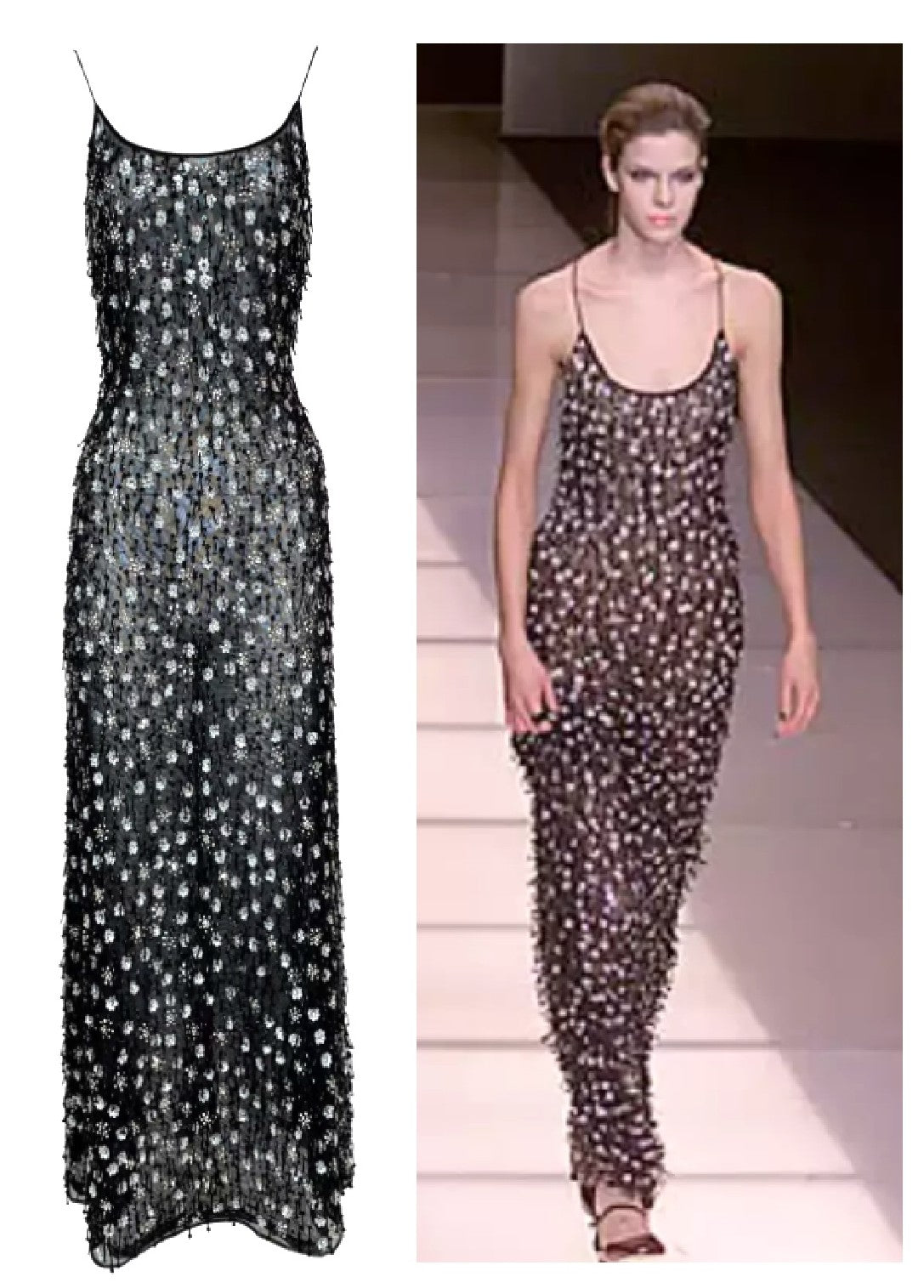 F/W 2000 Giorgio Armani Runway Sheer Black Beaded Embellished Mesh Maxi Dress