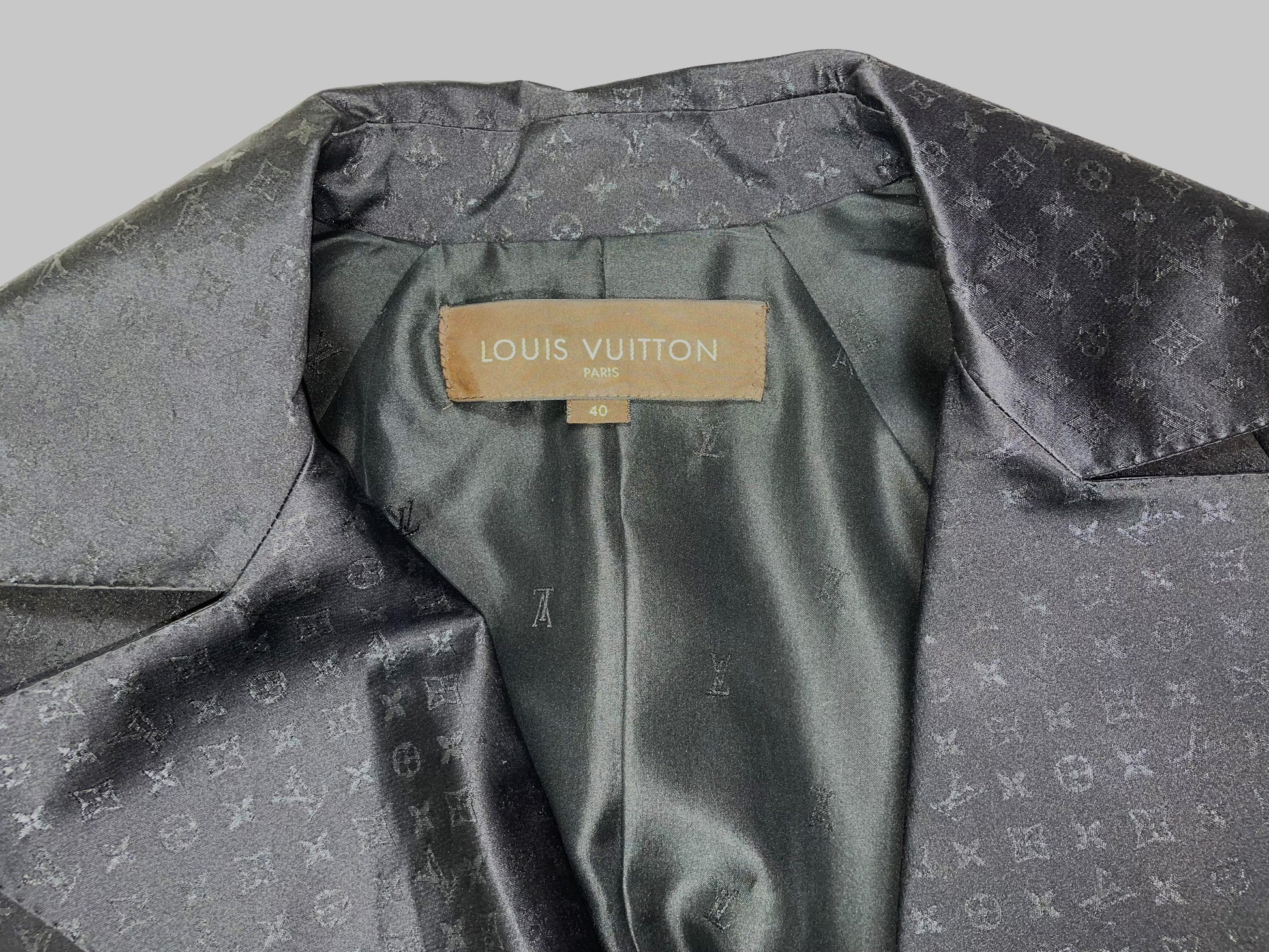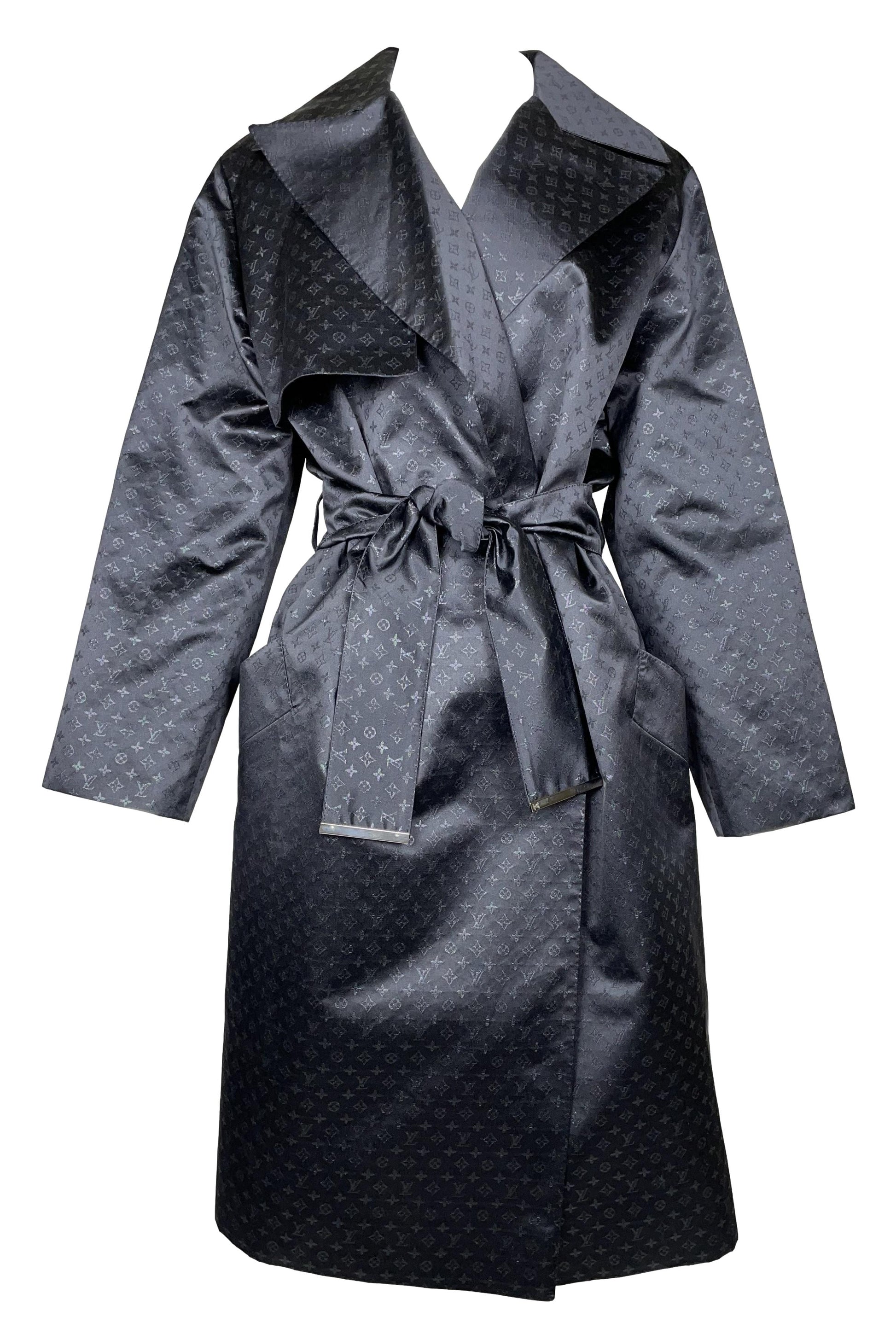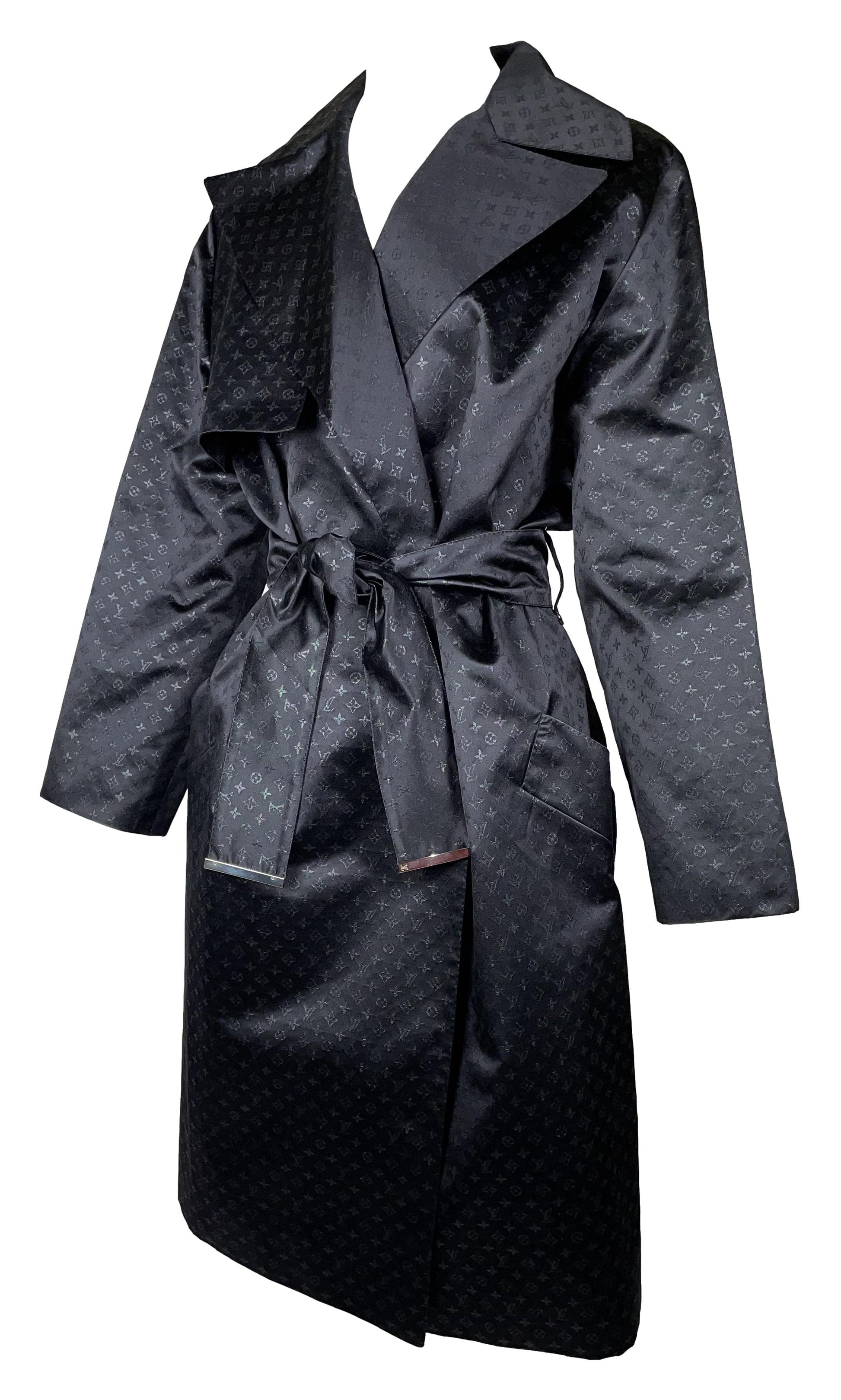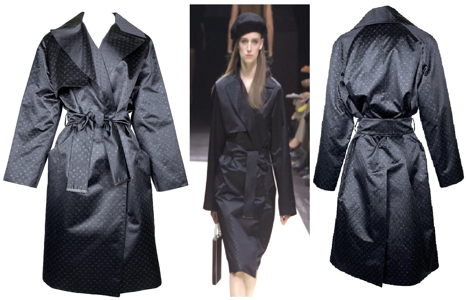 F/W 2000 Louis Vuitton Runway Black Silk Logo Monogram Trench Coat Jacket