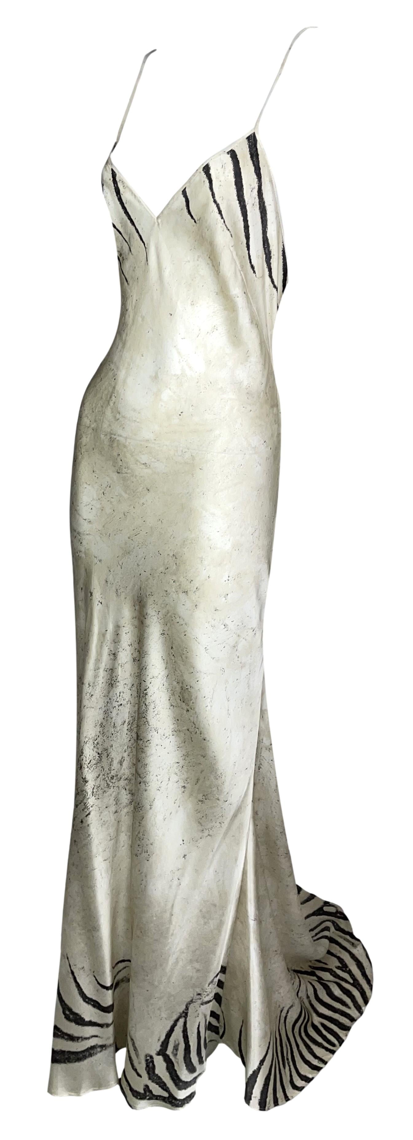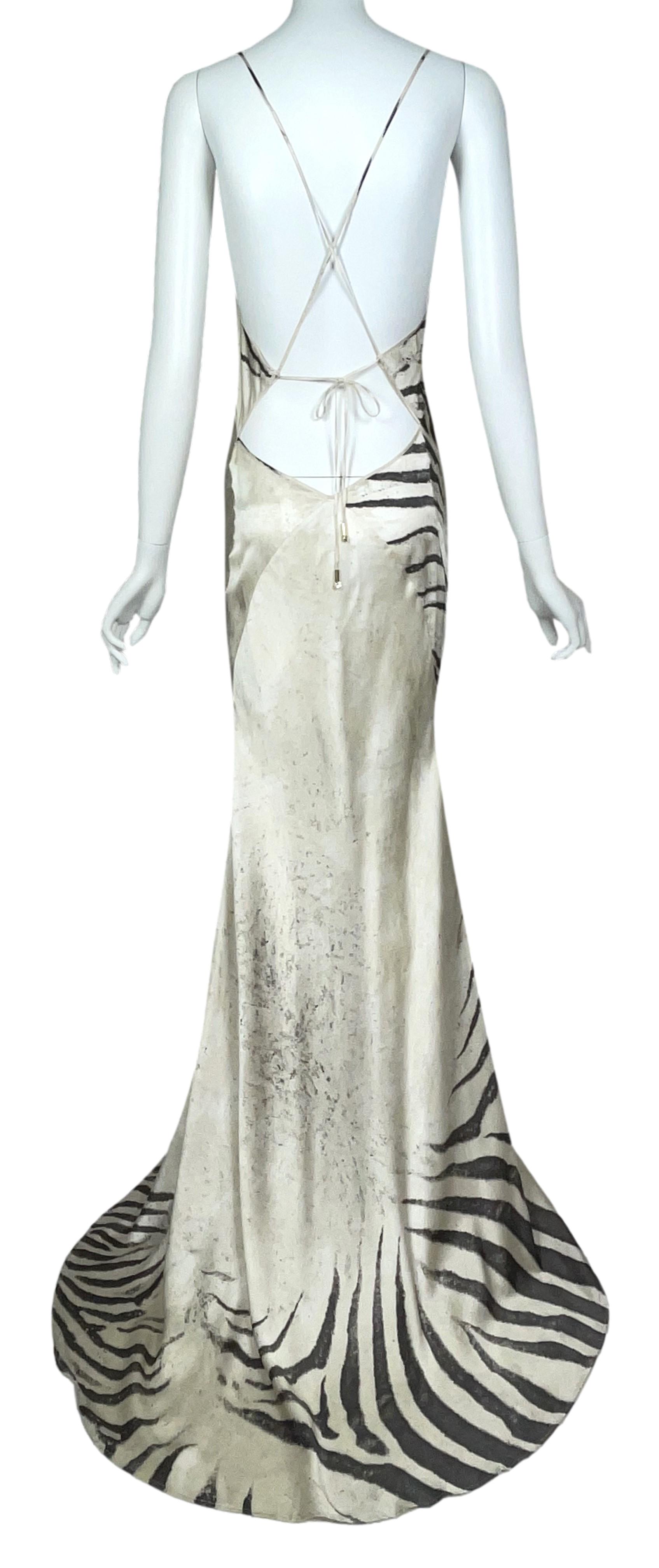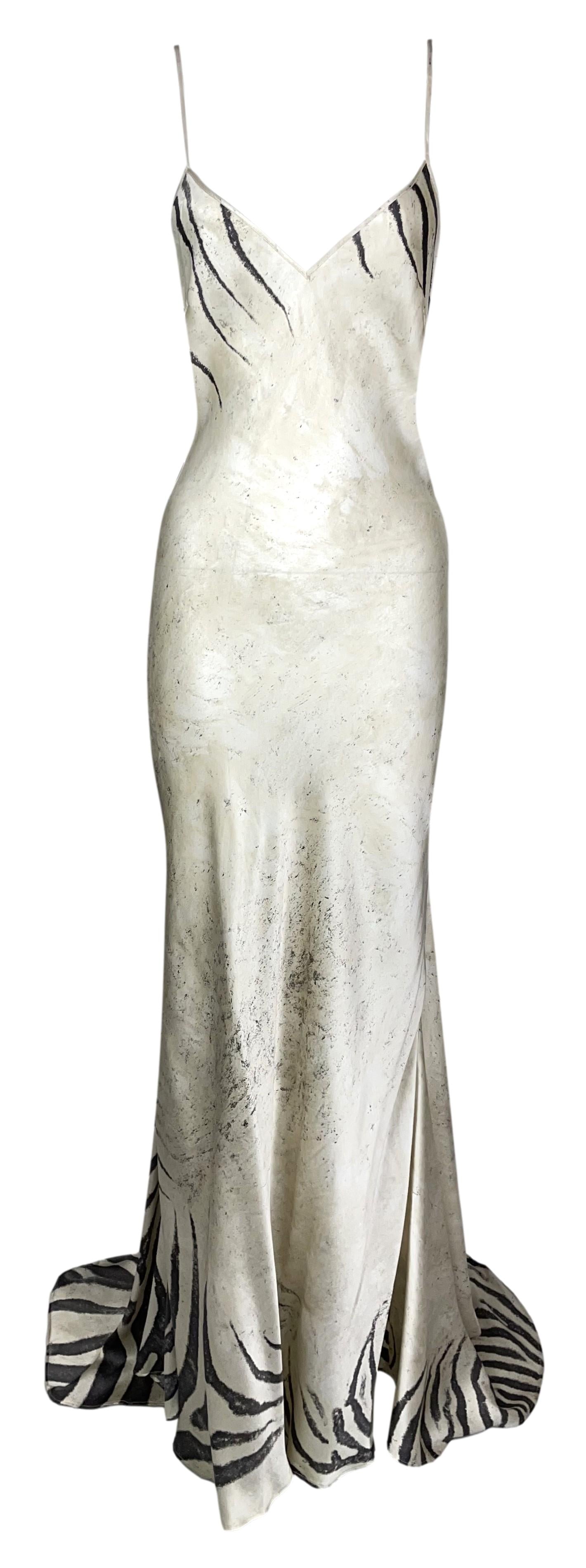 F/W 2000 Roberto Cavalli Ivory Zebra Silk Satin Gown Dress