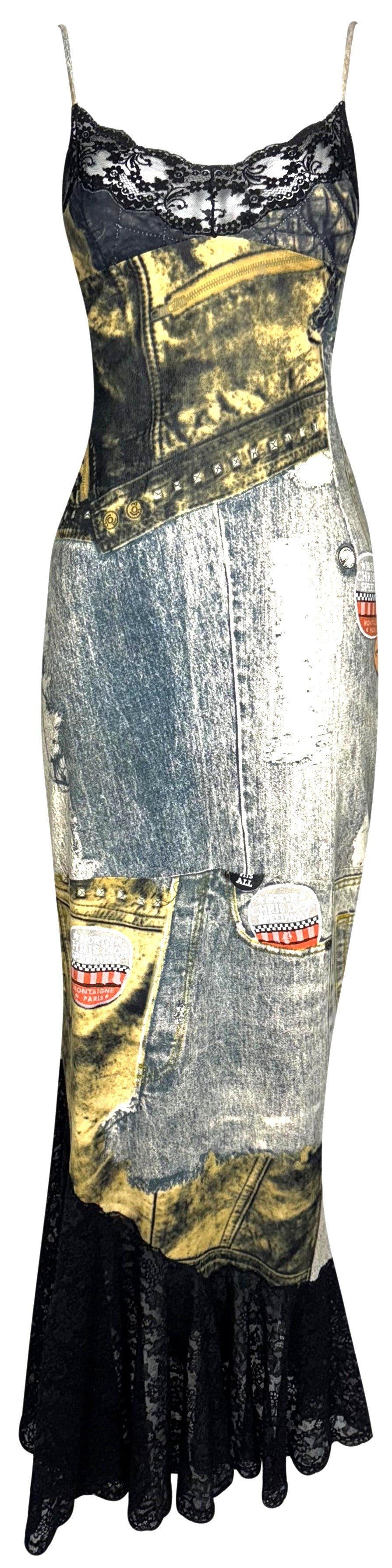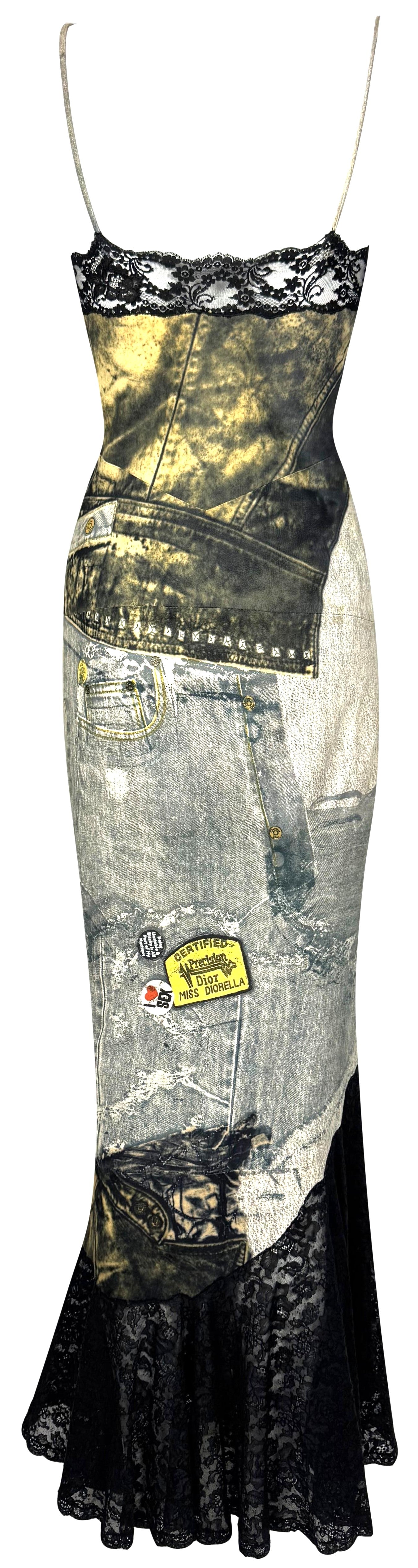 F/W 2001 Christian Dior by John Galliano RARE Trompe L'oeil Leather Mermaid Maxi Dress w Black Lace Trim