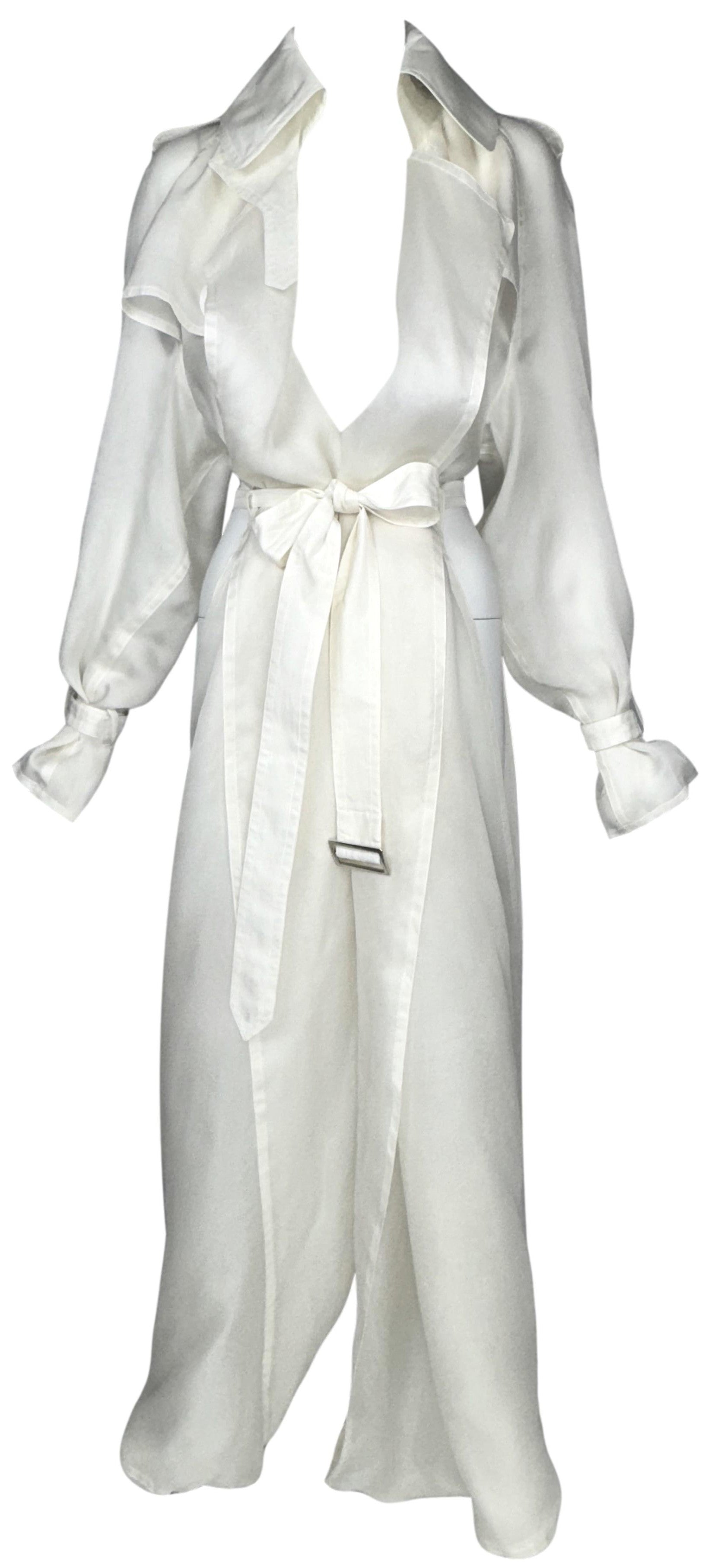 F/W 2001 Jean Paul Gaultier Haute Couture Runway Sheer White Silk Organza Cut-Out Sides Long Trench Coat Jacket Dress