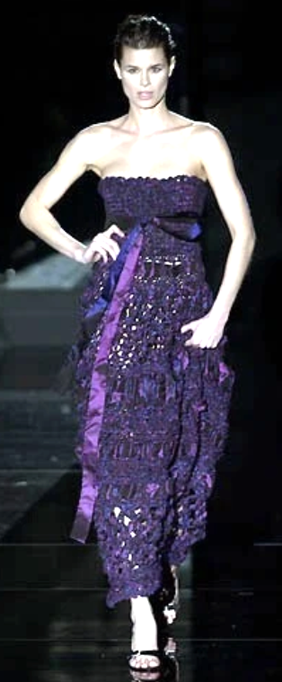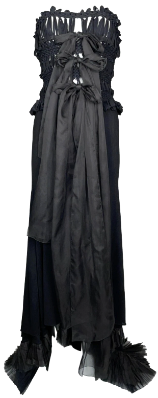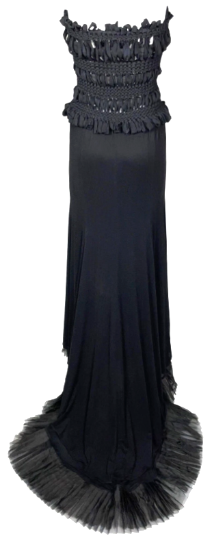 F/W 2002 Gianfranco Ferre Sheer Black Knit Macrame Strapless Gown Dress