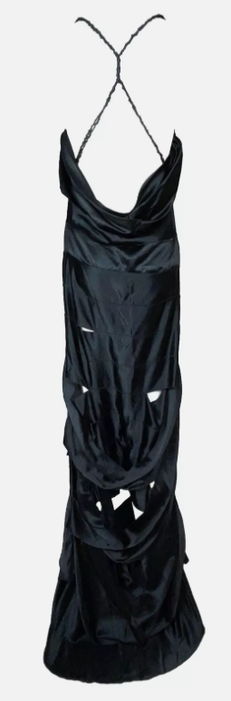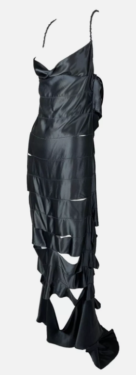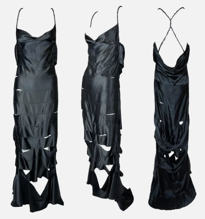 F/W 2002 Gucci by Tom Ford Runway Black Cut-Out Ribbon Gown Maxi Dress 40