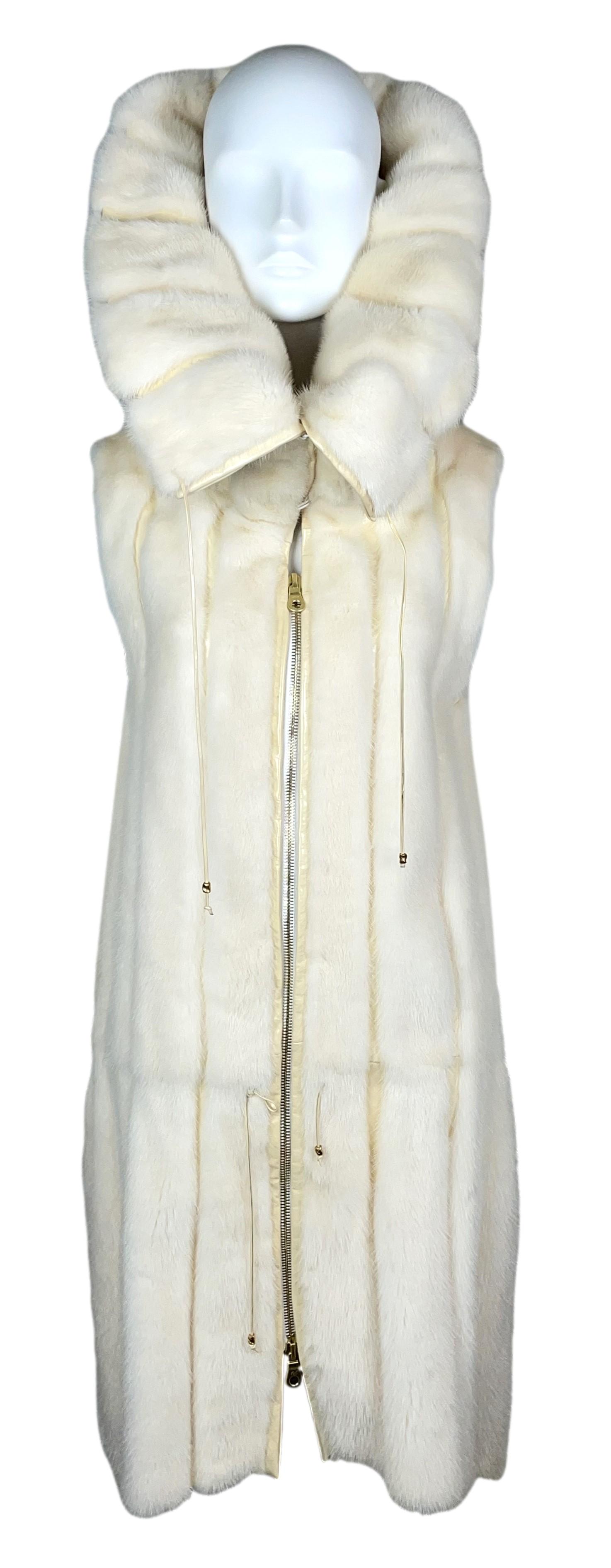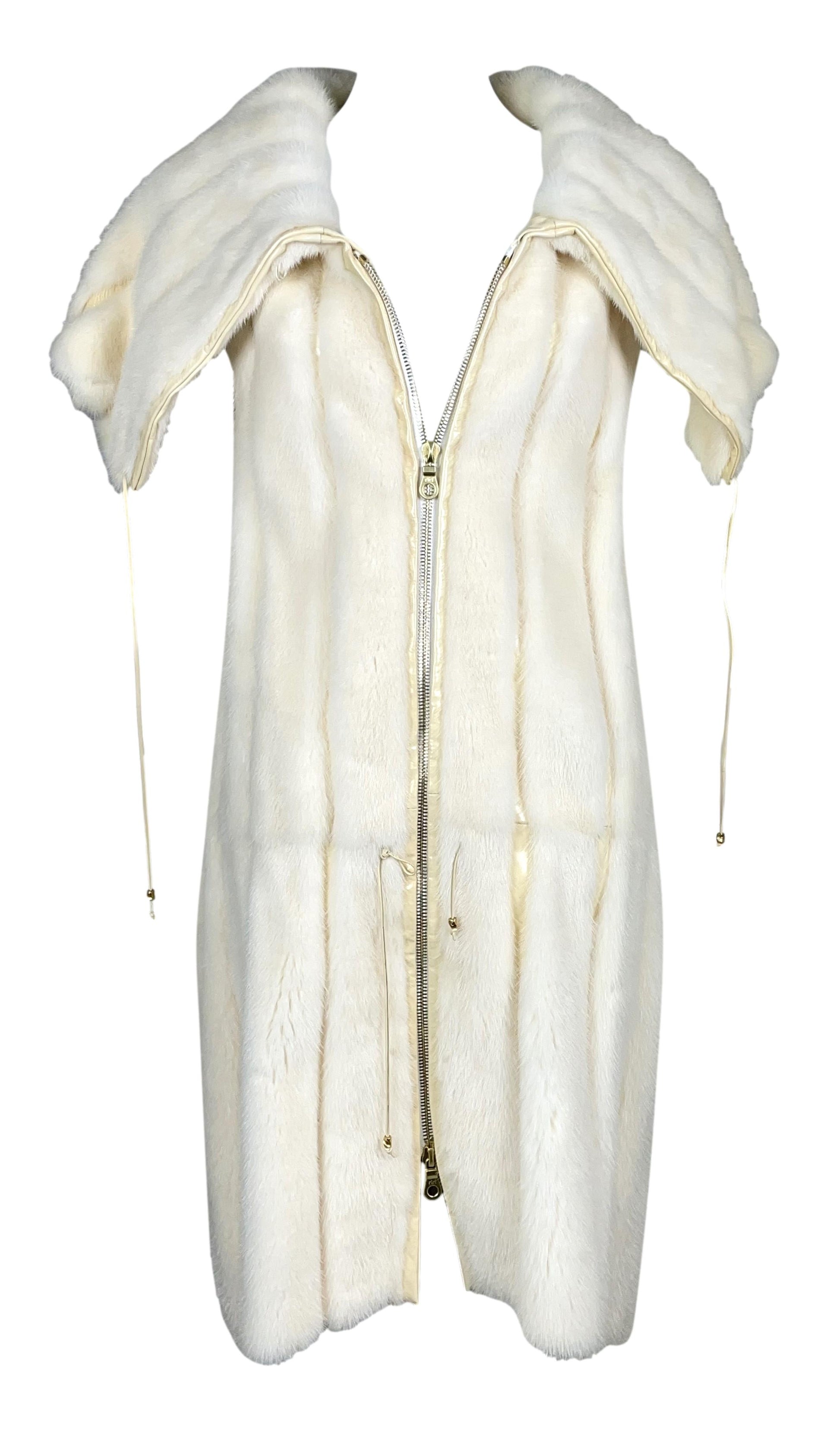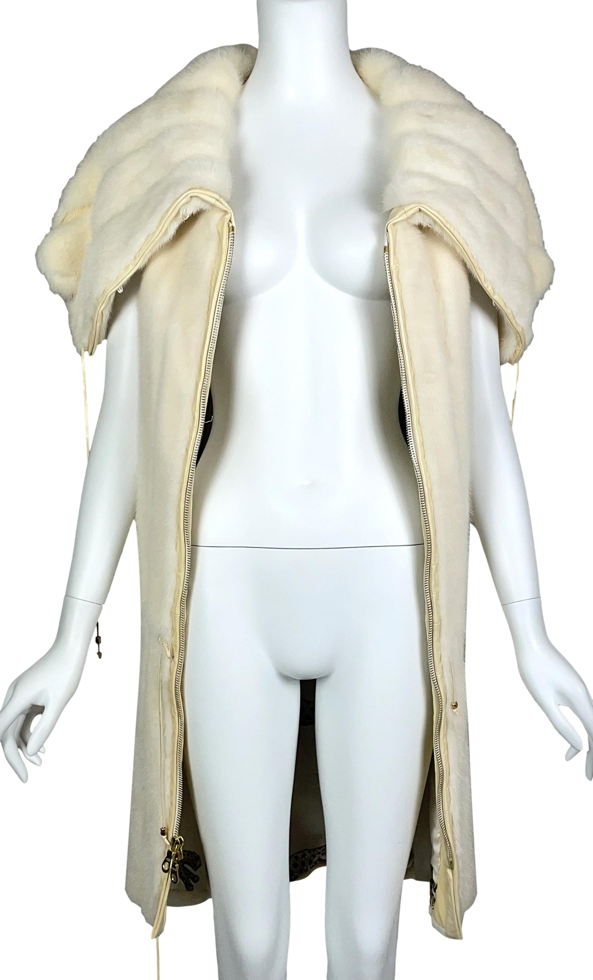F/W 2002 Roberto Cavalli Runway Ivory Mink Fur High Collar Vest Dress Coat