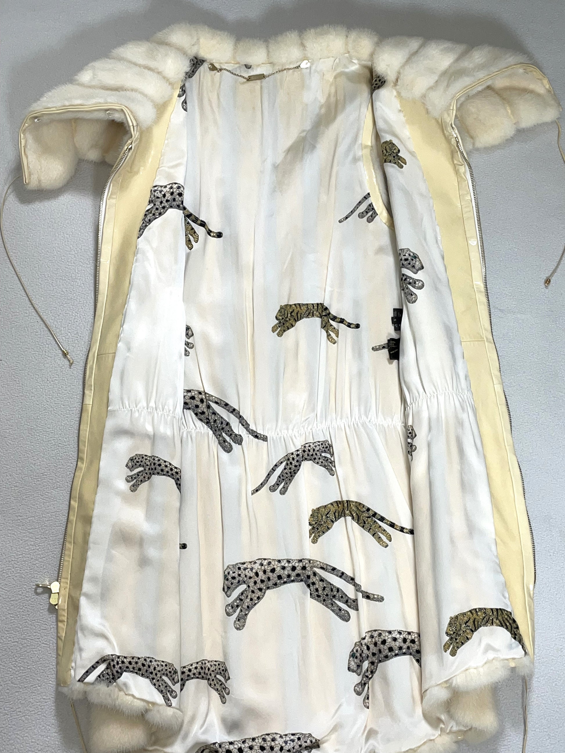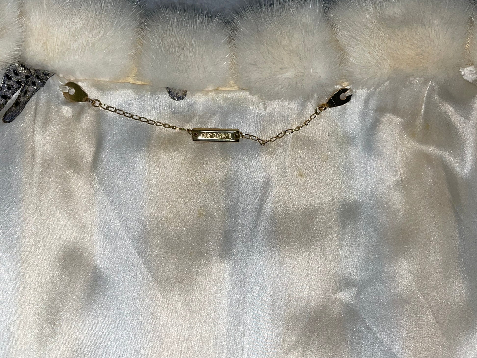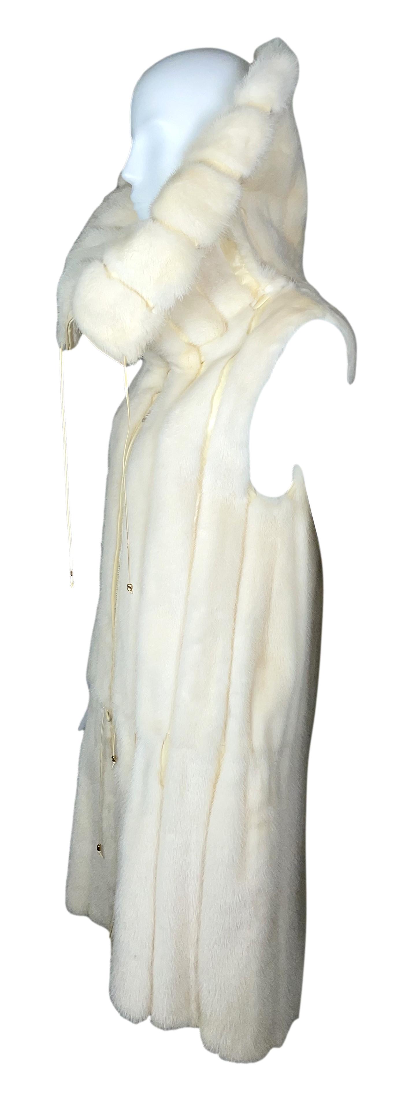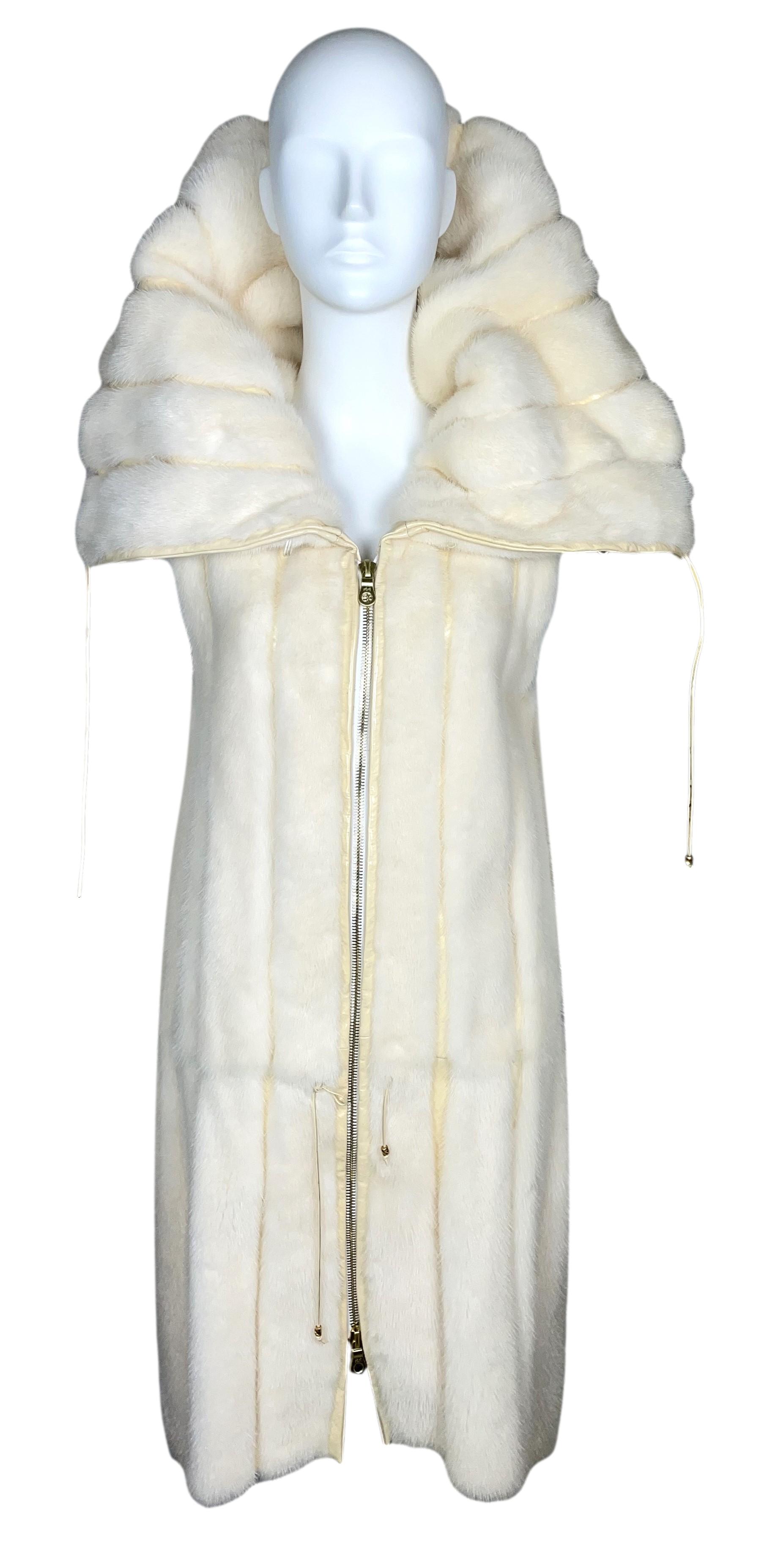 F/W 2002 Roberto Cavalli Runway Ivory Mink Fur High Collar Vest Dress Coat