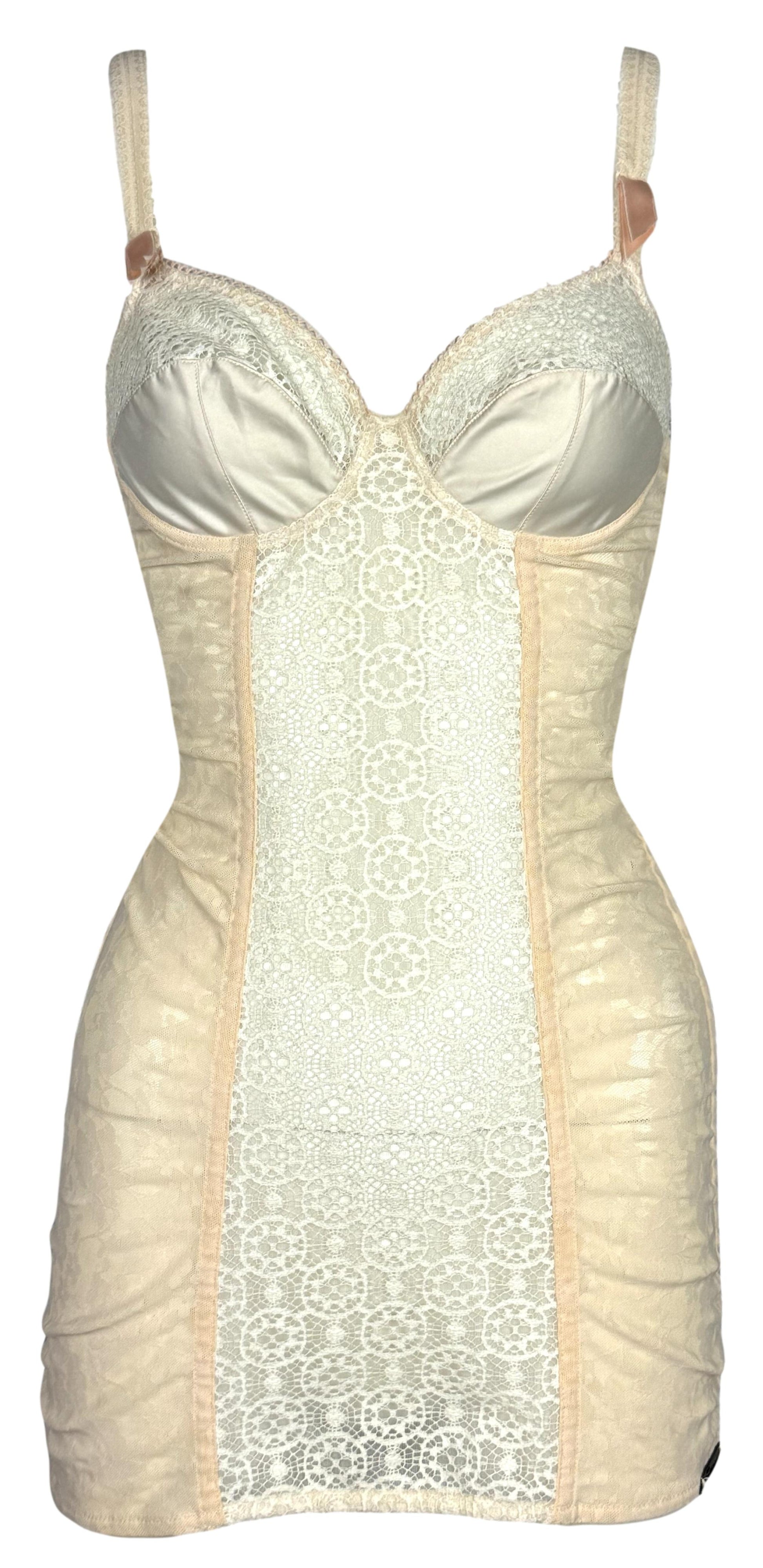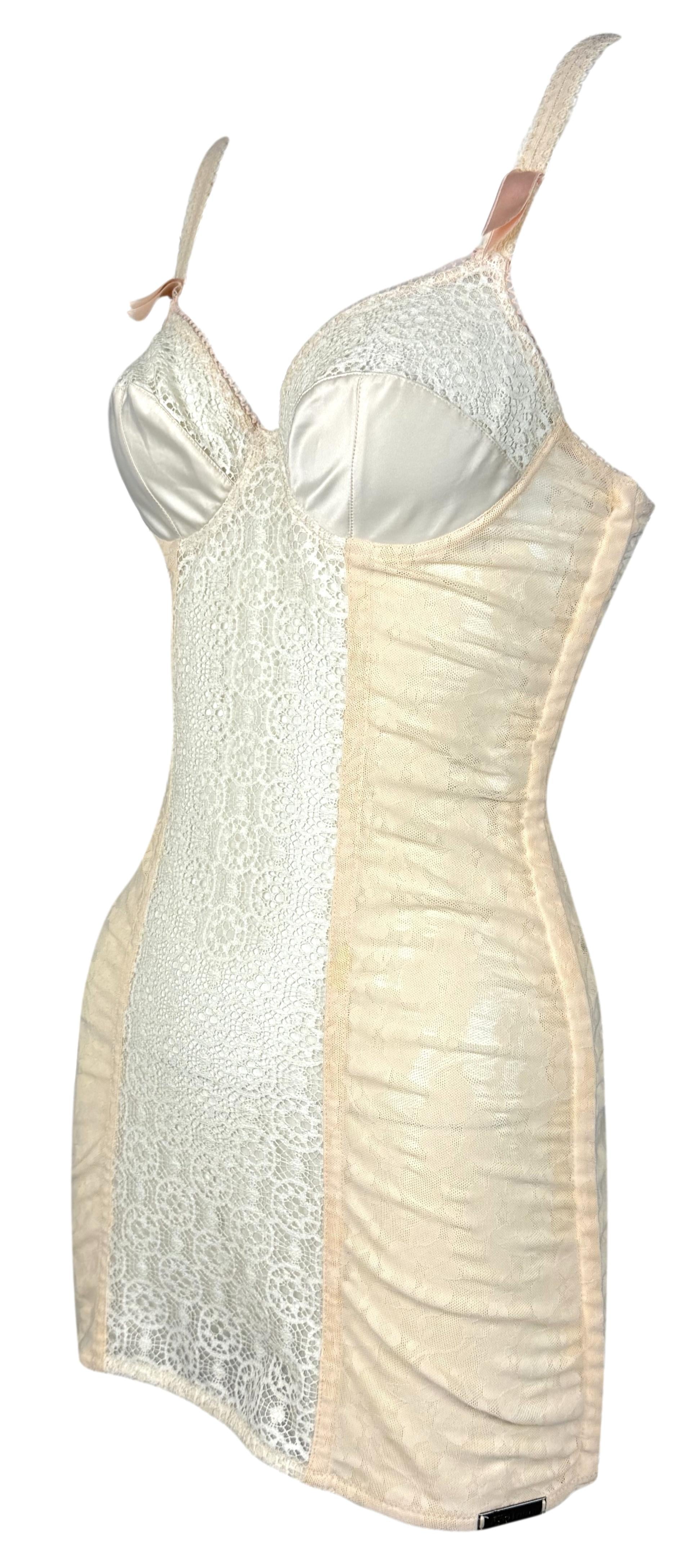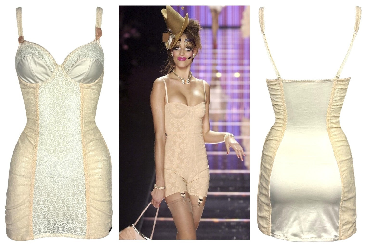 F/W 2003 John Galliano 1940's Pin-Up Style Nude Lace Mesh Bodycon Mini Dress
