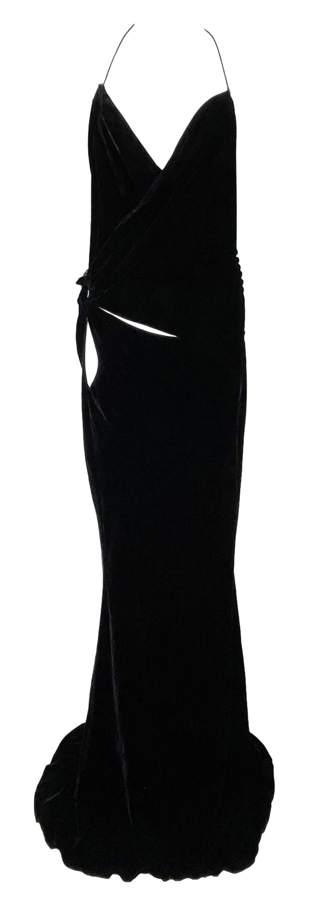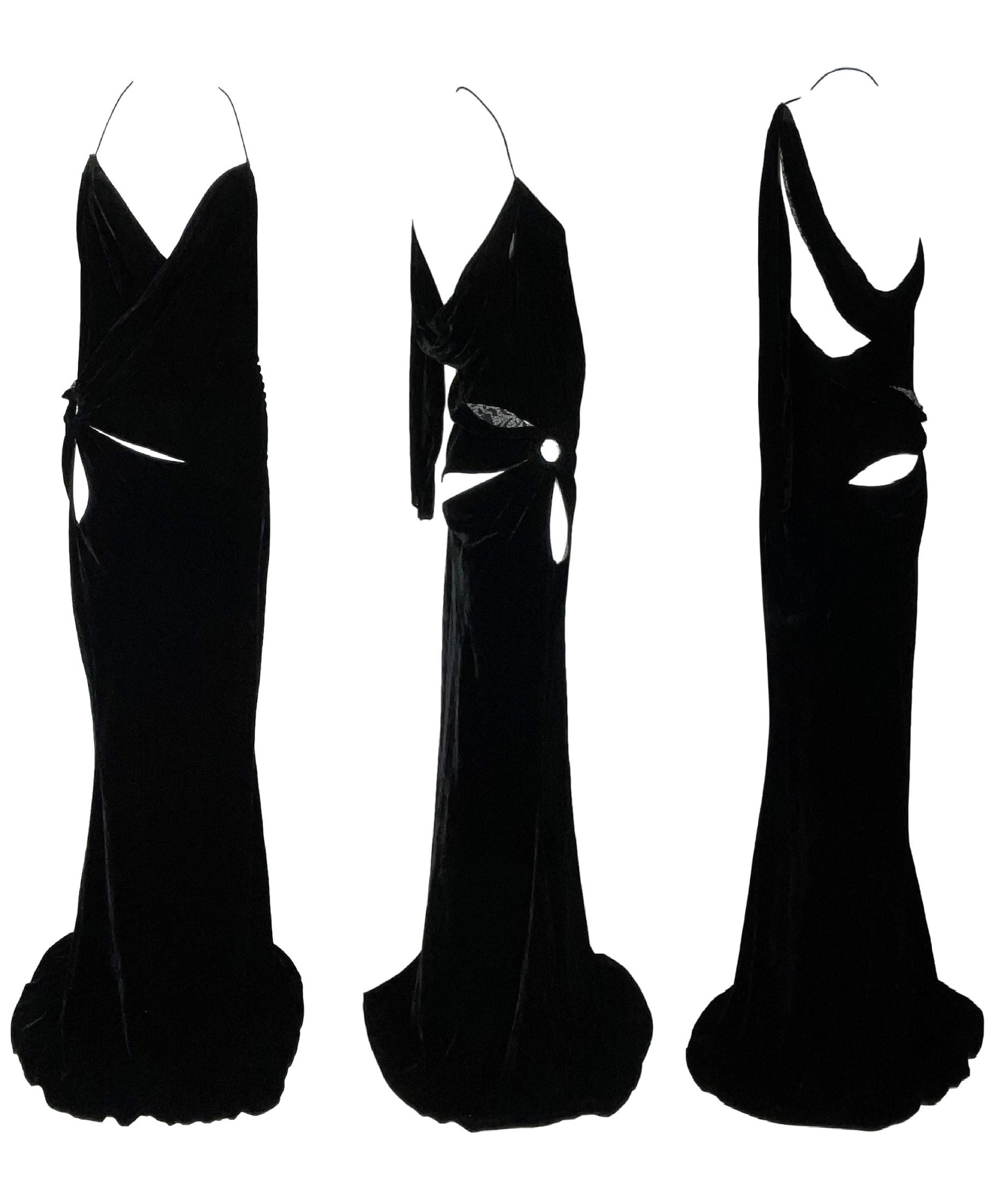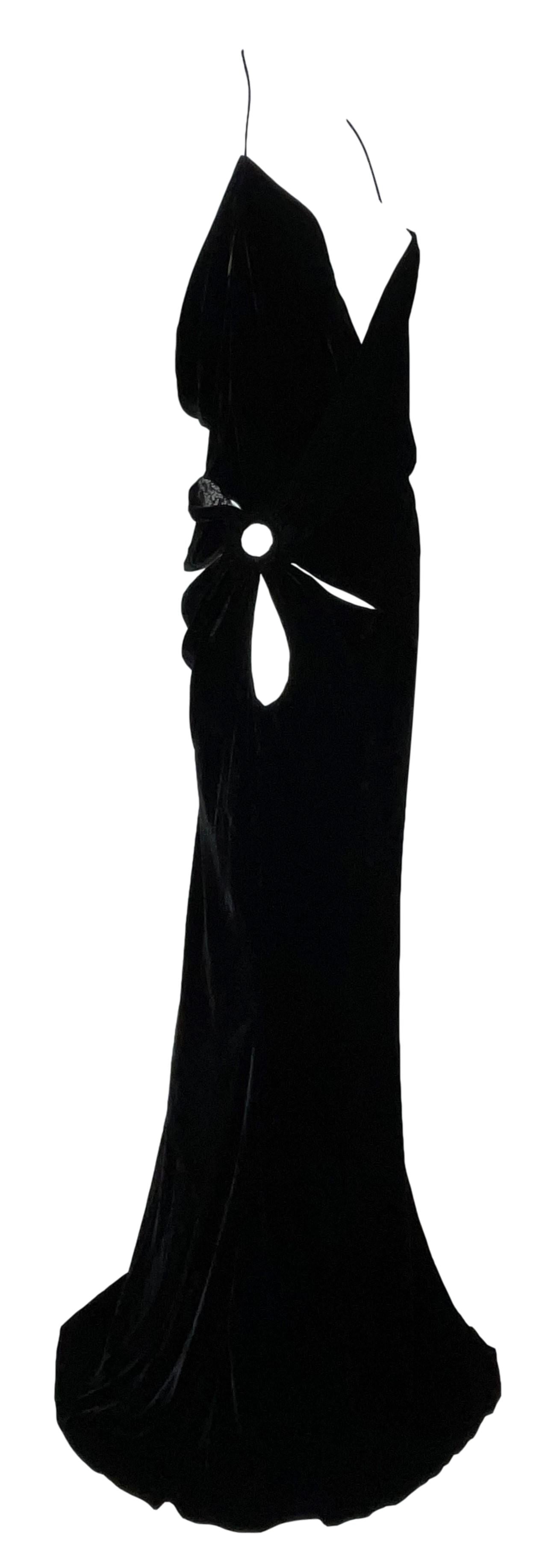 F/W 2003 John Galliano Black Velvet Plunging Cut-Out Gown Dress