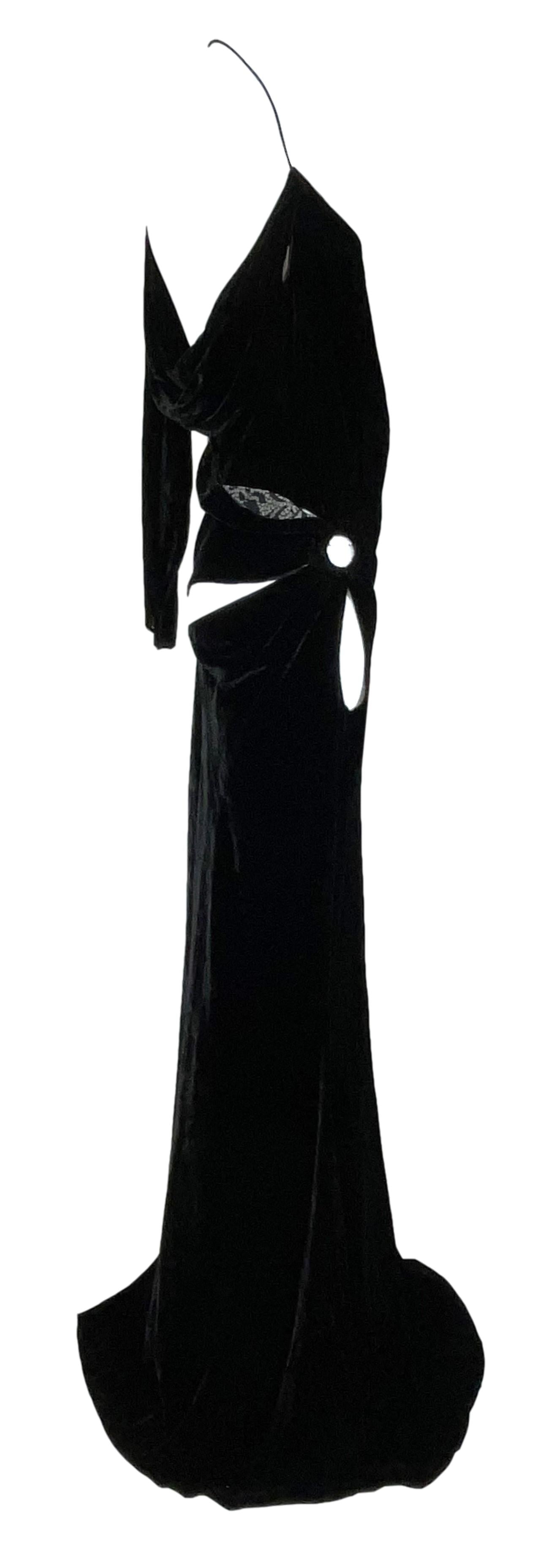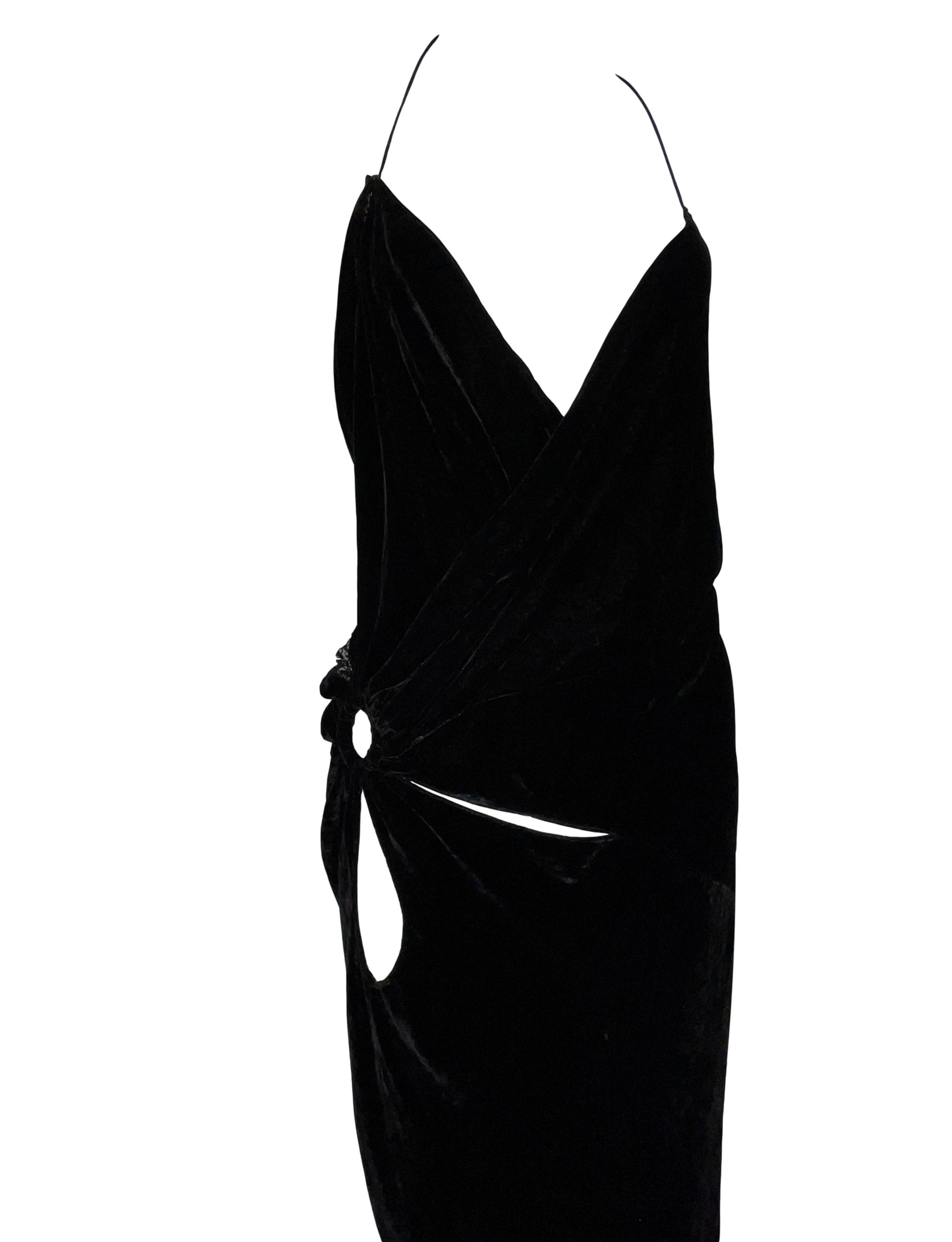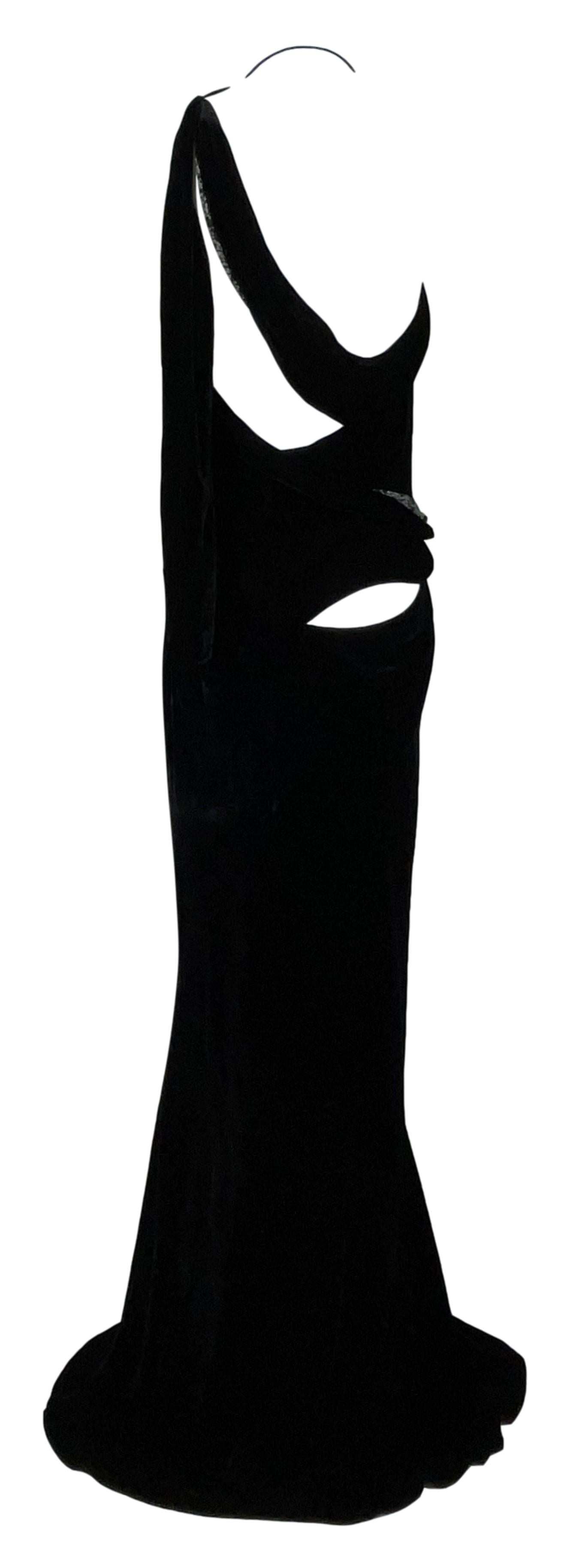 F/W 2003 John Galliano Black Velvet Plunging Cut-Out Gown Dress